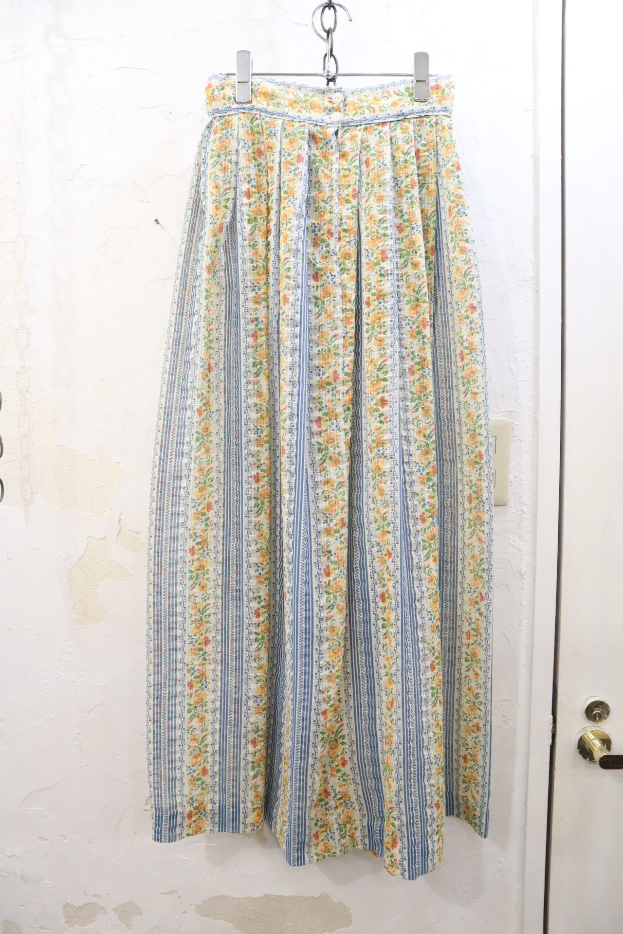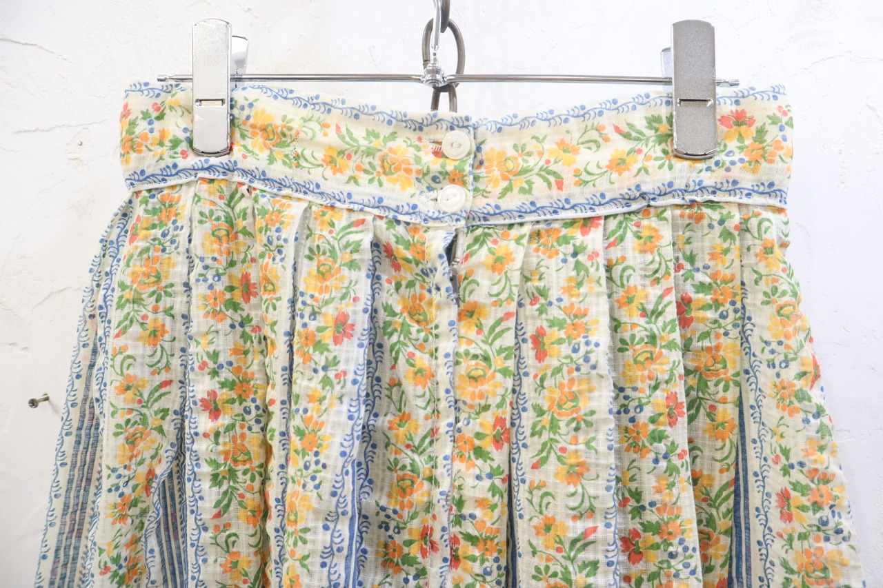 blue×orange×offwhite flower pattern skirt [l-3290]