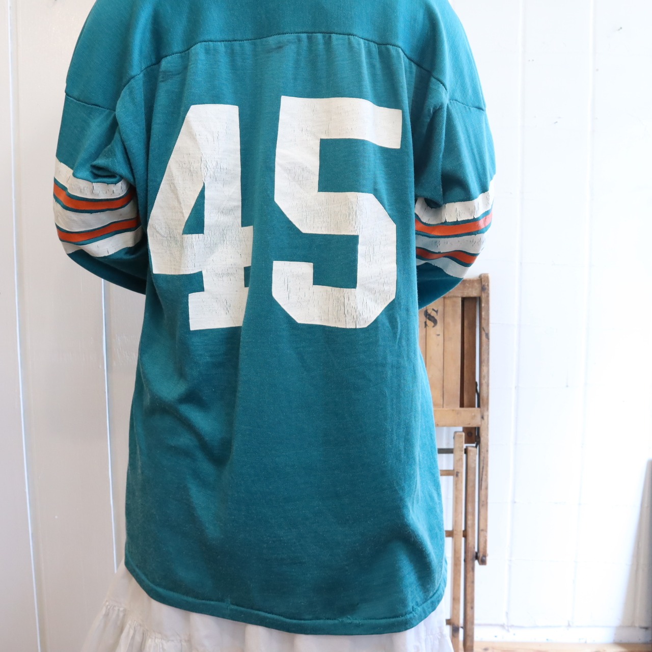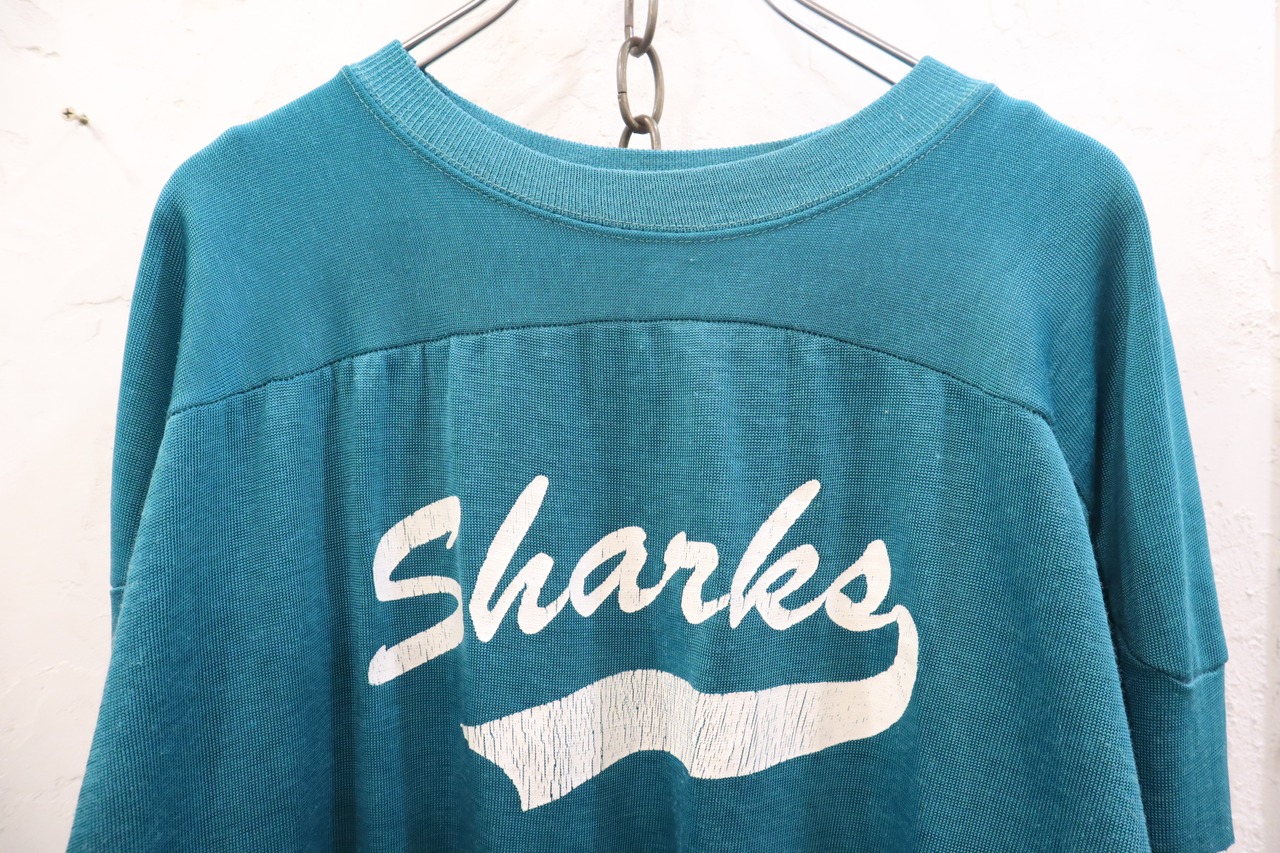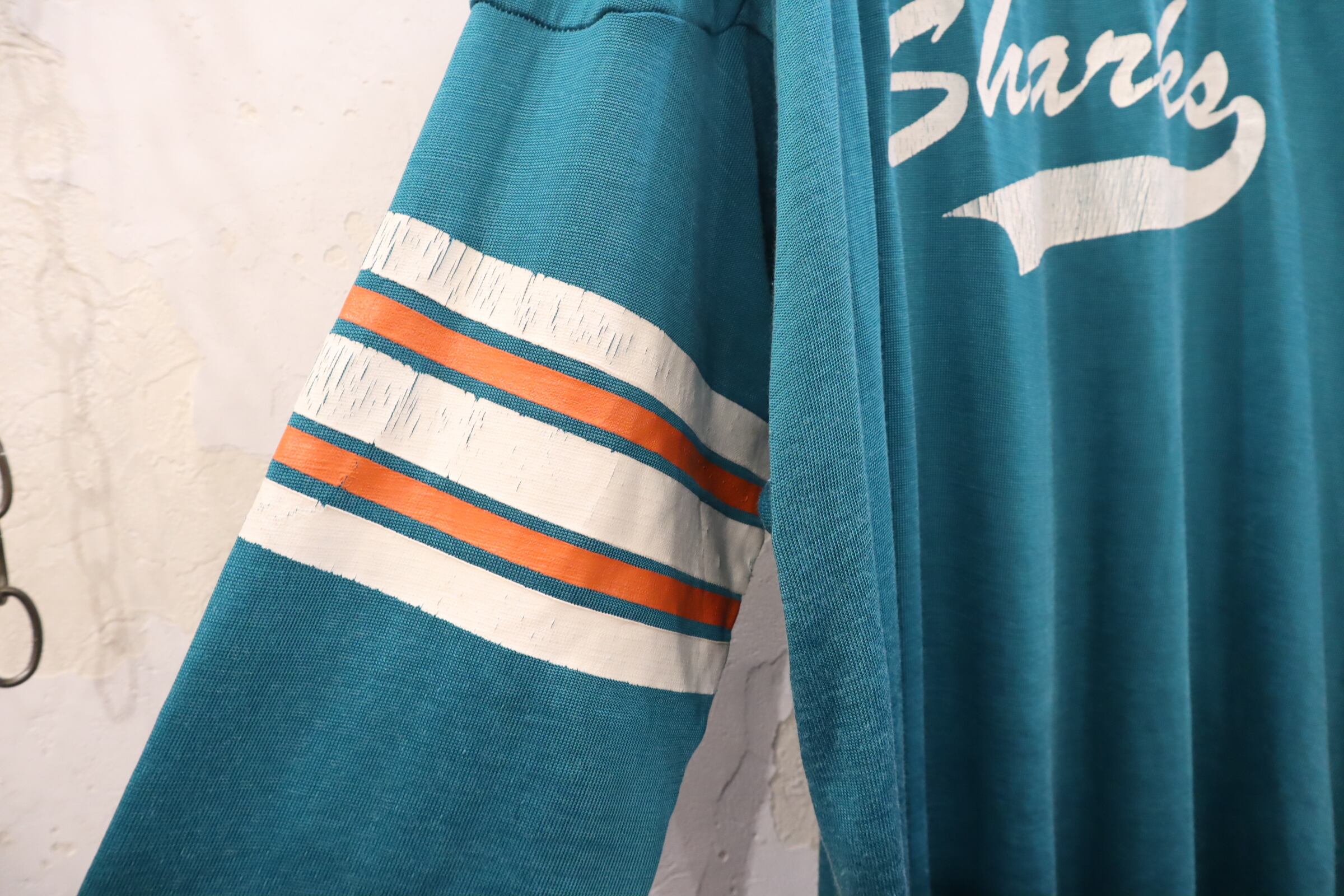 60s made in USA emeraldgreen×white×orange football T-shirt [k-3304]