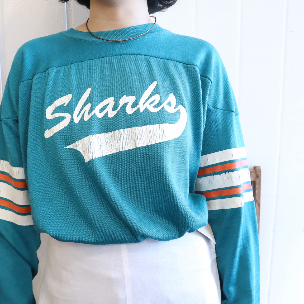 またプリント全体のひび割れや傷がございますが、着用に問題ございません。