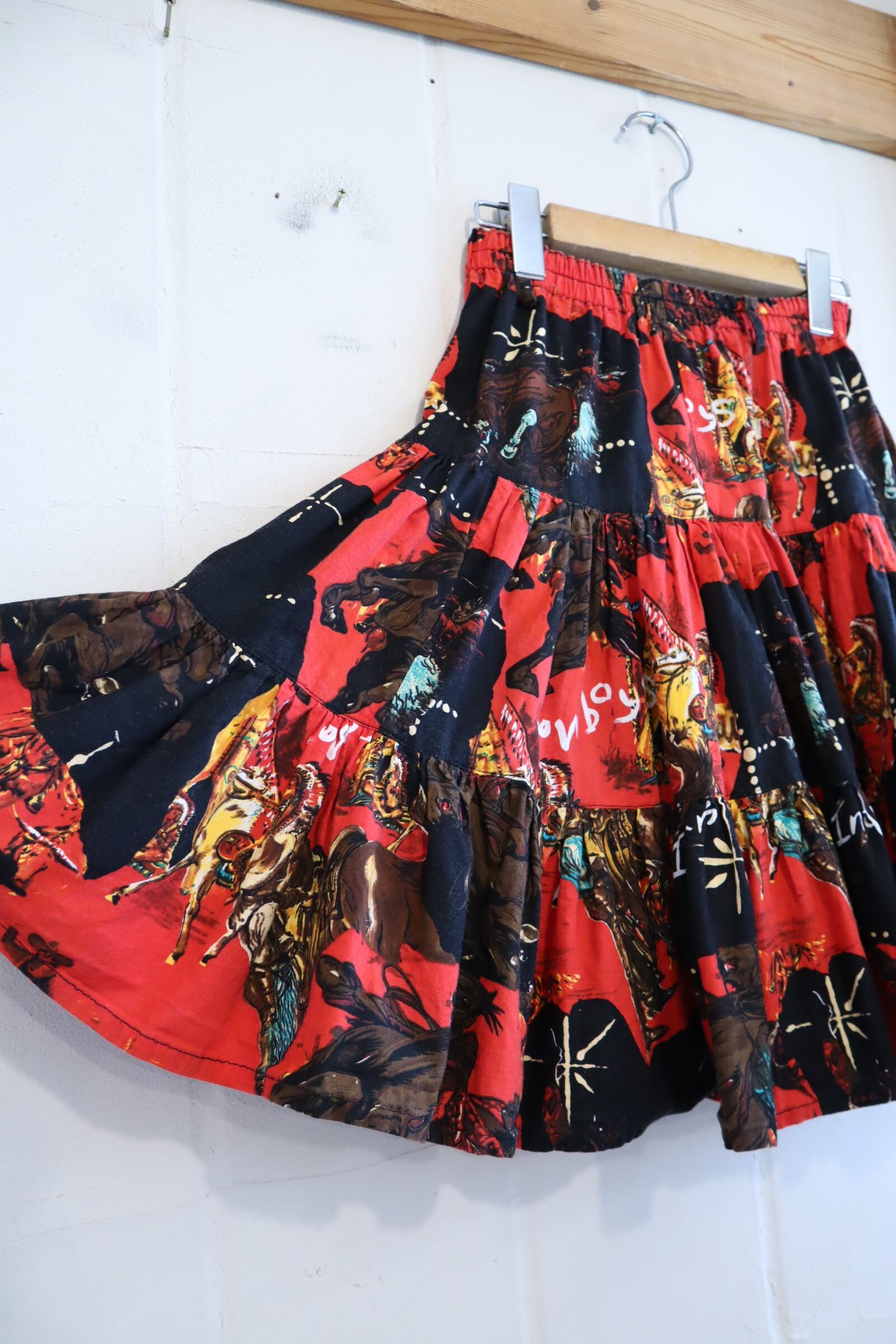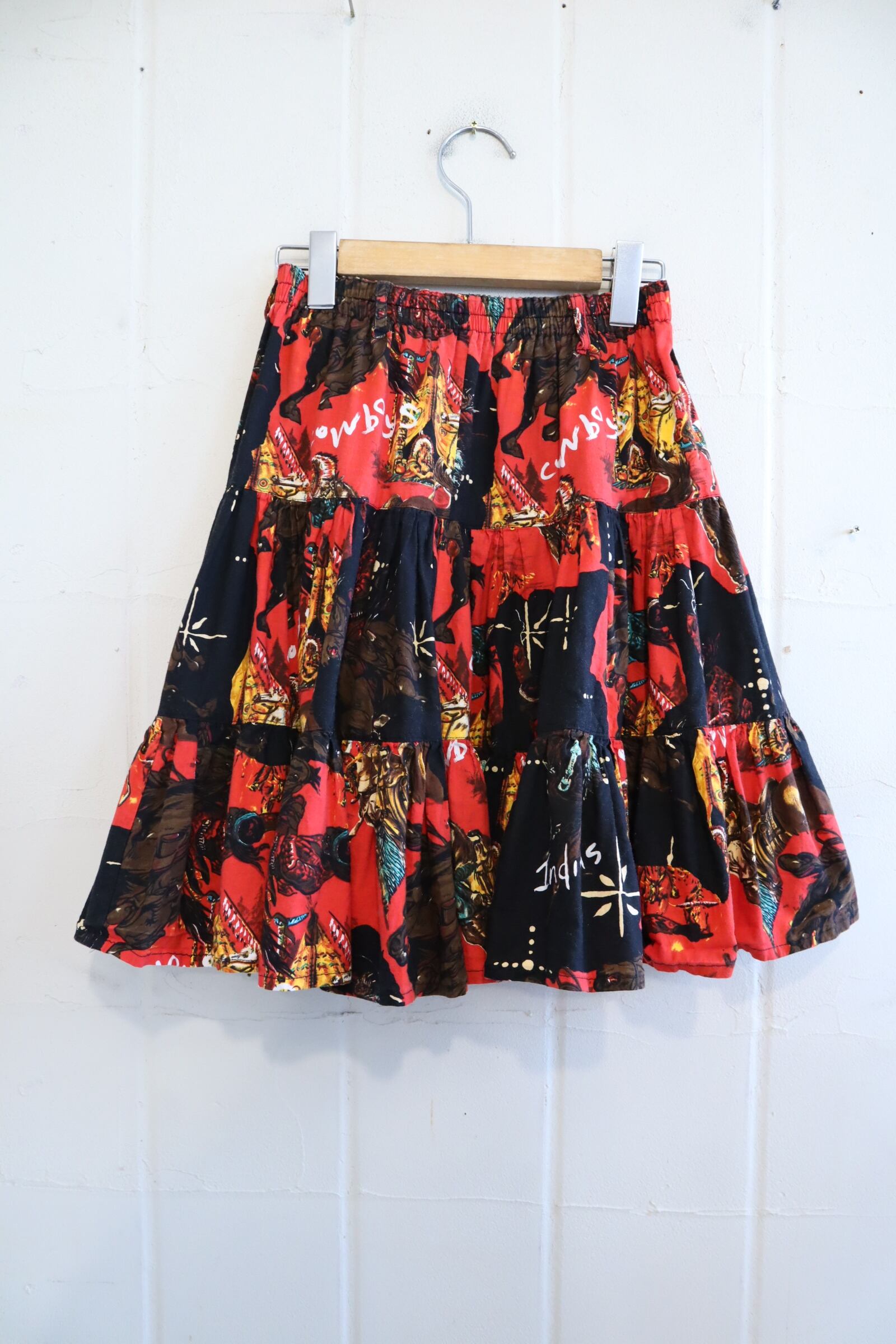 red×black native pattern tiered mini skirt [l-3316]