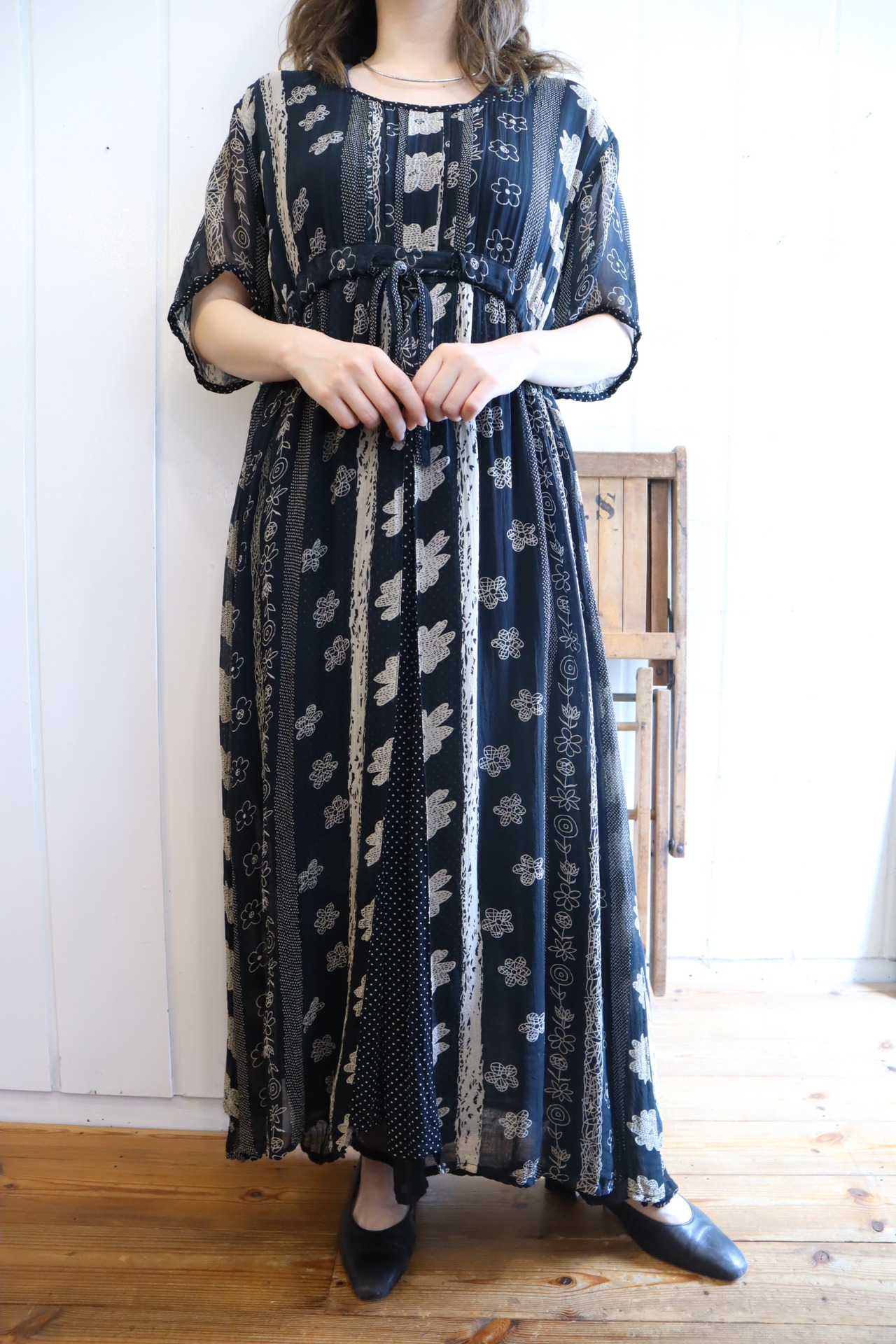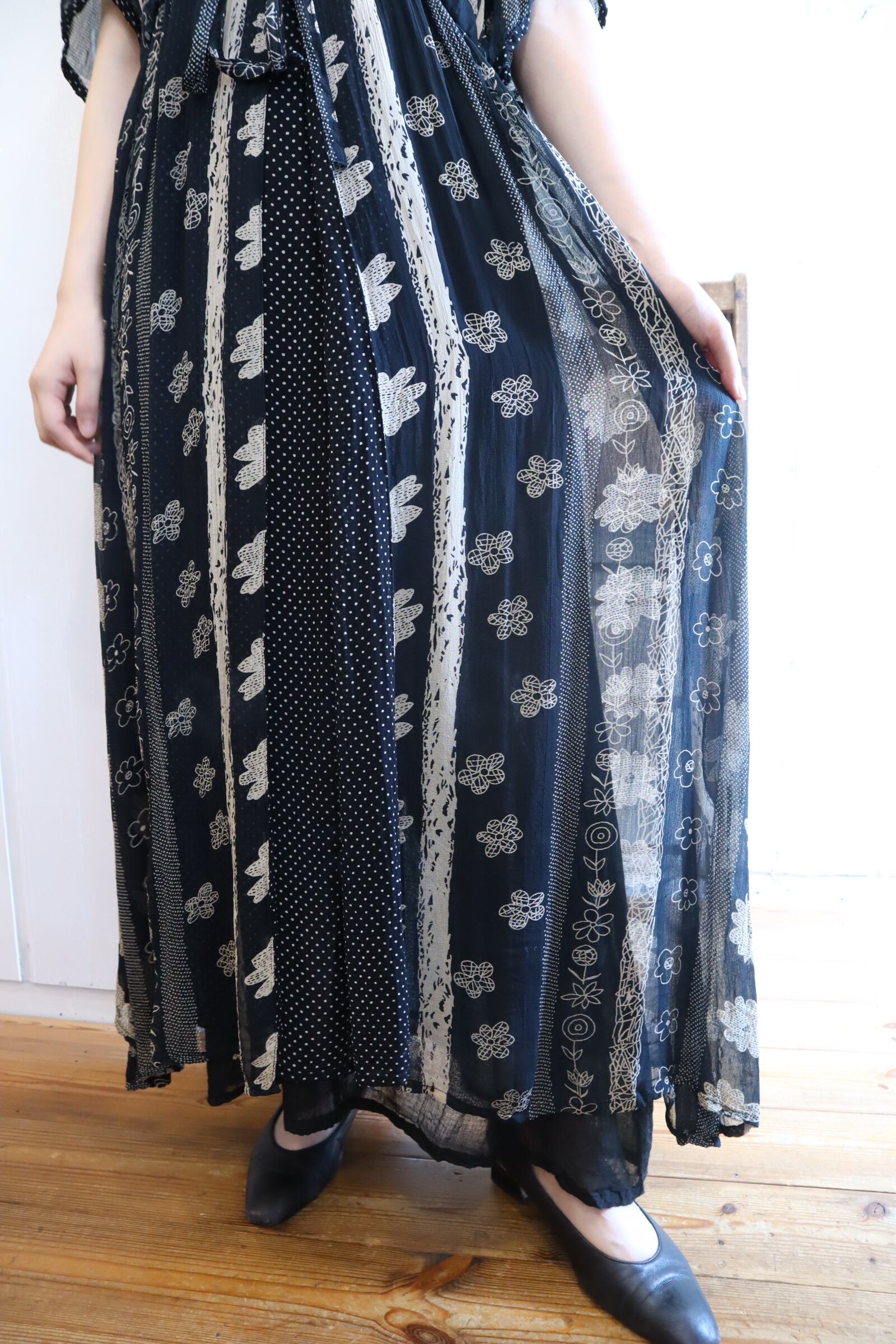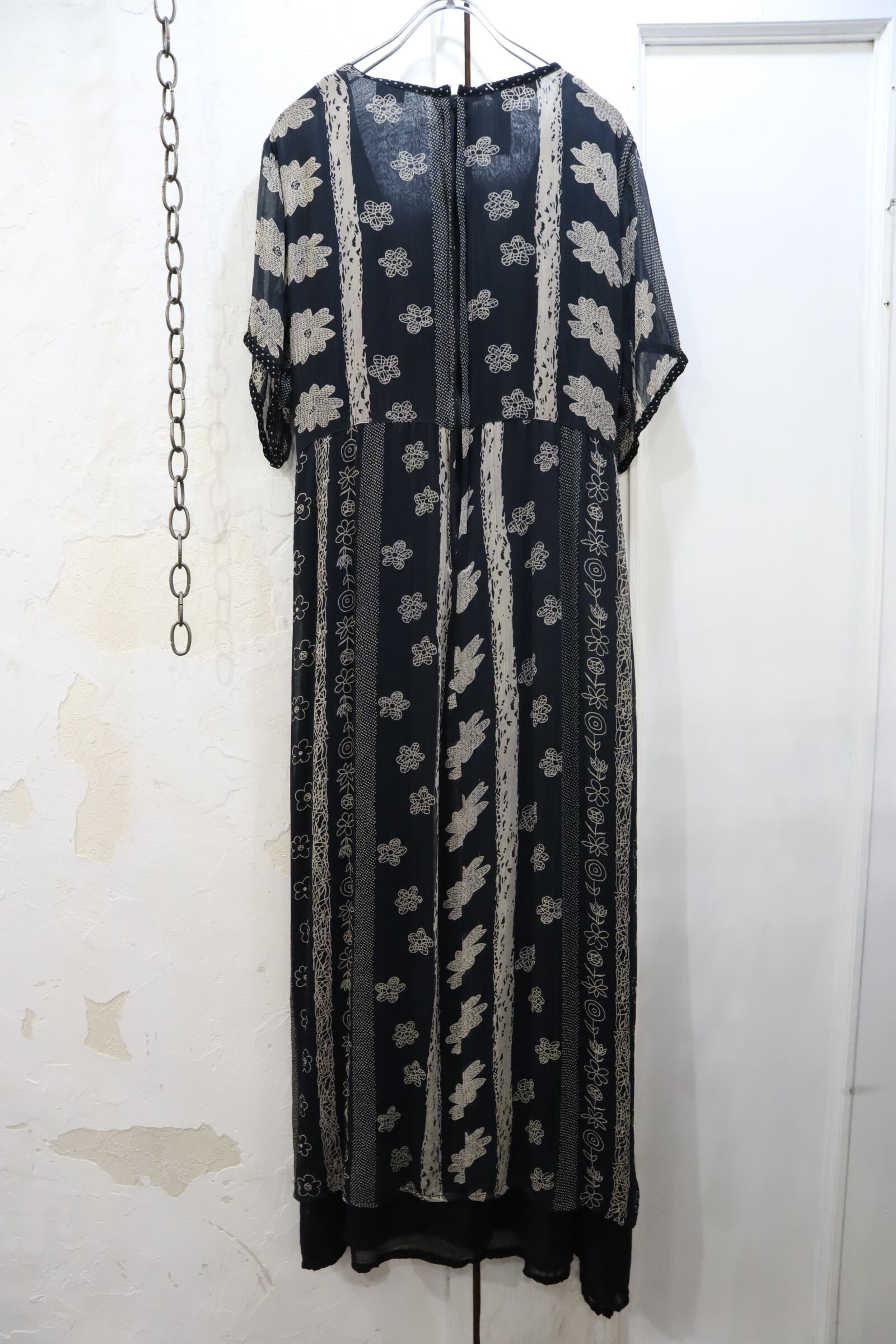 black×beige flower&dot pattern shortsleeve dress [k-3334]