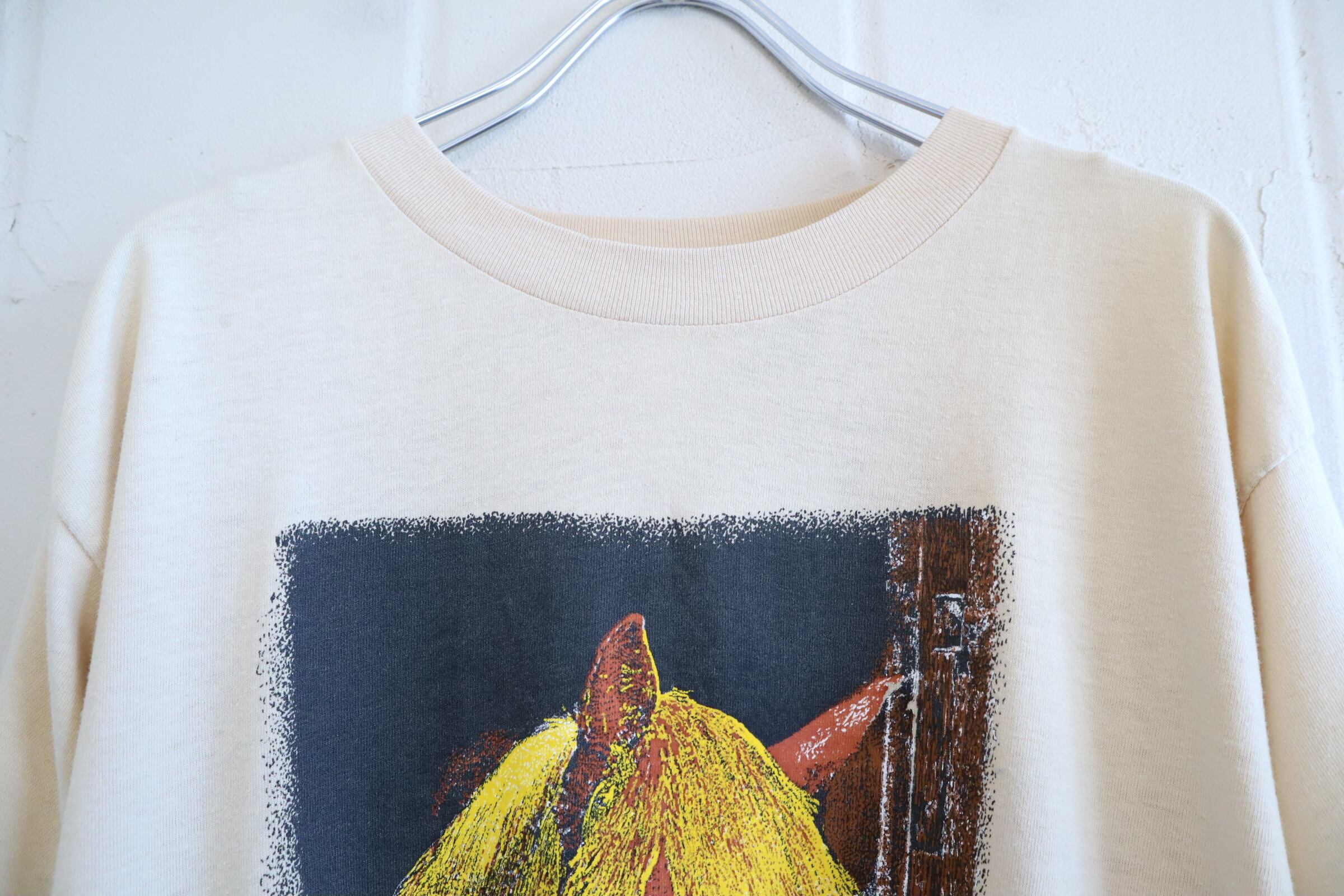 絵画のようなタッチが可愛い馬プリントのTシャツ。