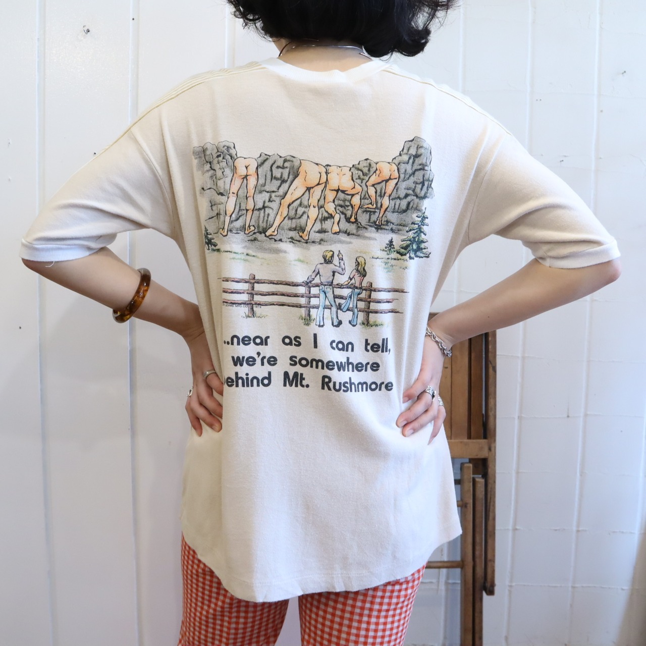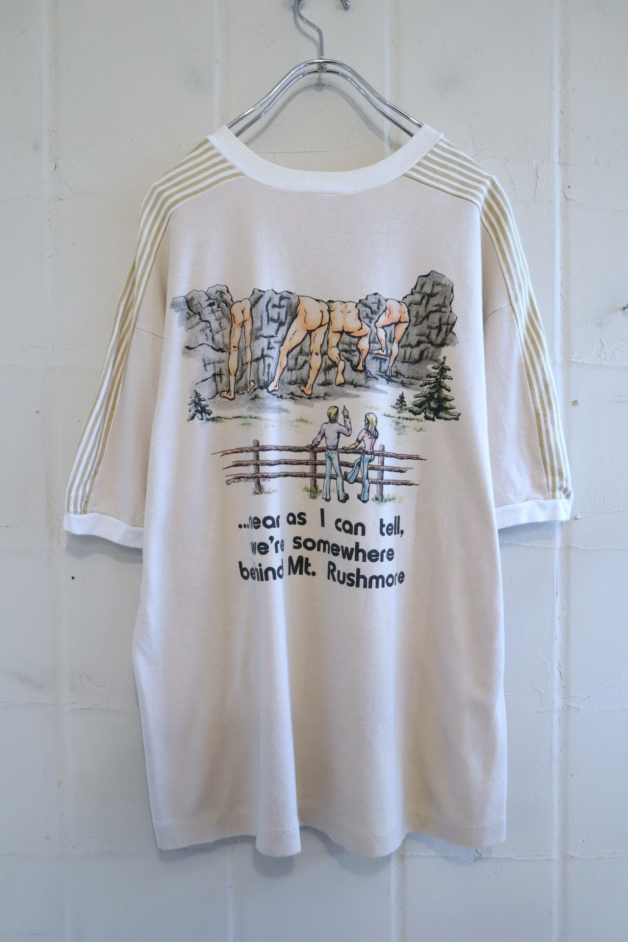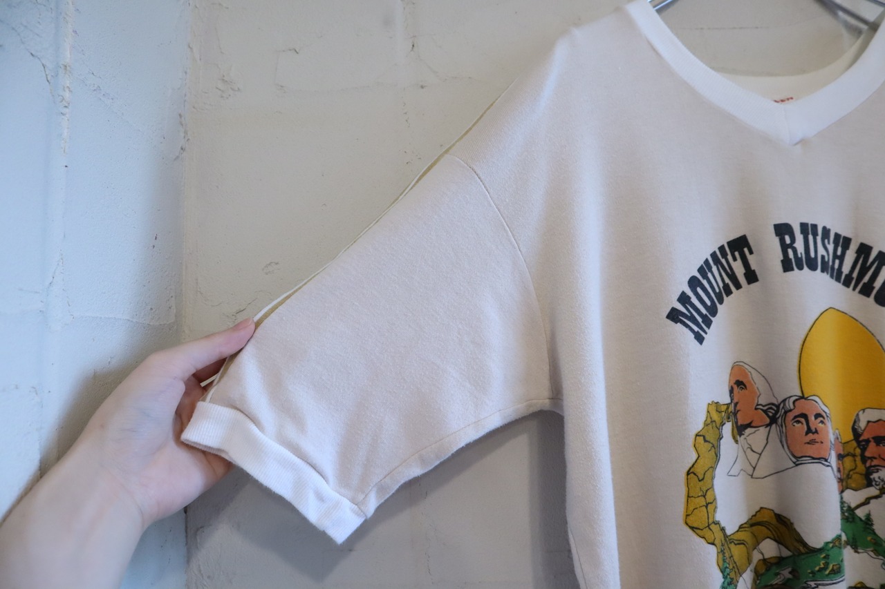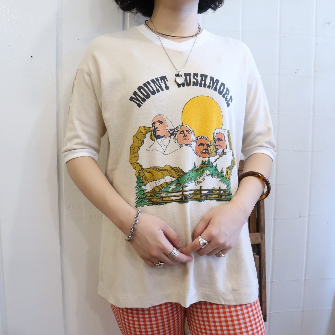 アメリカサウスダコタ州のラシュモア山のイラストプリントが可愛い70sTシャツです。