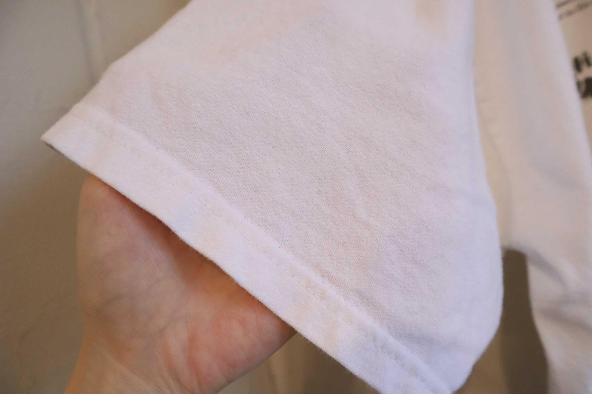 若干プリントの剥がれ、いくつか薄汚れやうっすらとシミ、袖にキズがございますが、いずれもあまり気にならない程度かと思います。