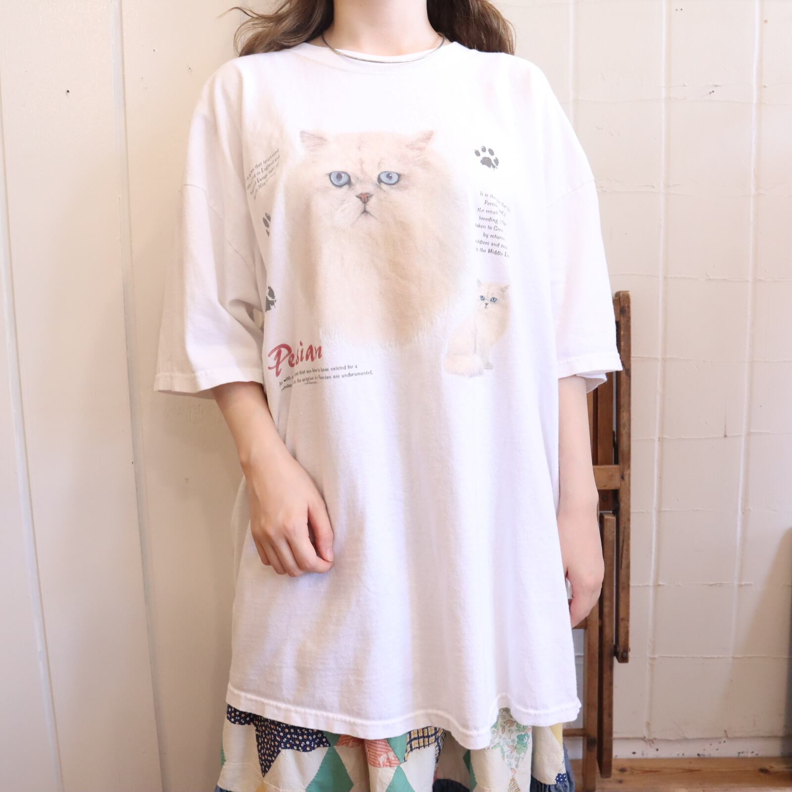 ペルシャネコのプリントがとても可愛いTシャツ。