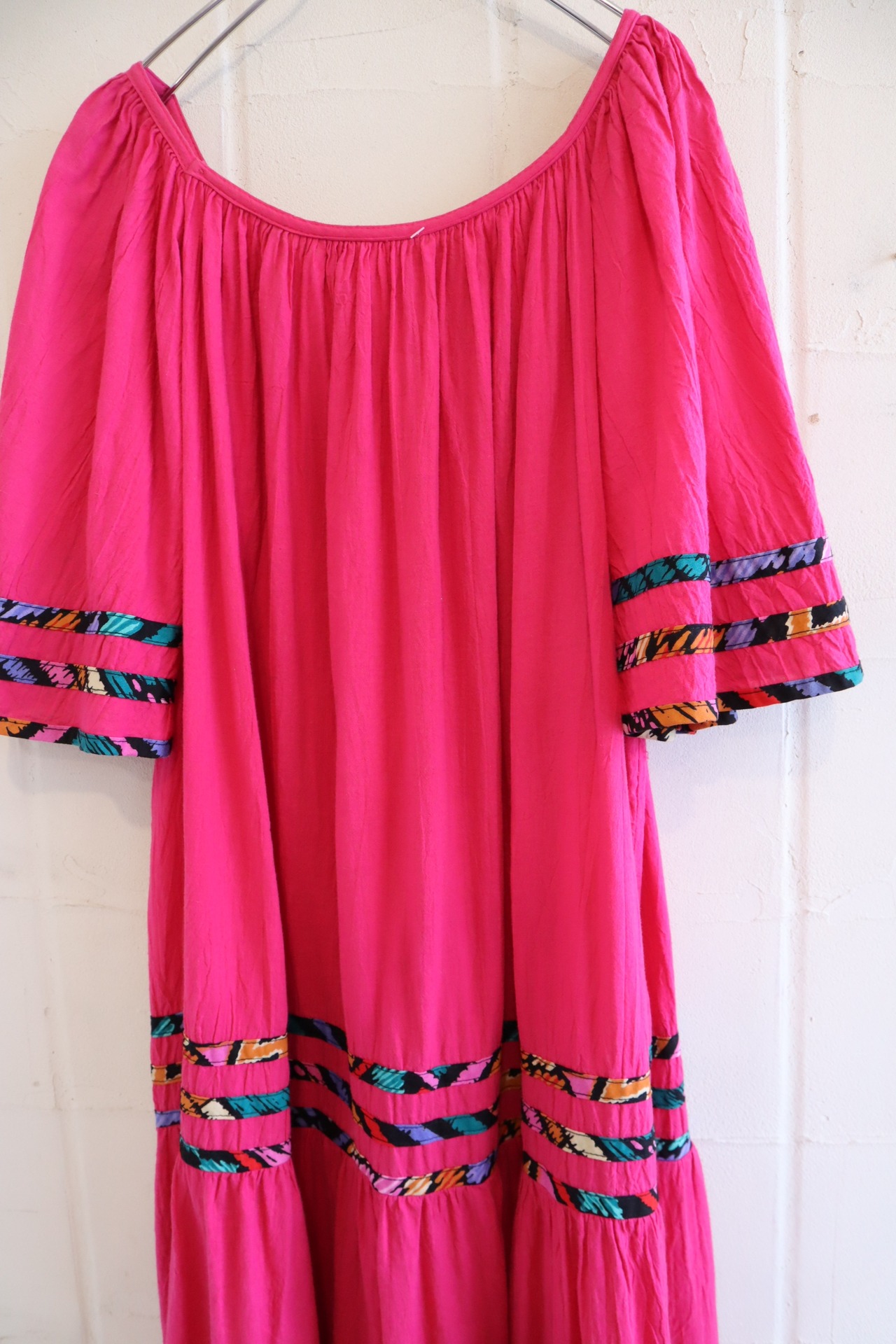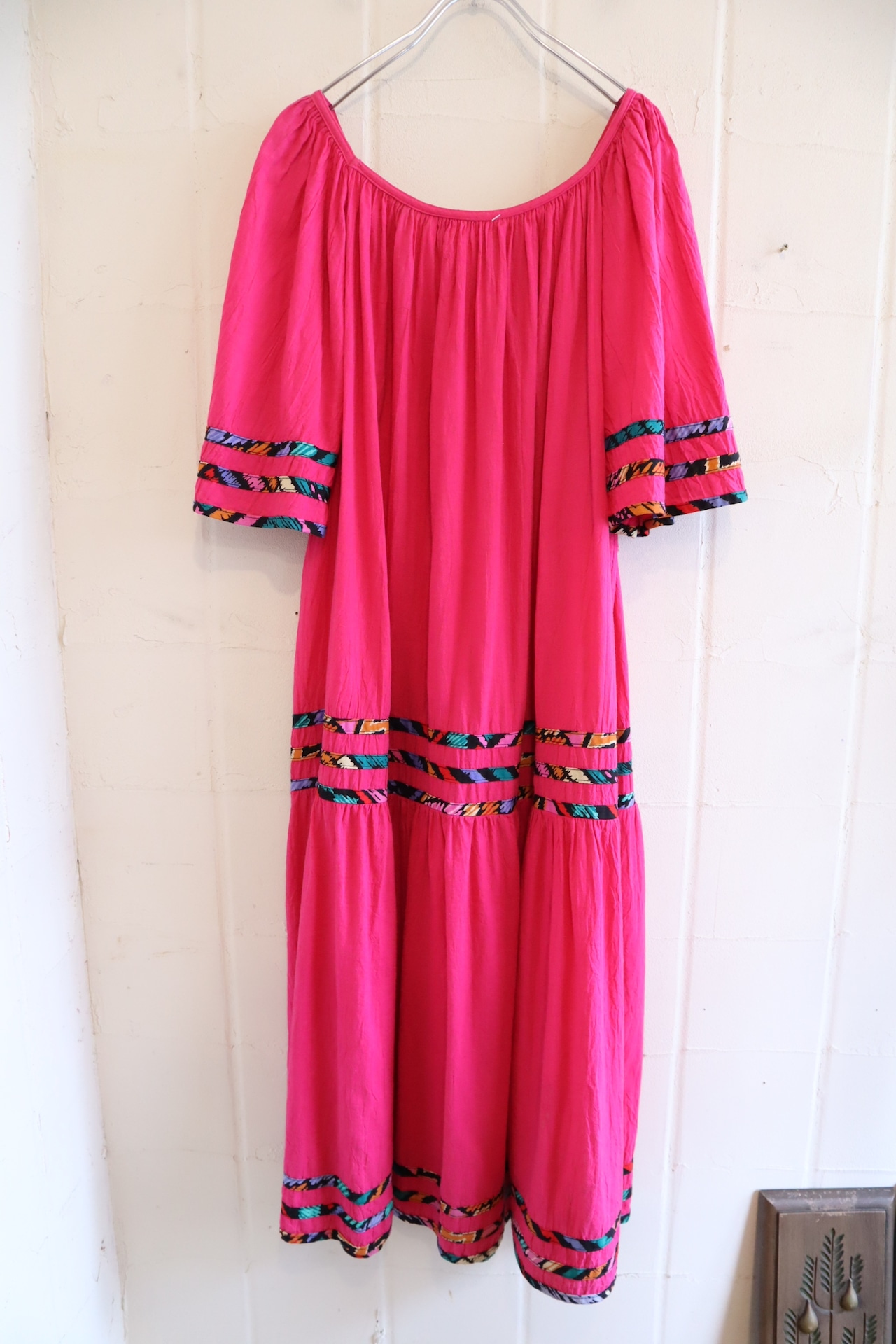 パキっと明るい鮮やかなピンクが目を惹くUSA製のドレス。