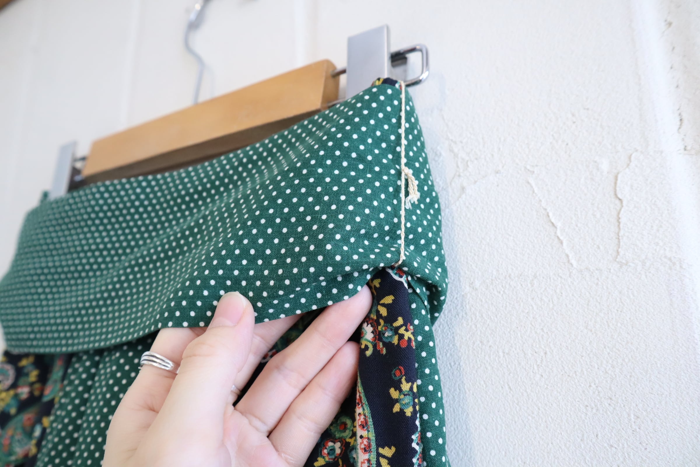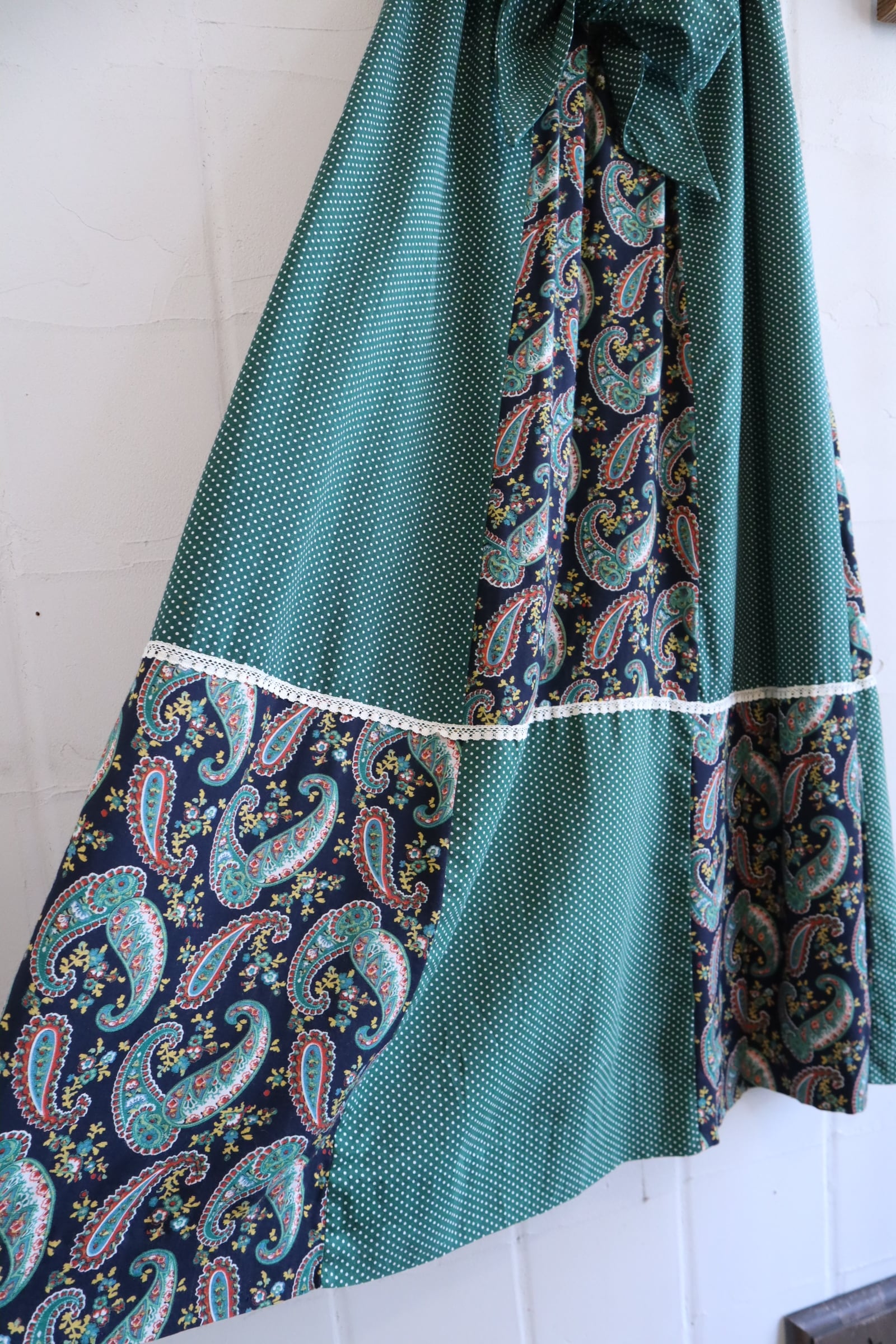 70s green×black paisley & dot patchwork skirt [l-3529]