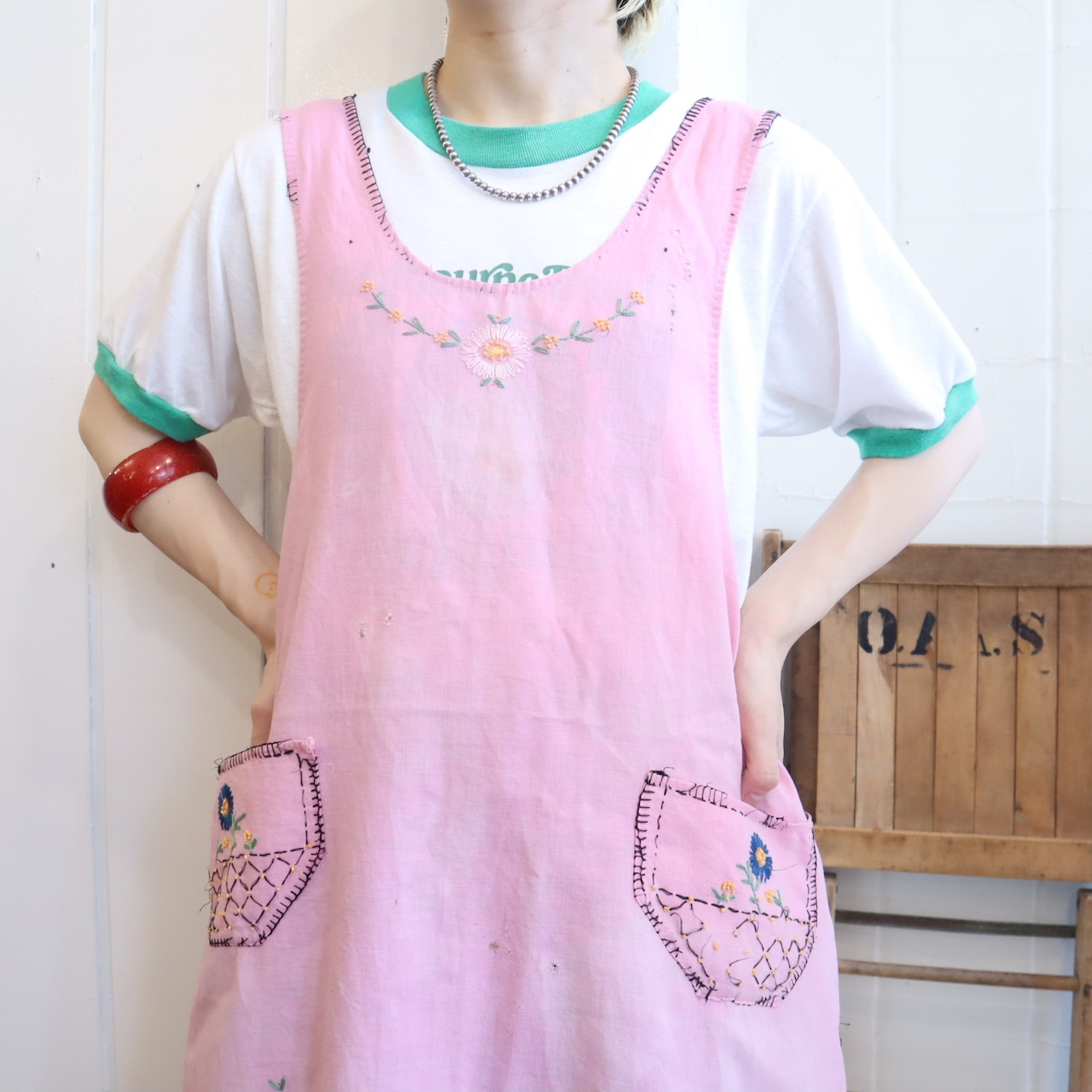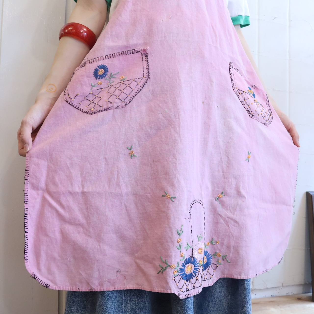 刺繍が可愛いヴィンテージエプロンです。