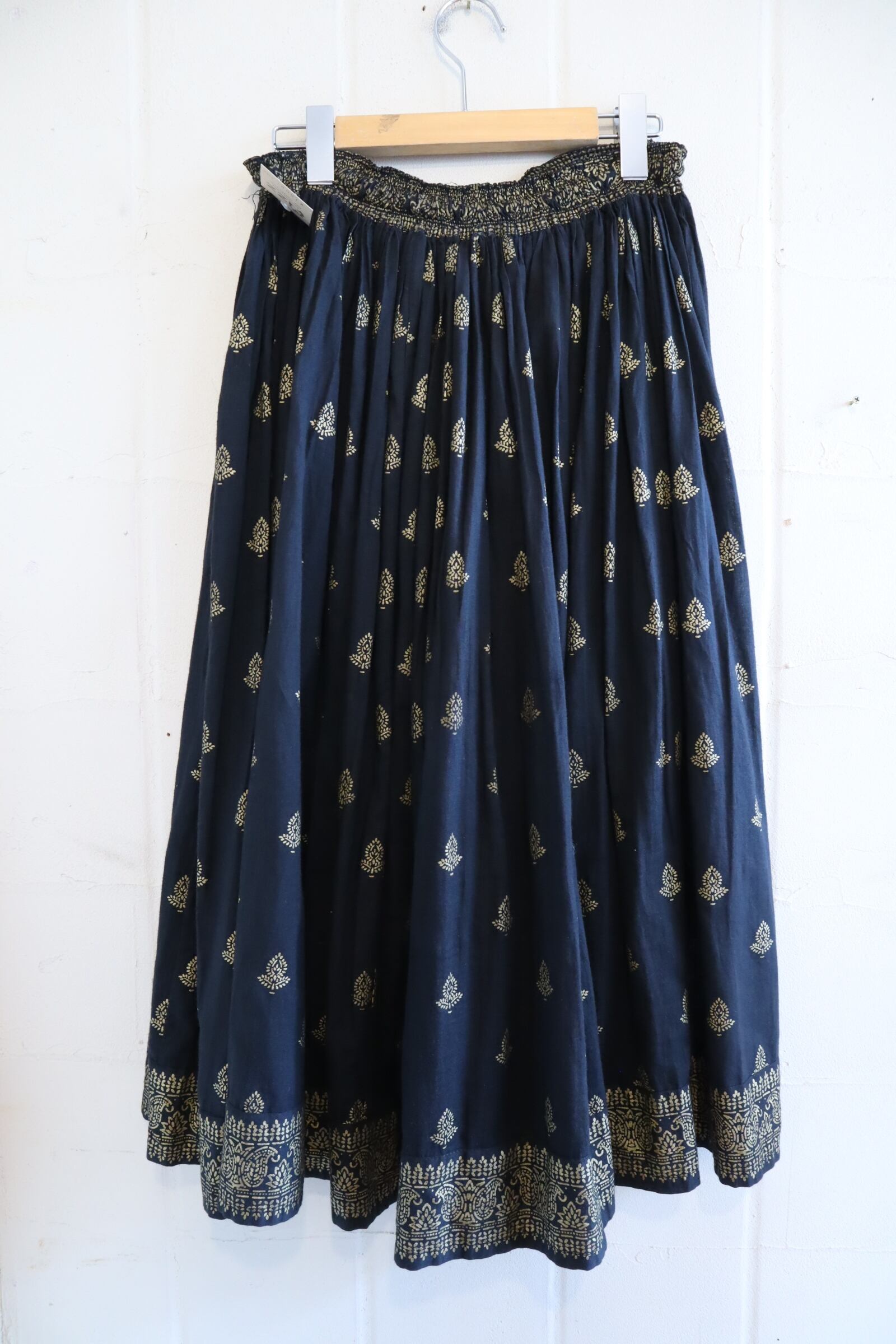インドのゴールドスタンプの様な、手染めと思われるプリントが素敵なギリシャのスカート。