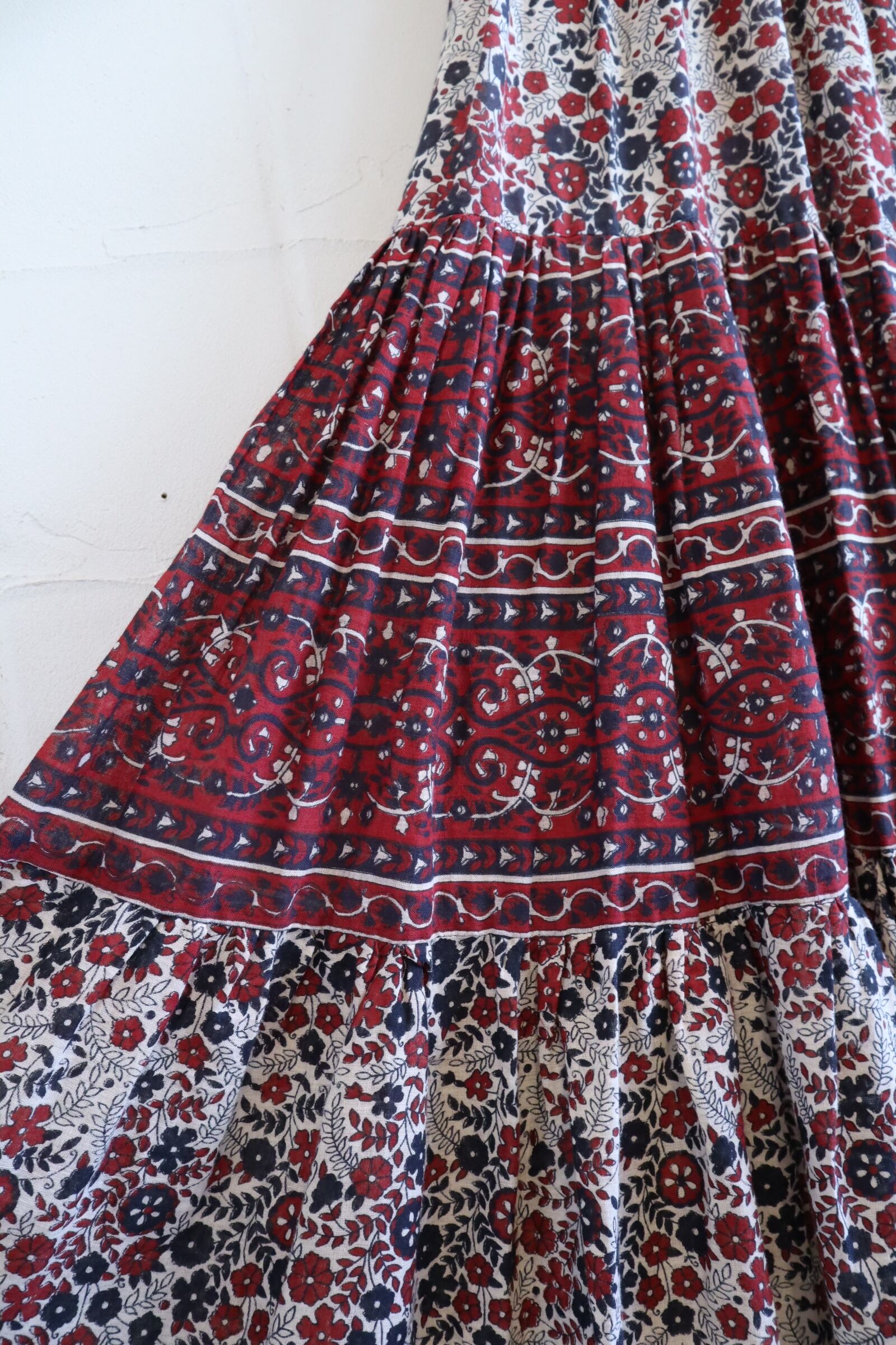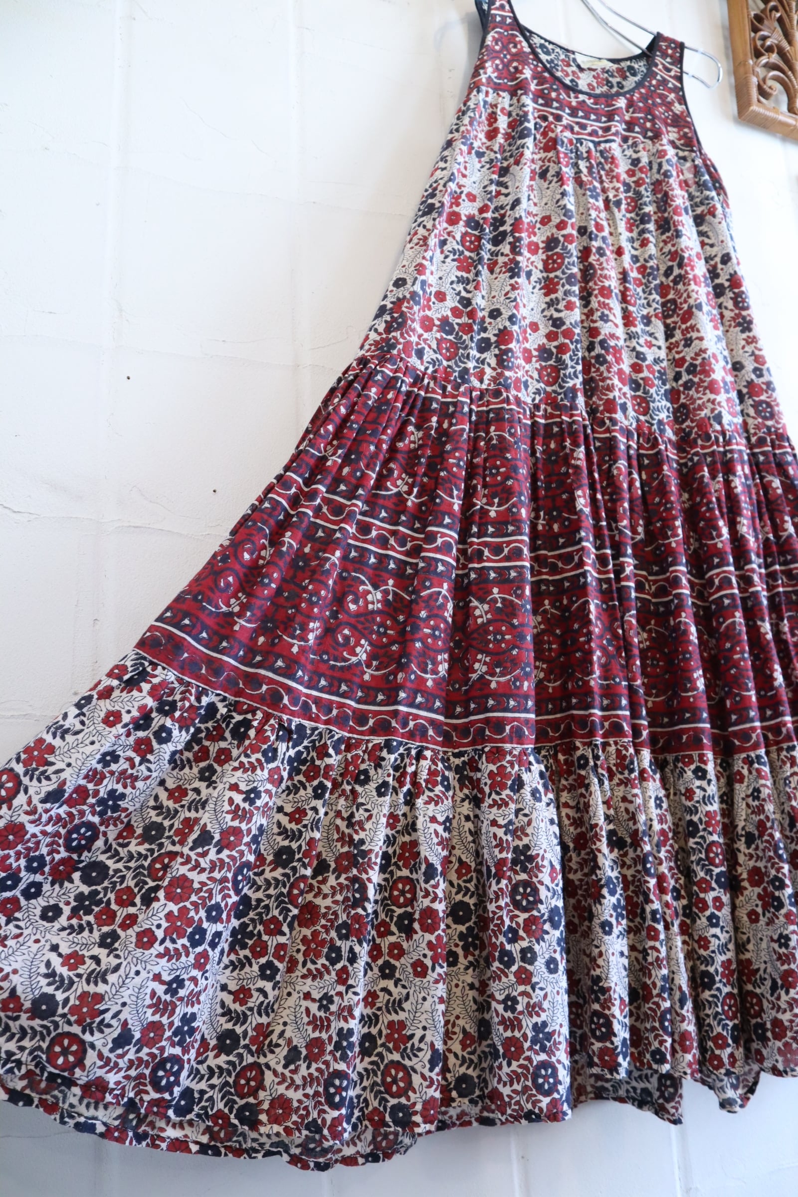 ノースリーブでティアードのボリューム感が可愛いインドコットンドレス。