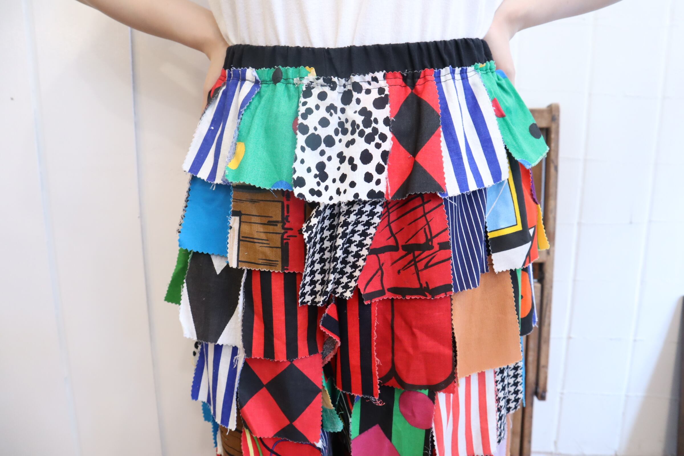 ハギレのパッチワークがとっても可愛いパンツ。