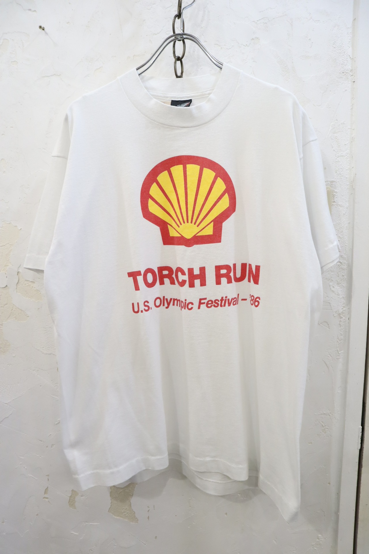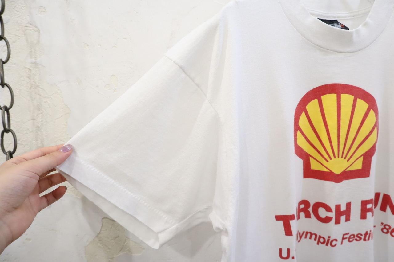 80s white×red×yellow rubber print T-shirt [k-3587]