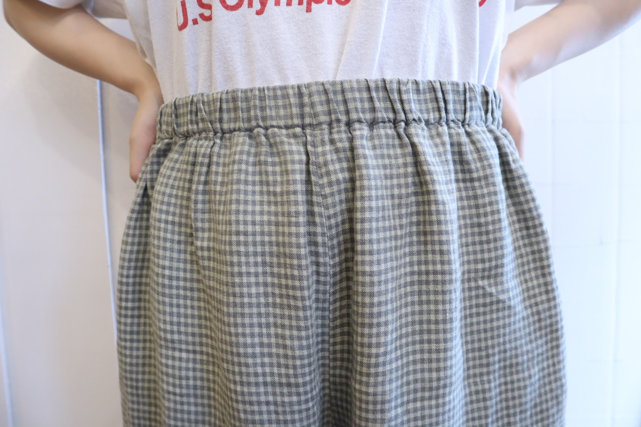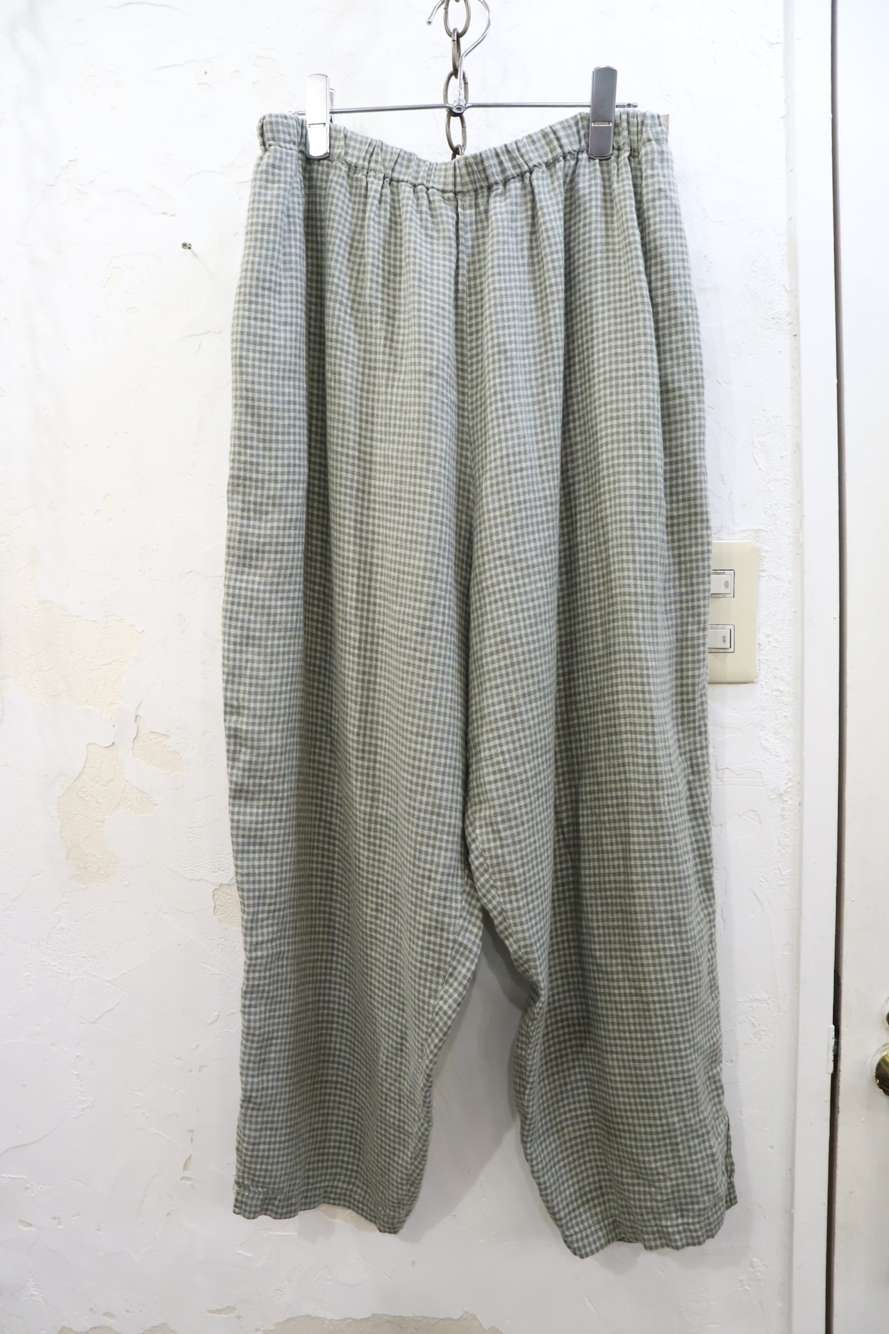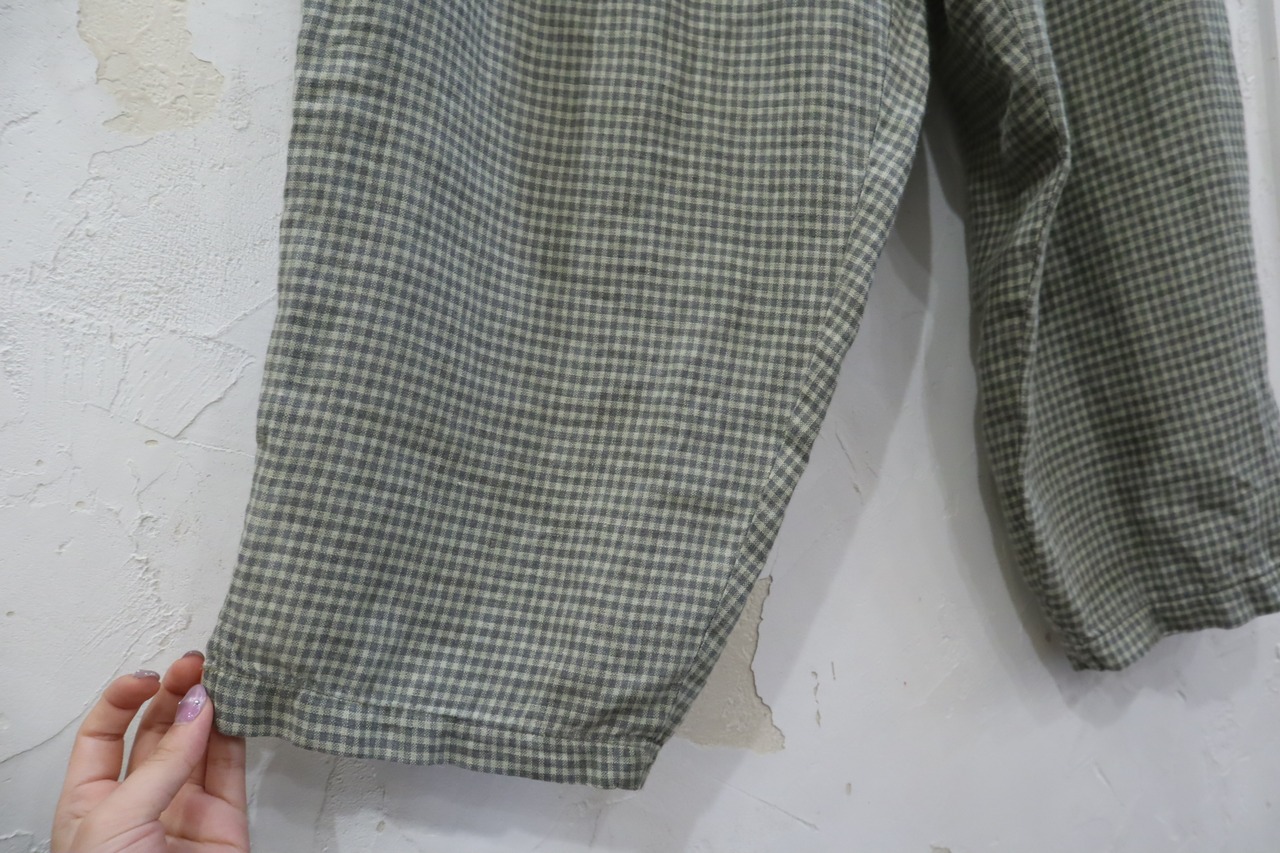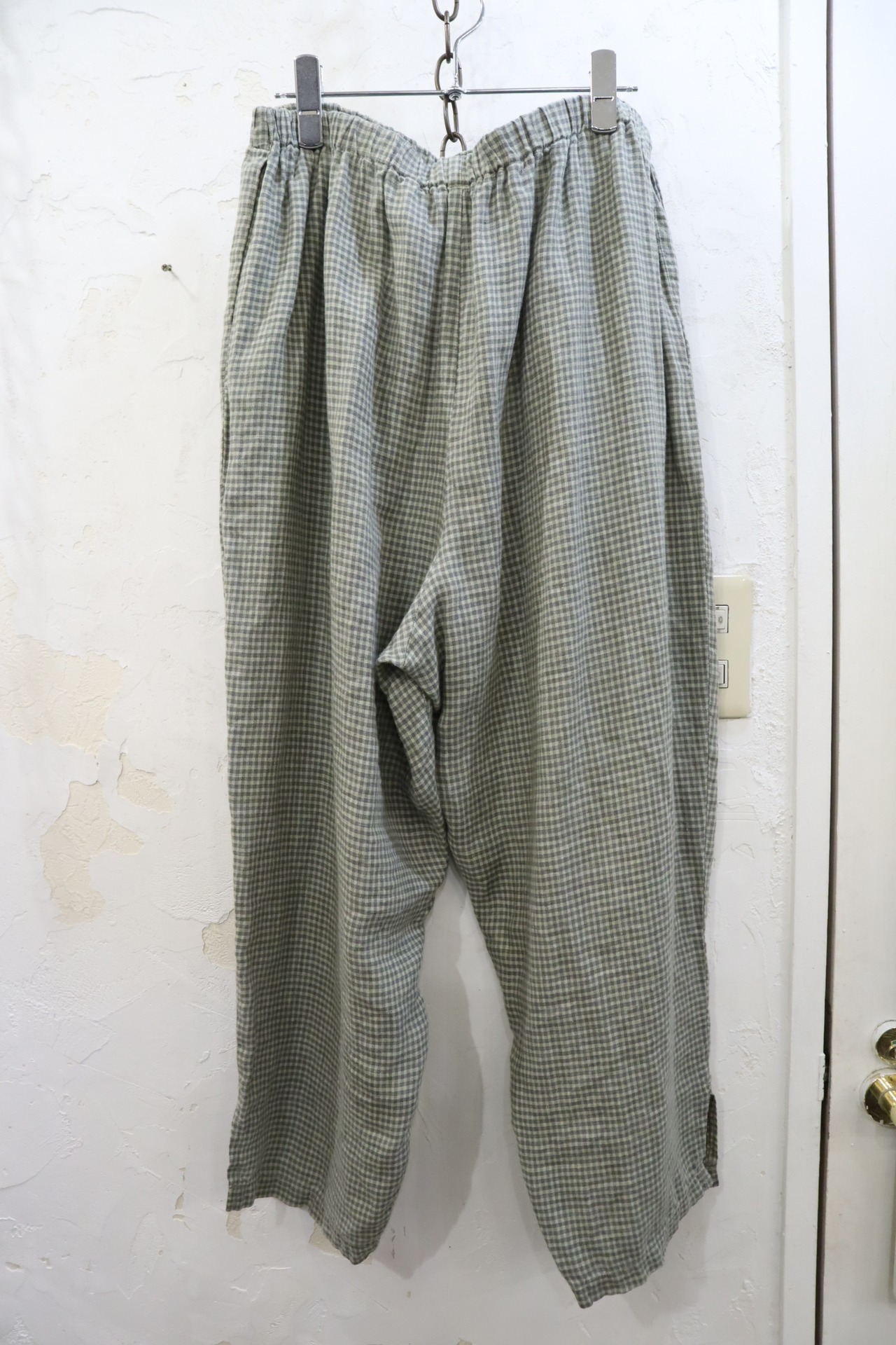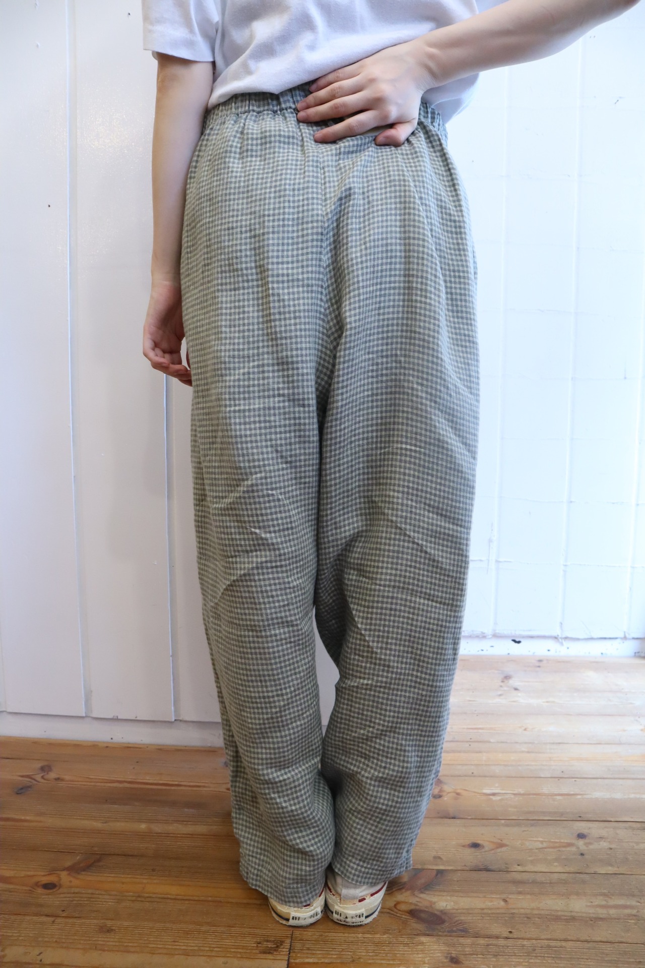 made in USA green×lightgreen ginghamcheck linen easy pants [k-3588]