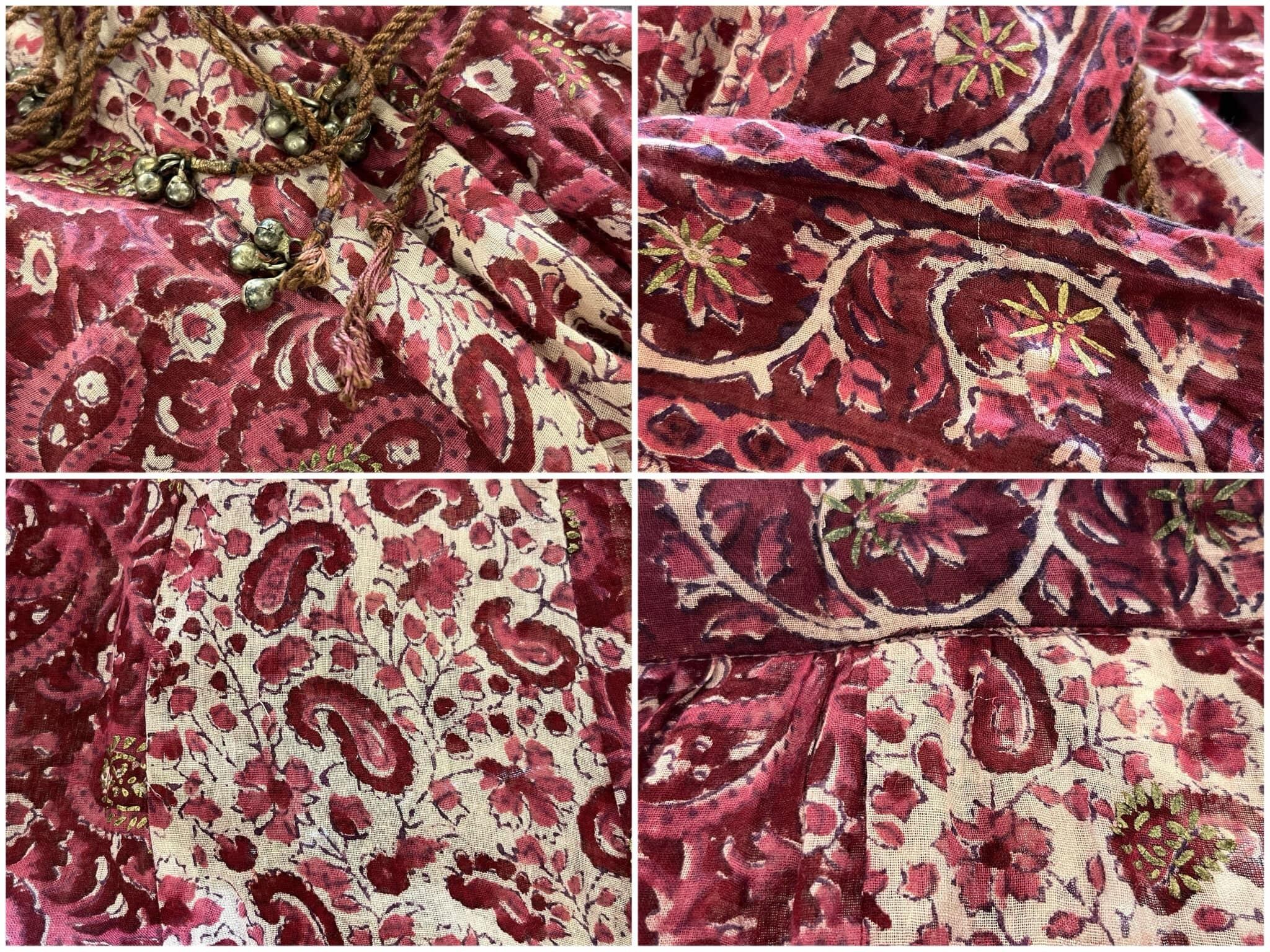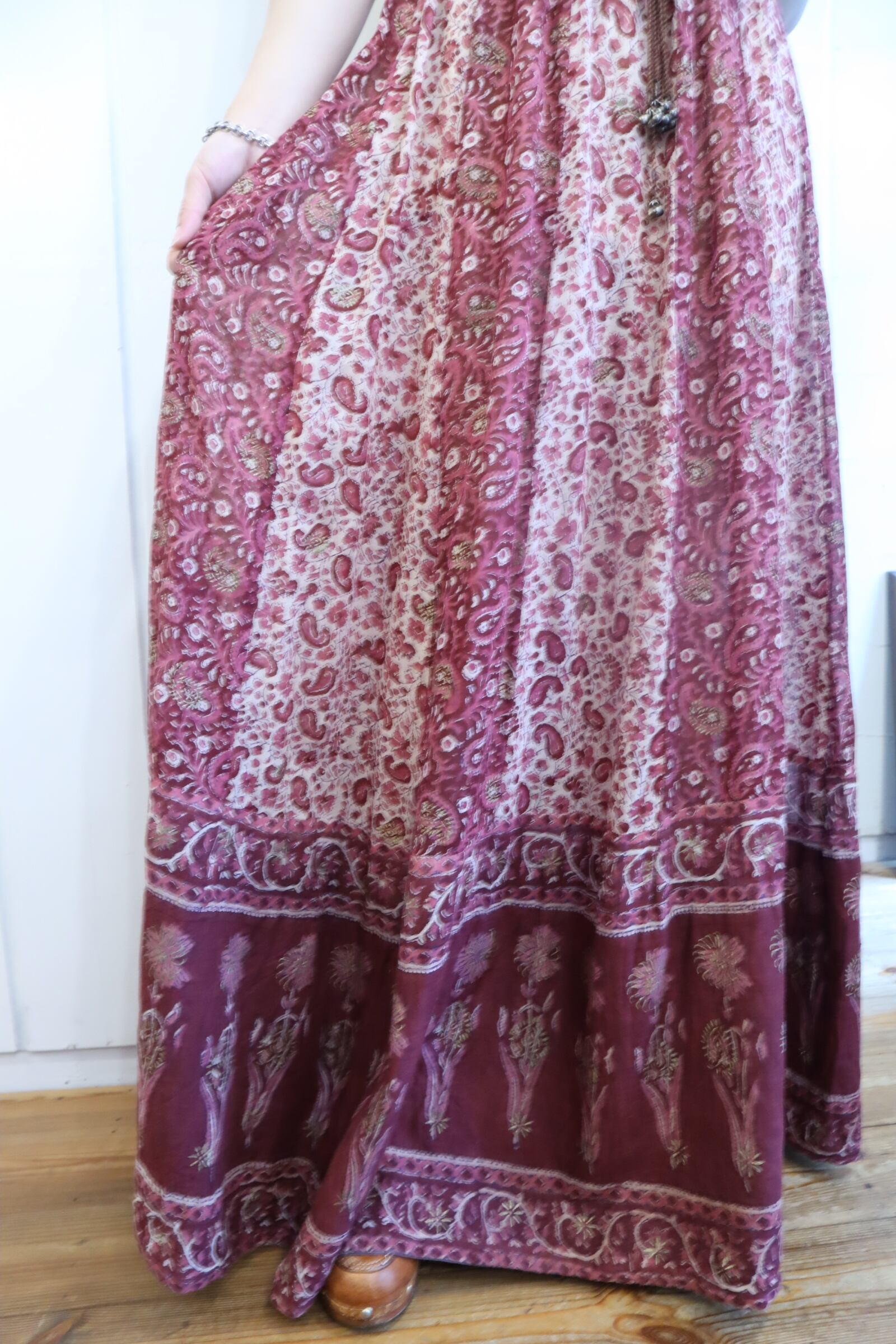 dullred×pink flower&paisley Indian cotton wrap skirt [l-3594]
