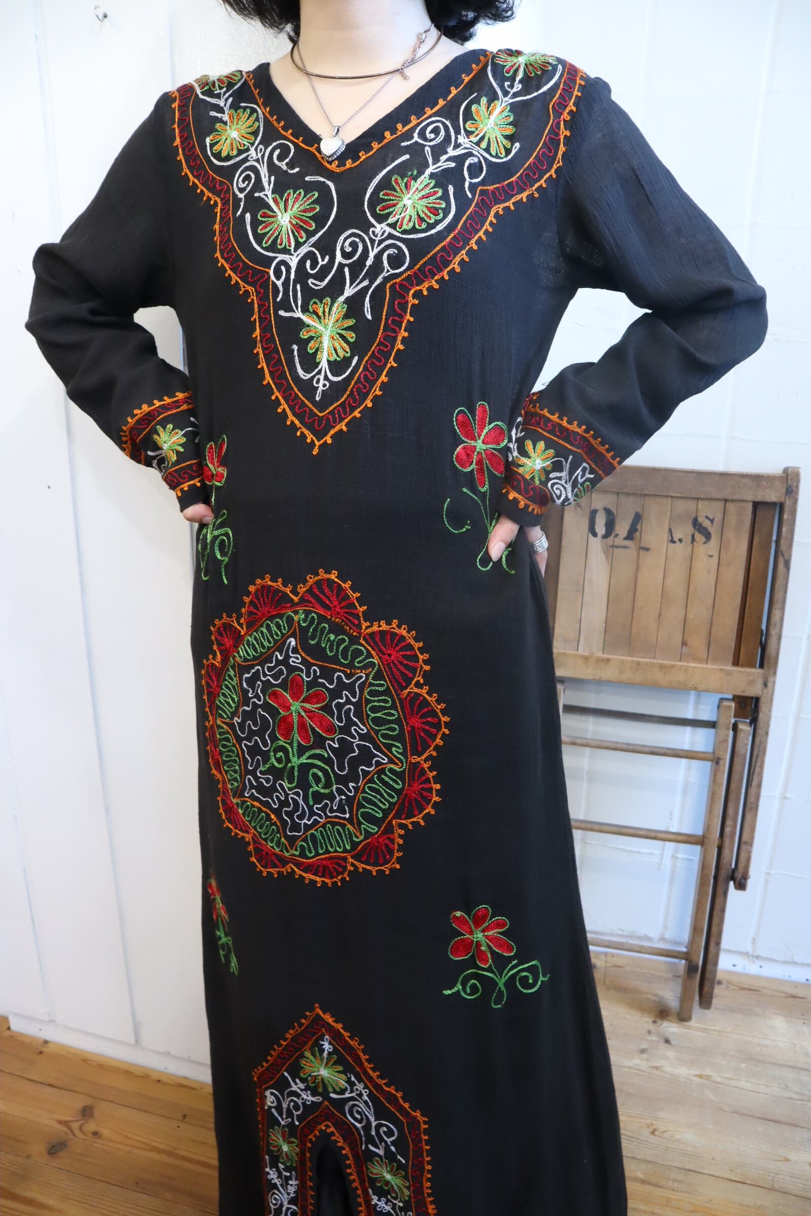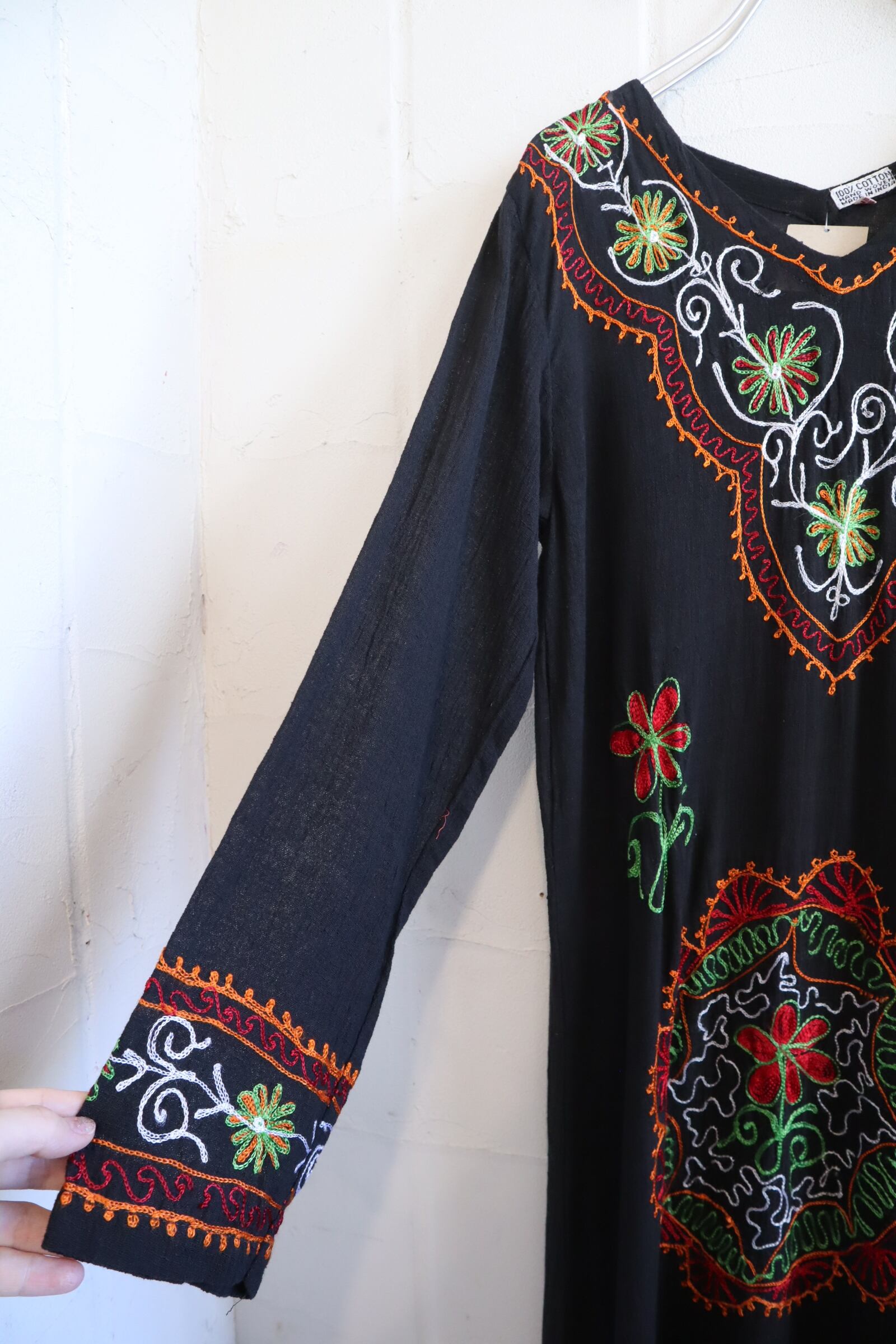 お花の刺繍や裾のスリットが素敵なインドコットンドレス。