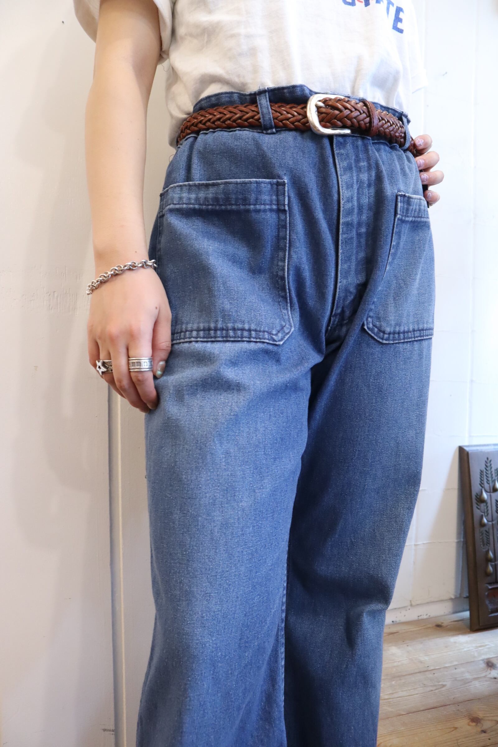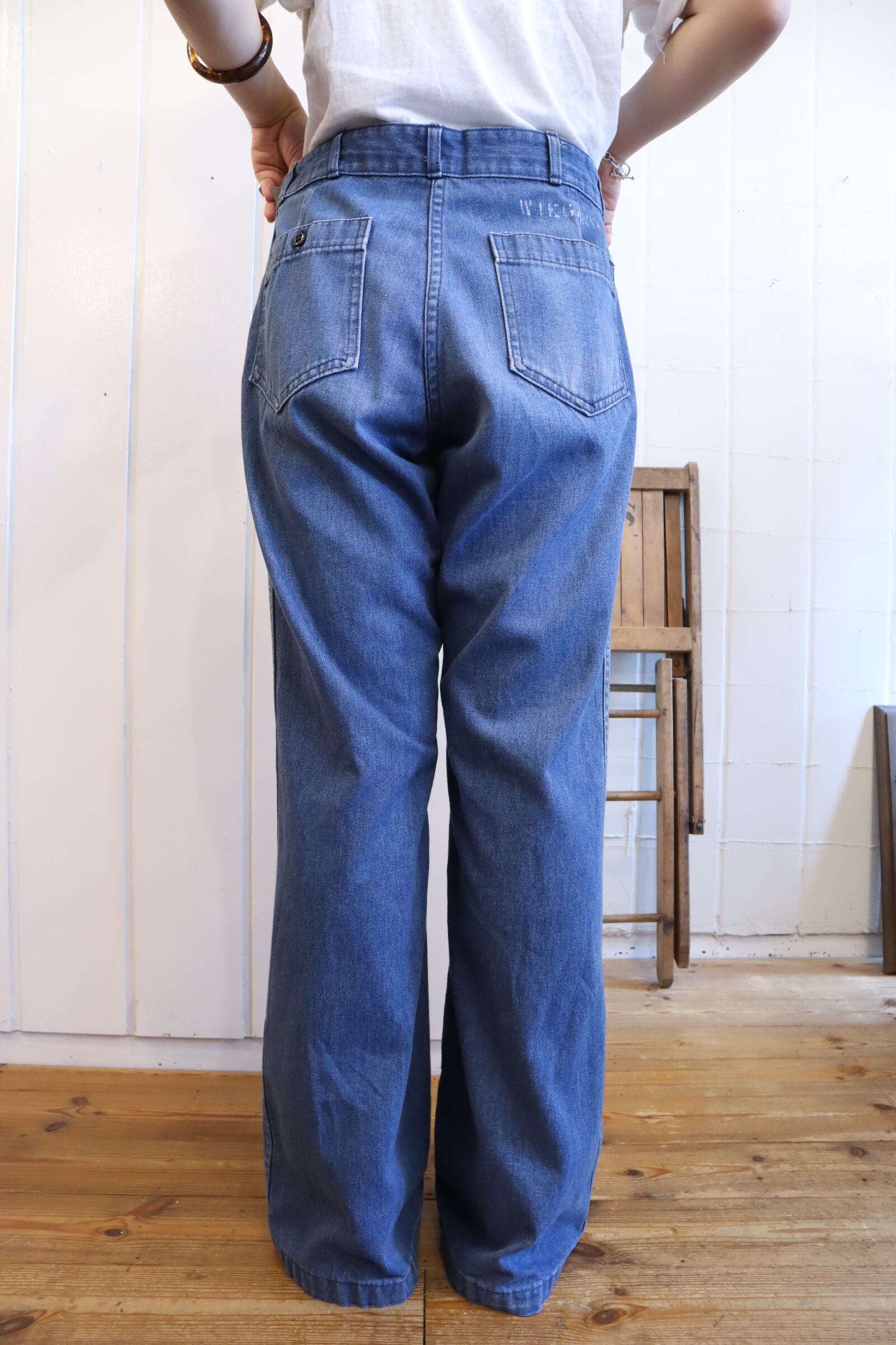 70s US NAVY blue denim sailor pants [k-3605]