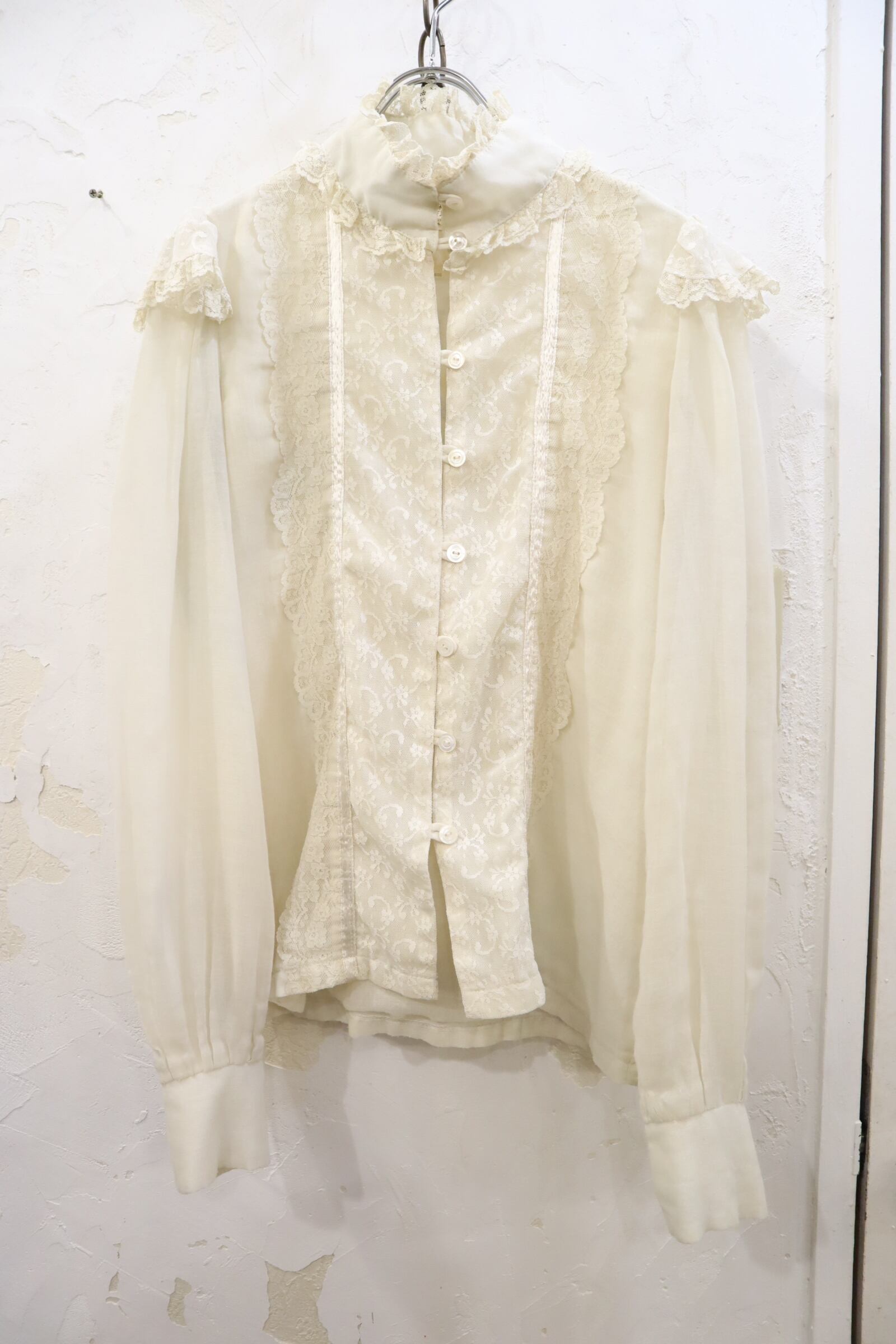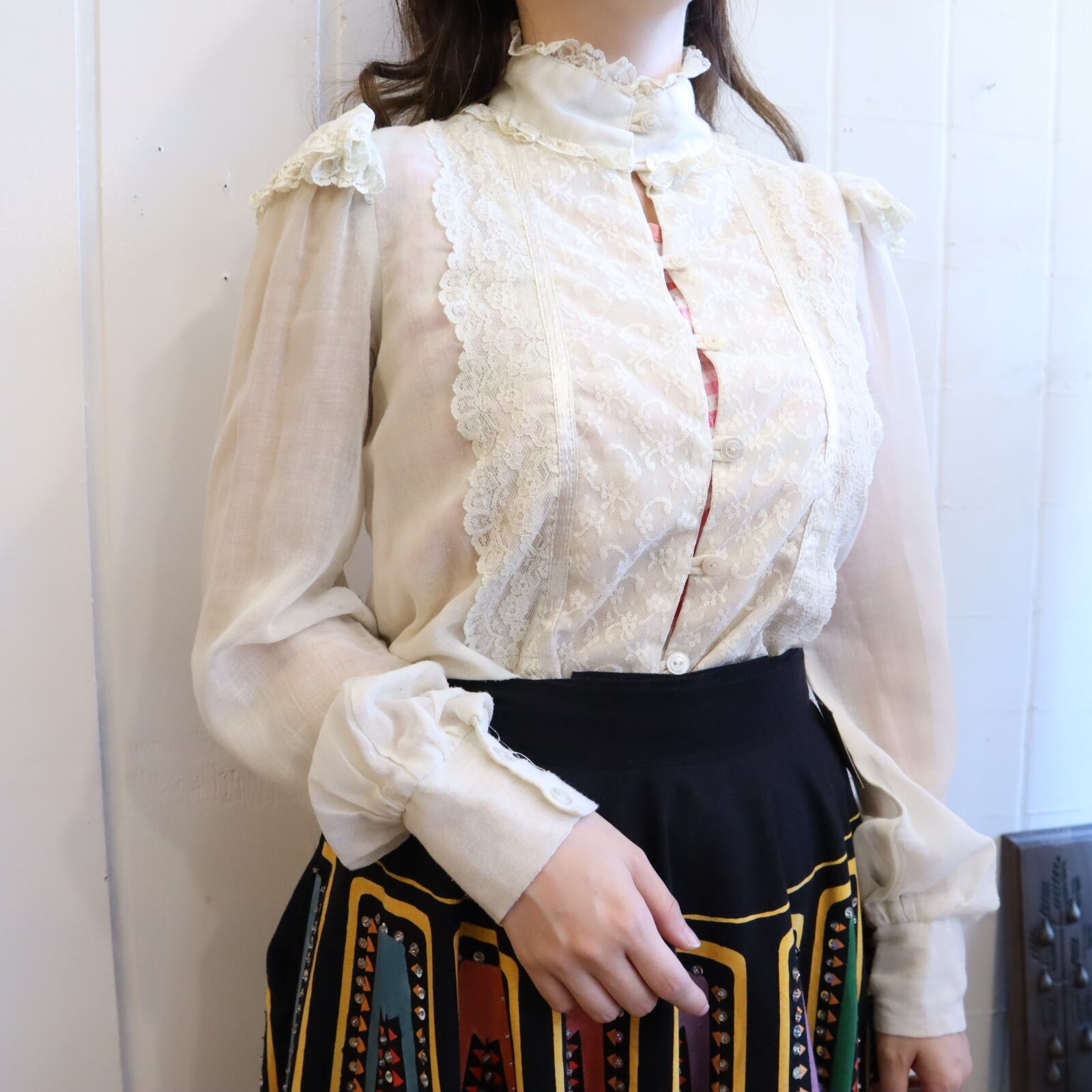 70s GUNNE SAX offwhite lace sheer blouse [l-3607]