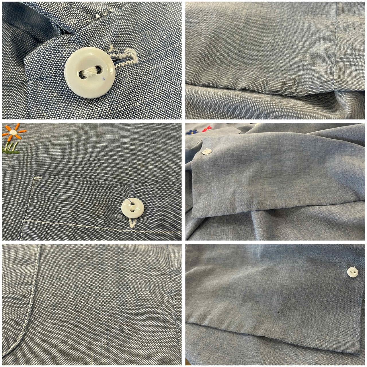 お花やてんとう虫、南の島の雰囲気やキノコなどの刺繍がとっても可愛いBIGMACボディのシャンブレーシャツ。