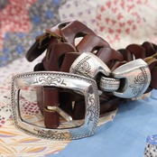 90s brown×silver weaves belt [l-3621]