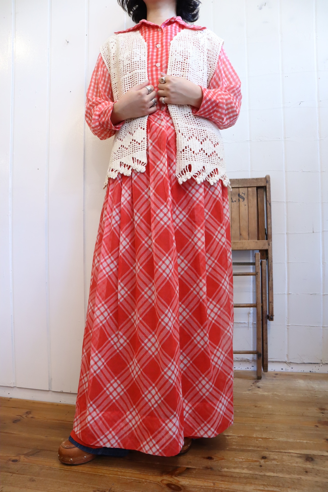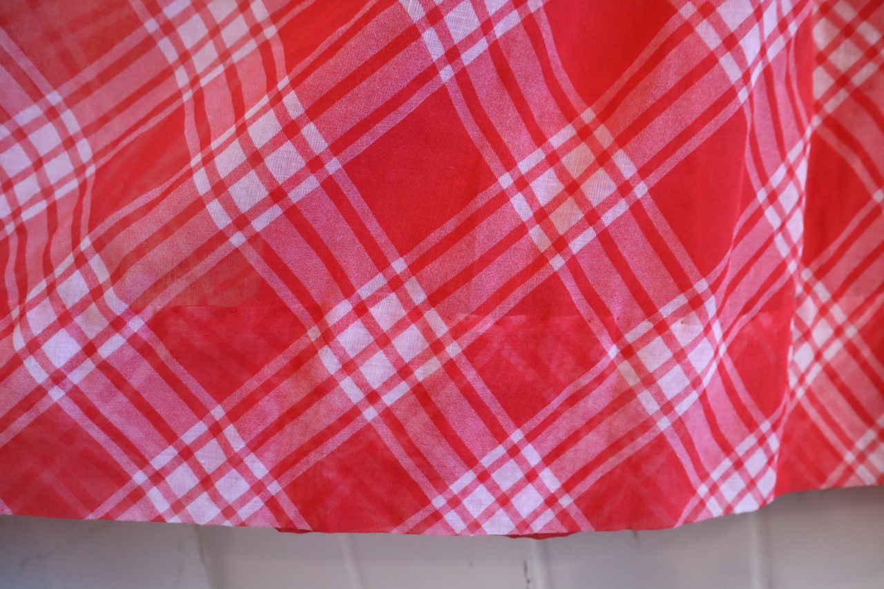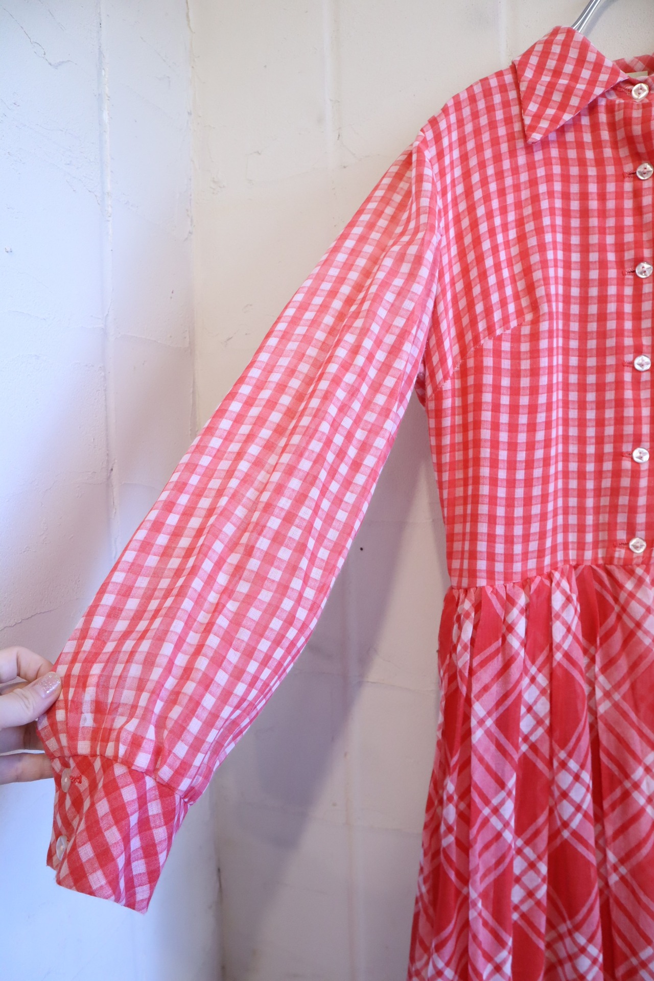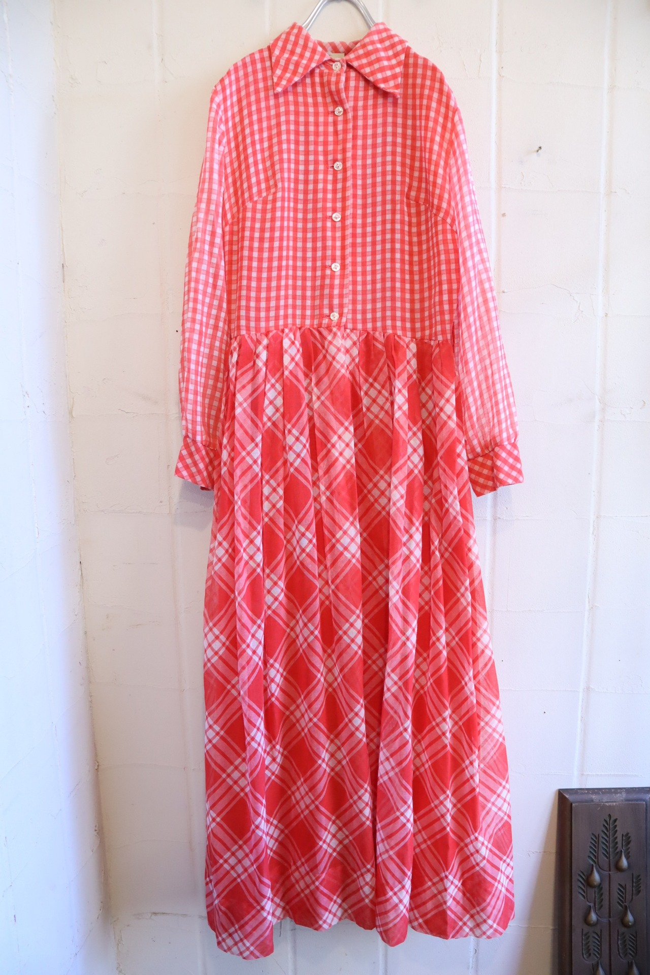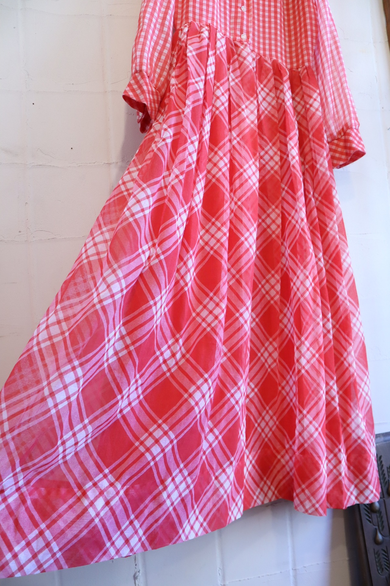 シンプルなデザインながらも古着らしいパターンの違うチェックの組み合わせが◎