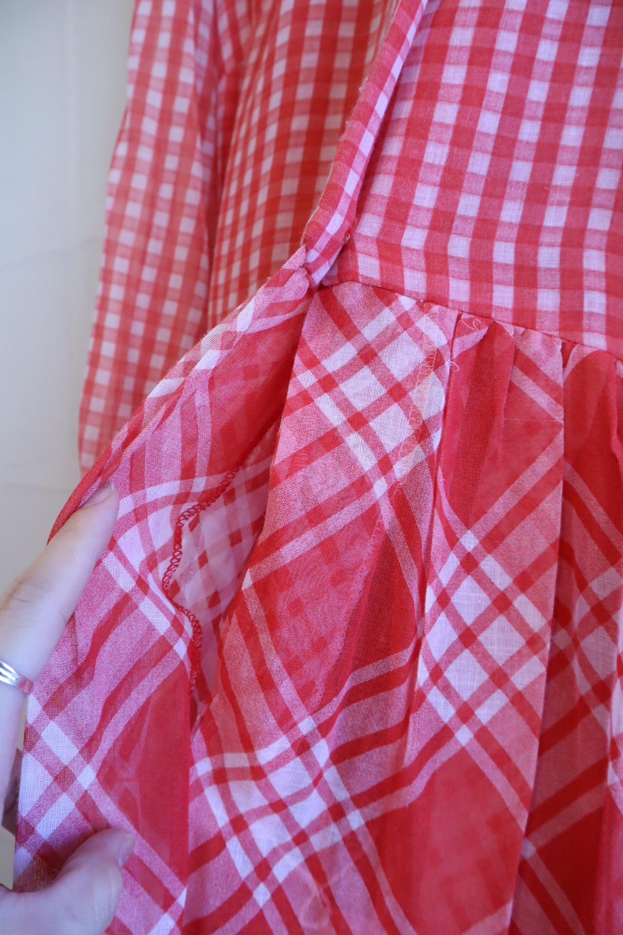 裏地・表地に裾の丈詰め、裏地や表地の縫い目に一部リペア跡がございます。