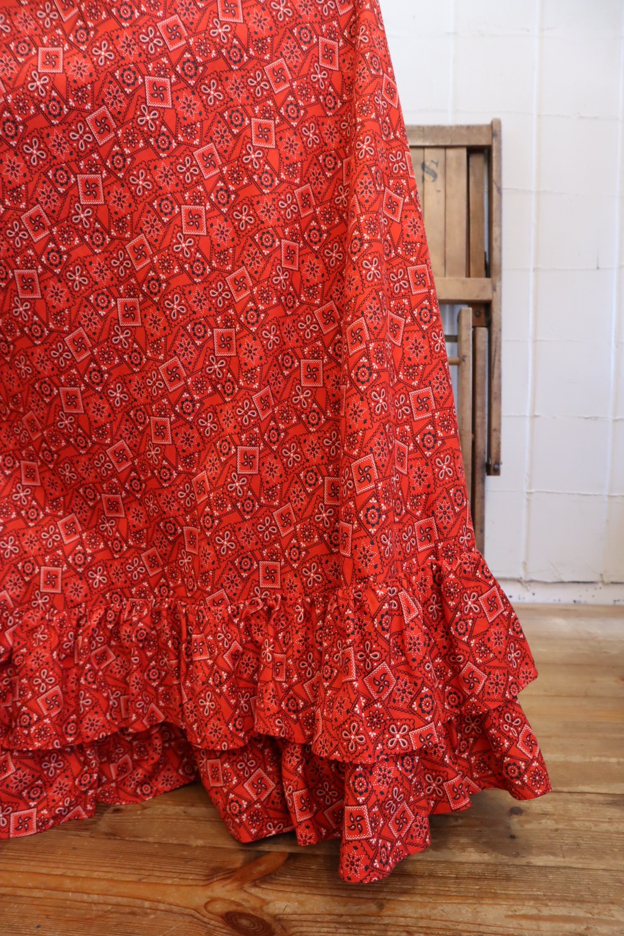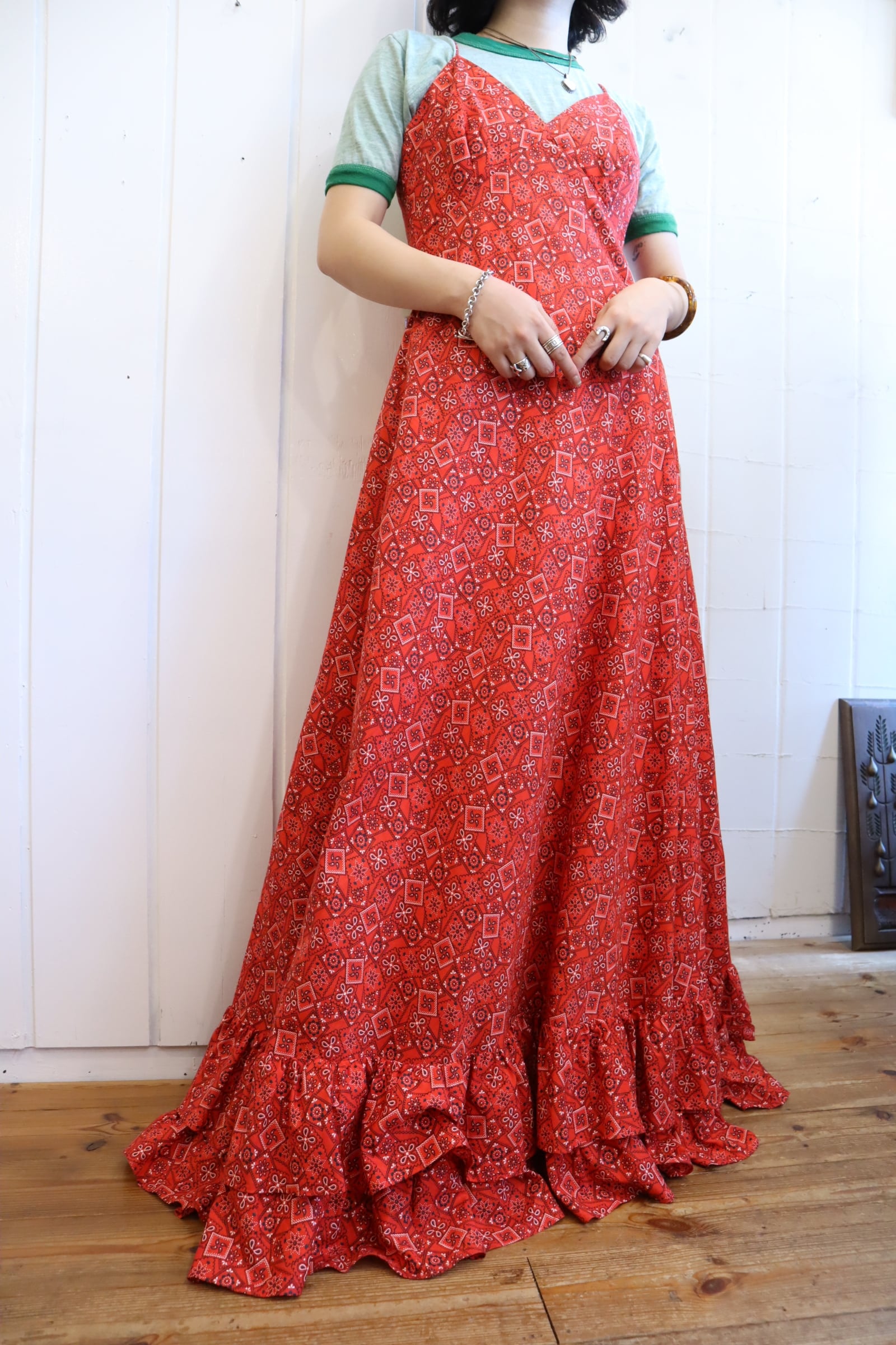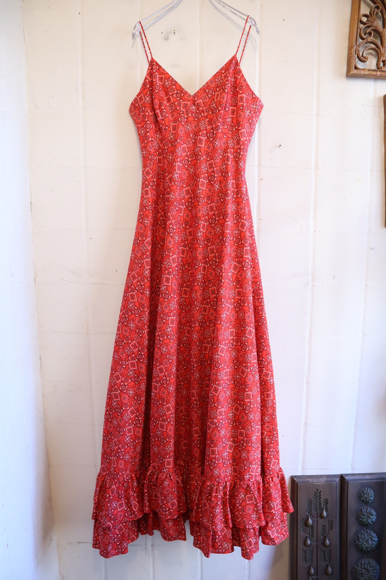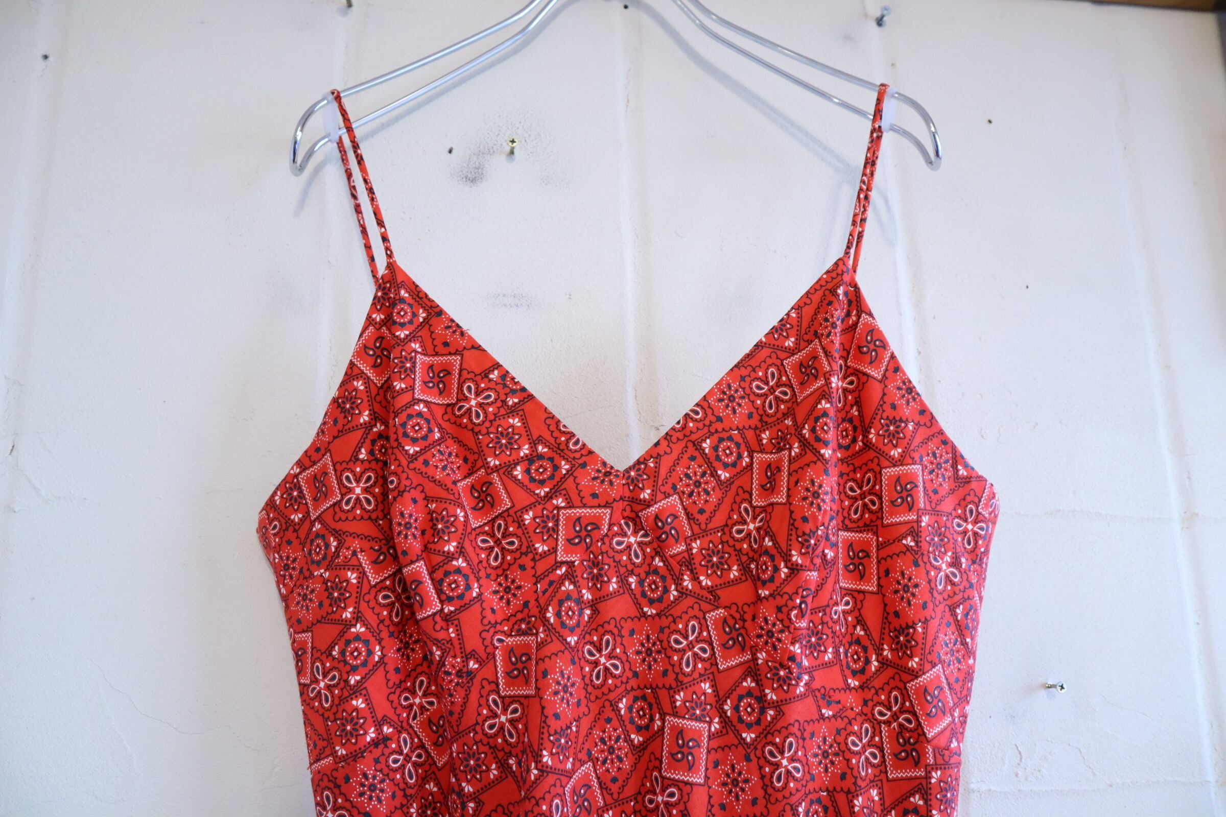 70s red×black×white bandanna pattern camisole dress [l-3625]
