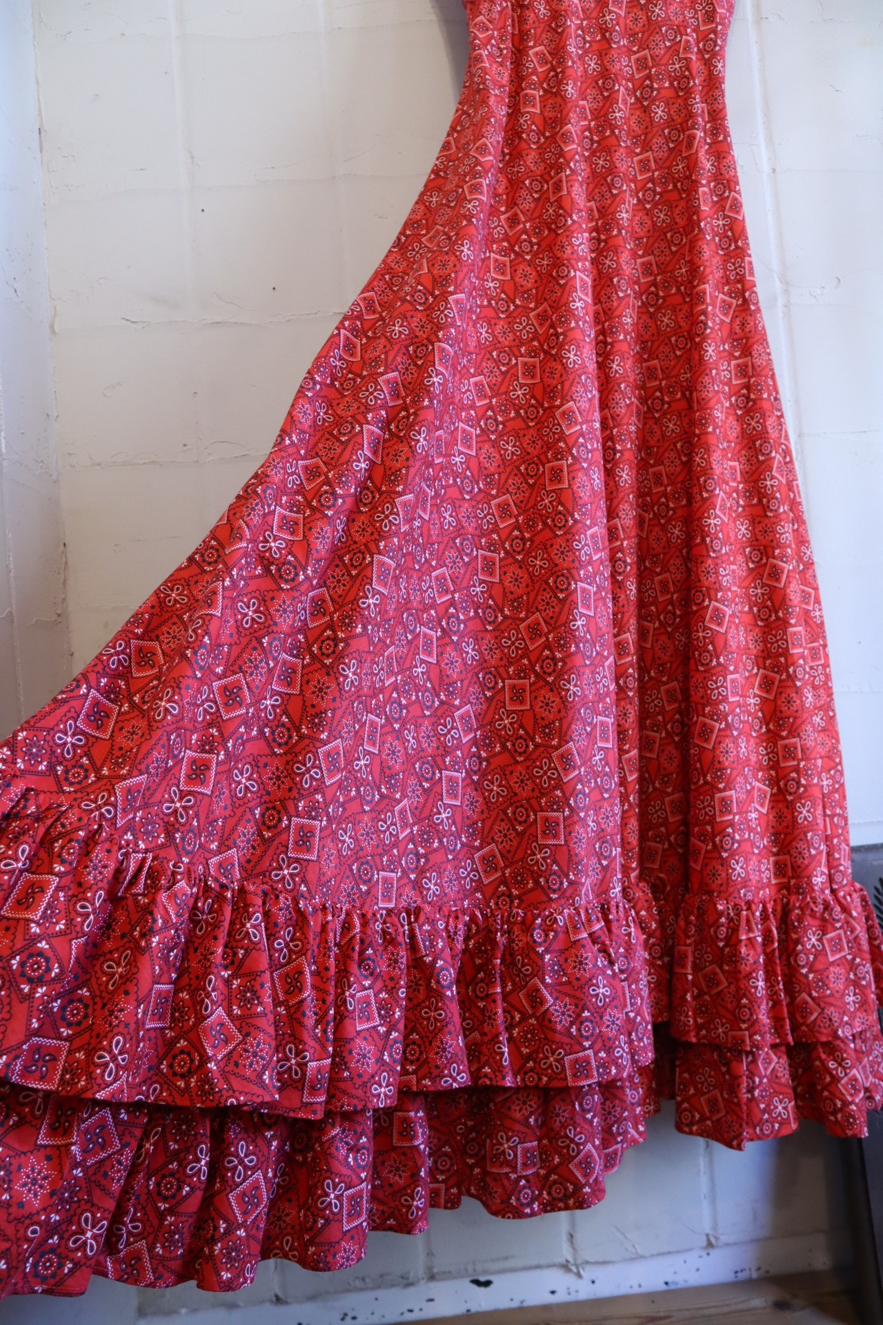 ミニバンダナがたくさん詰まったテキスタイルが素敵な70sドレス。