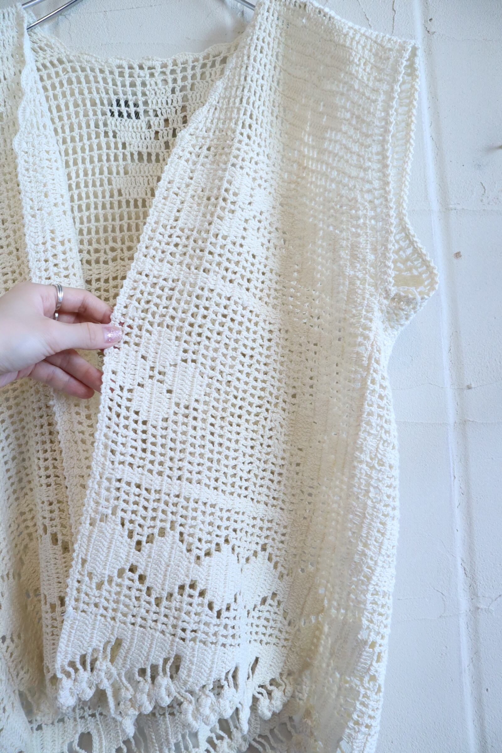 ギザギザに編まれた裾のデザインが素敵なかぎ編みベスト。