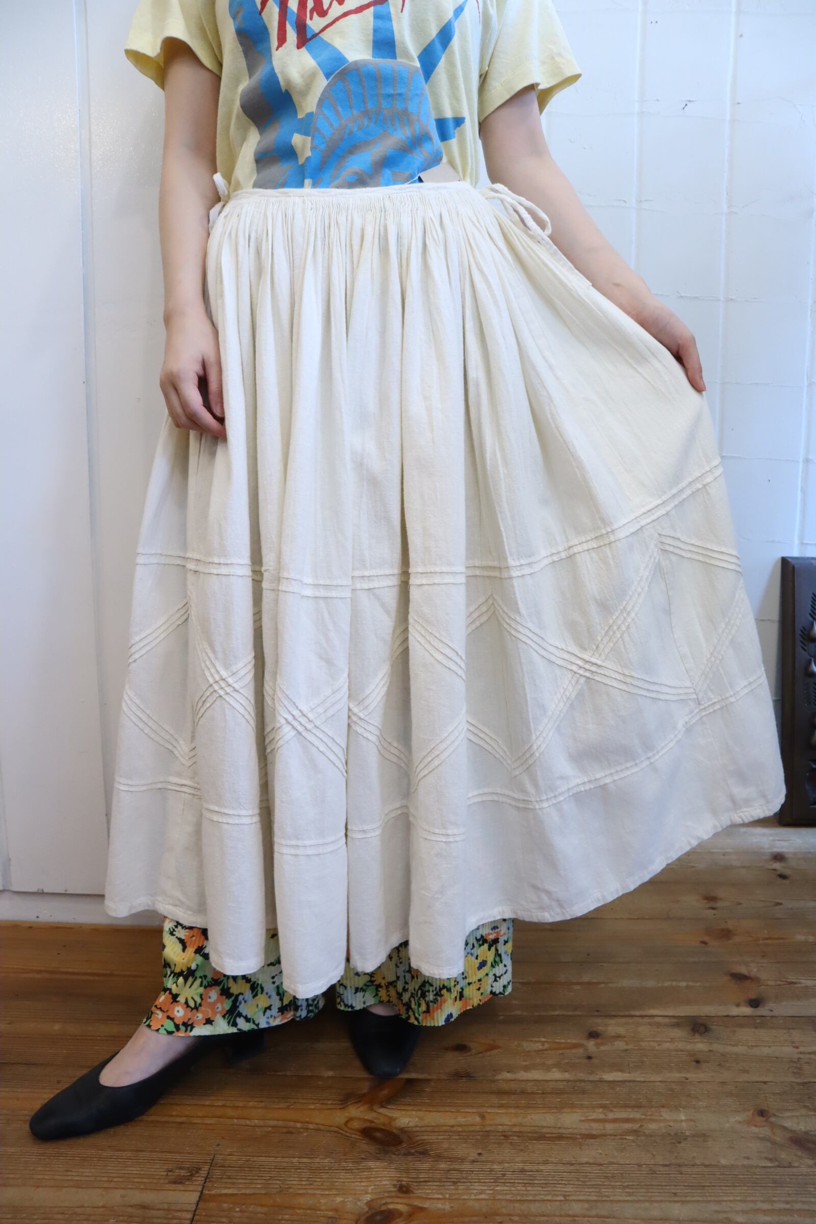 ウエストに入ったたくさんのギャザーからボリュームたっぷりに広がるシルエットが特徴的なスカート。