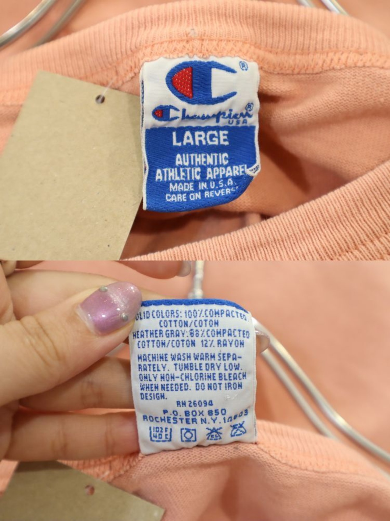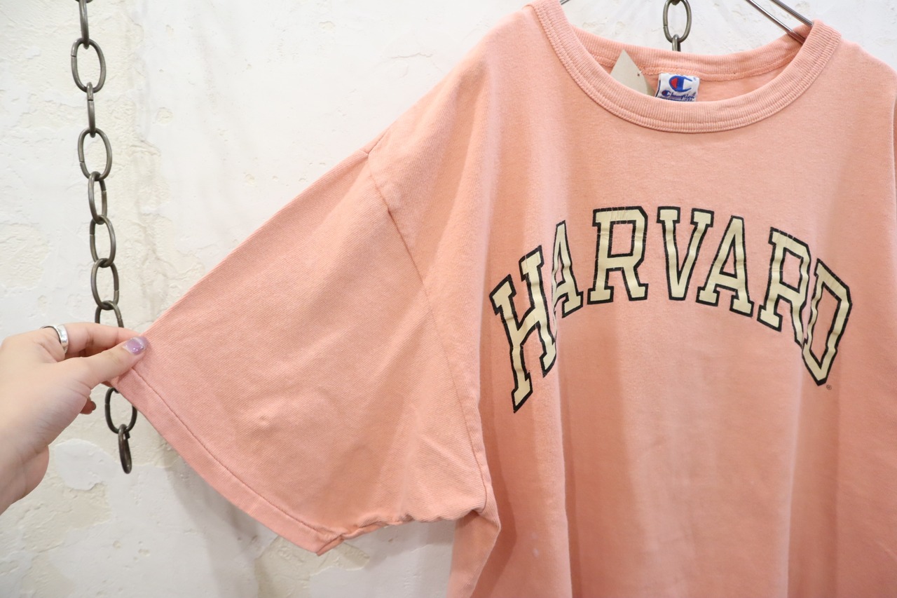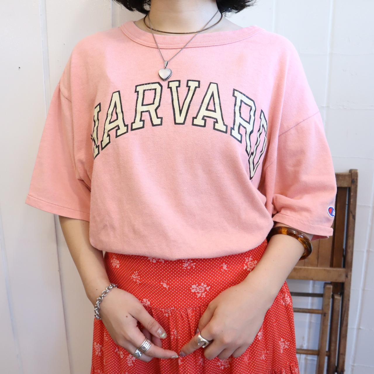 ピンクカラーがとても可愛い90sChampionのカレッジプリントTシャツ。