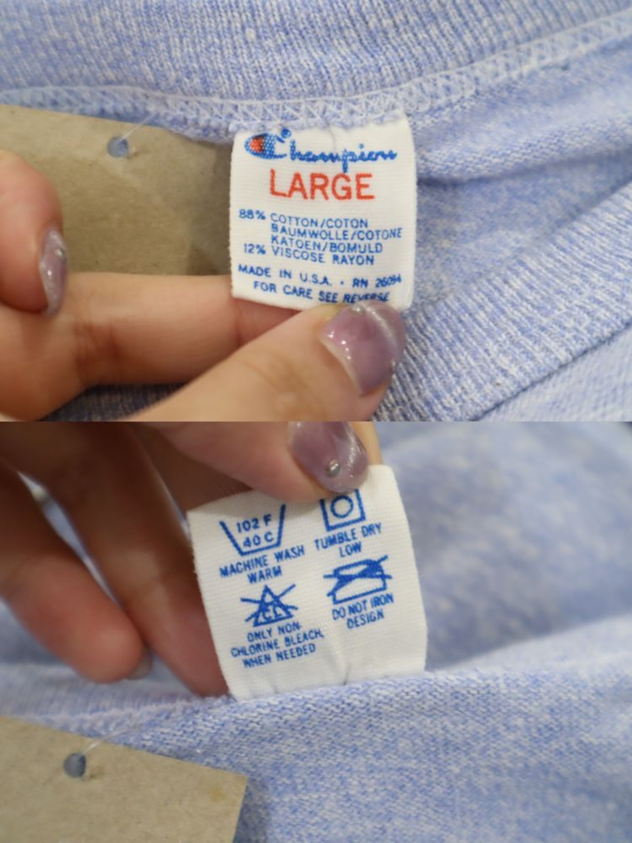 青紫のような絶妙なお色味が素敵な80sChampionTシャツ。