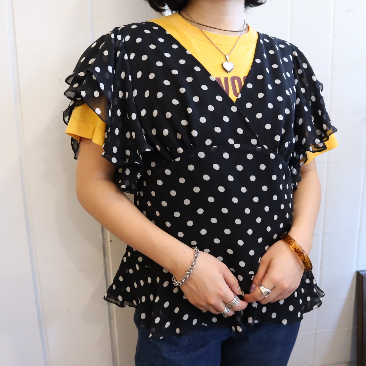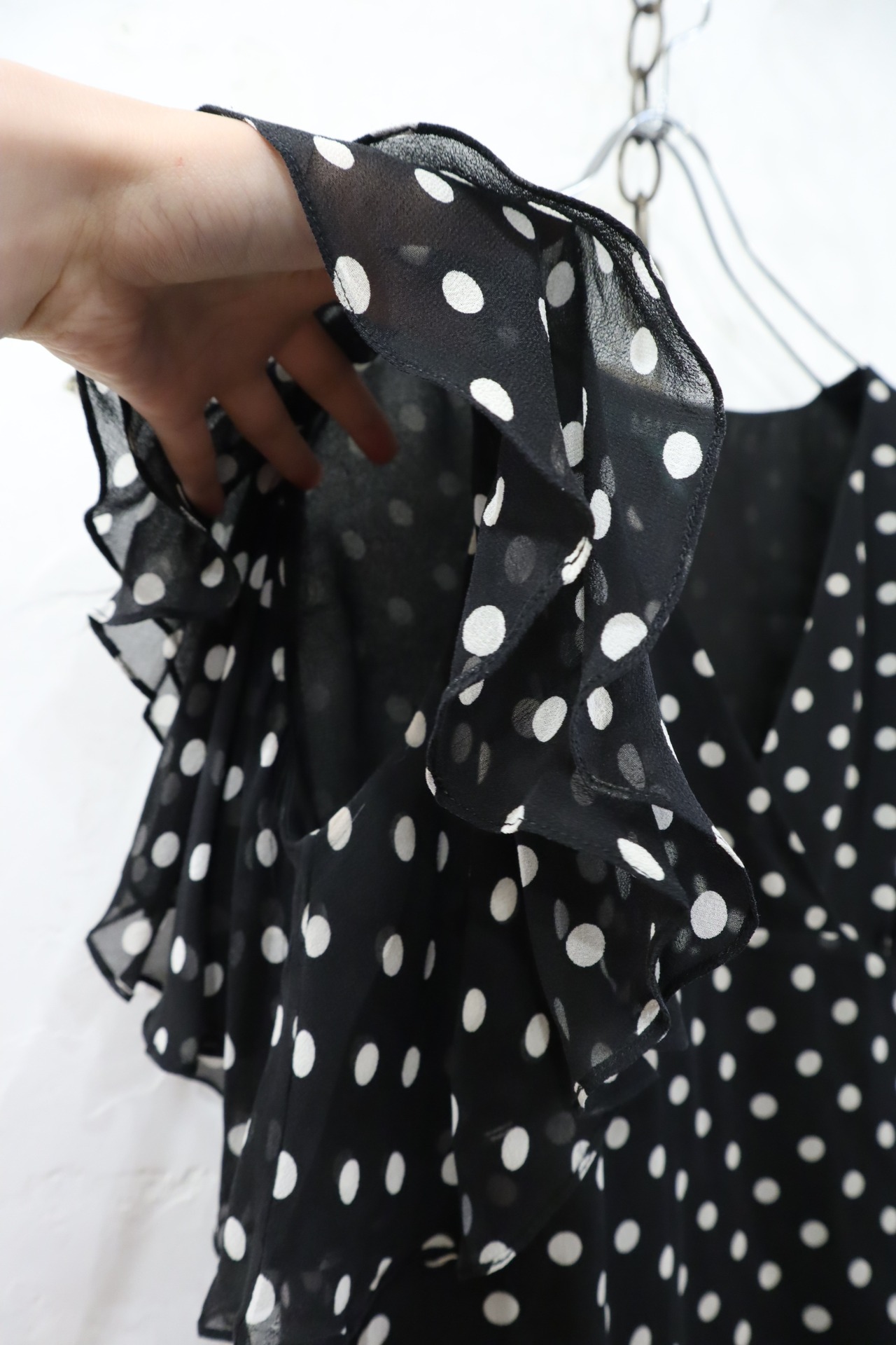 Ralph Lauren black×white dot frill silk tops [k-3653]