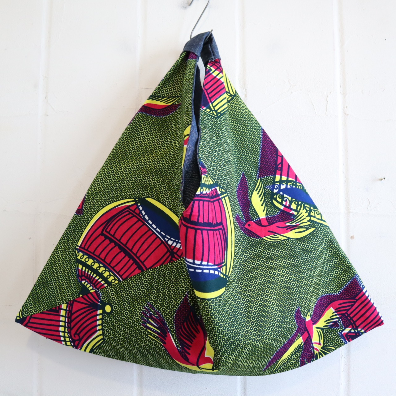 green×winered birdcage print african batik bag [l-3656]