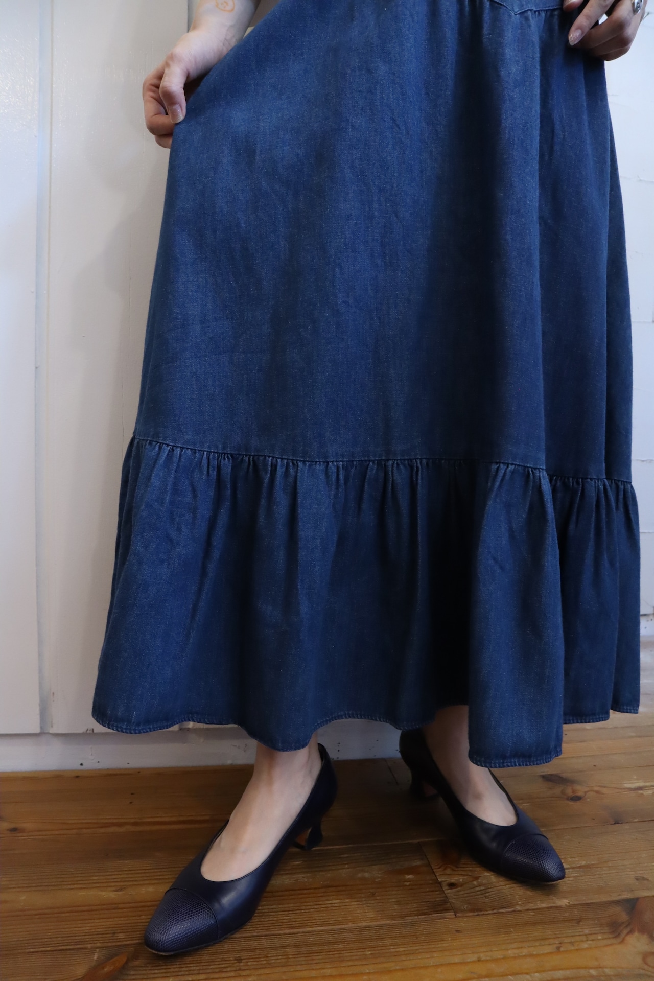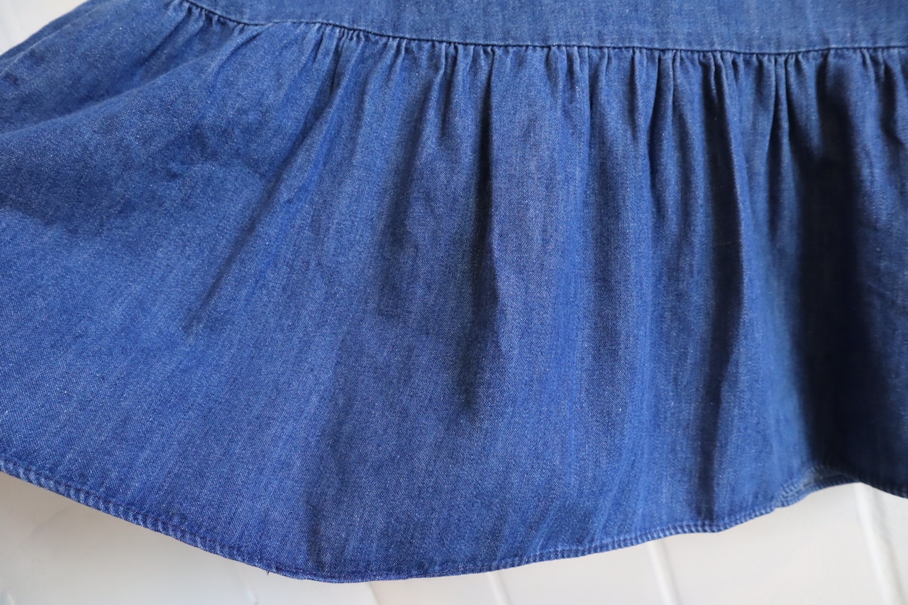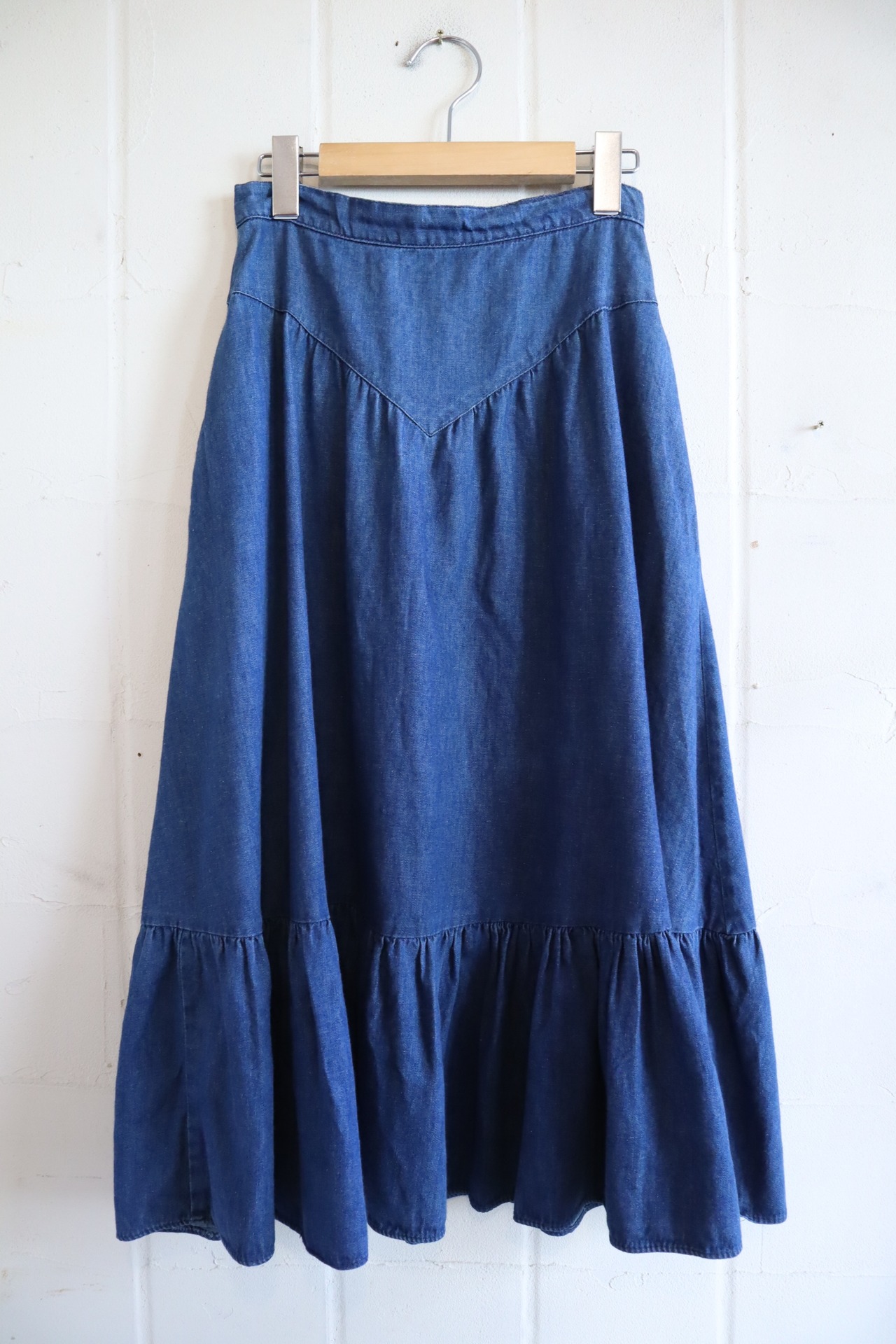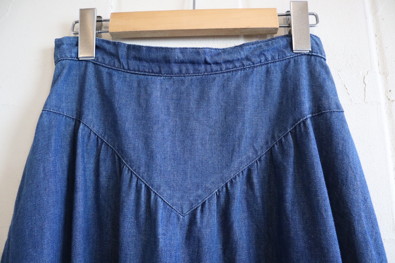 70s GUNNE SAX blue plain denim skirt [l-3670]