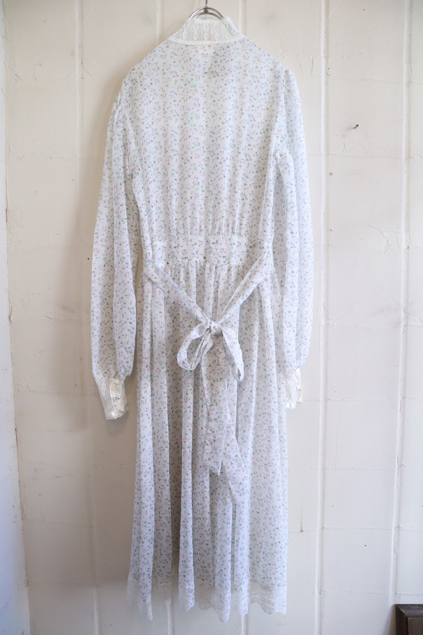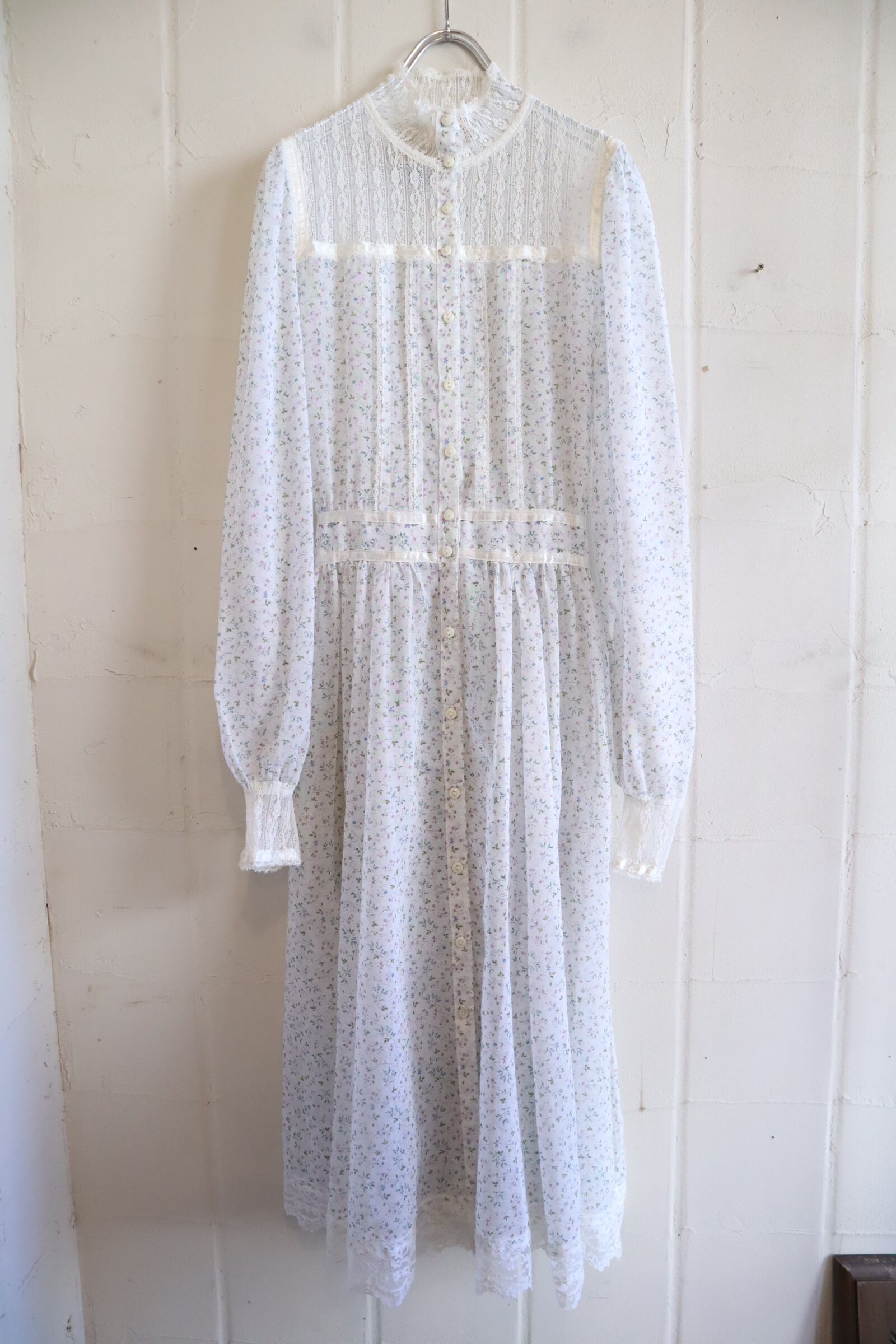 70s GUNNE SAX white×blue×purple flower print dress [l-3671]