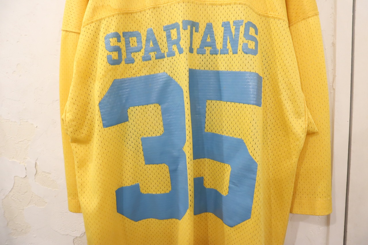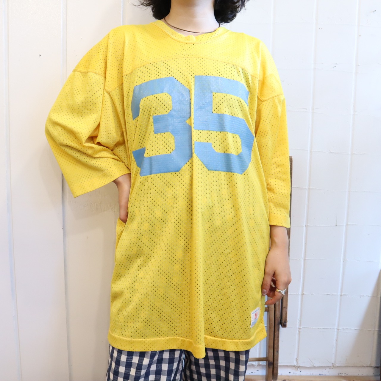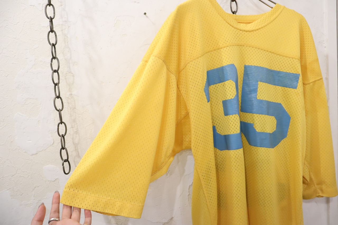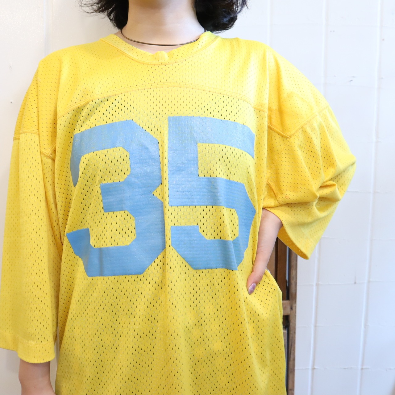 70s yellow×lightblue numbering football mesh T-shirt [k-3673]