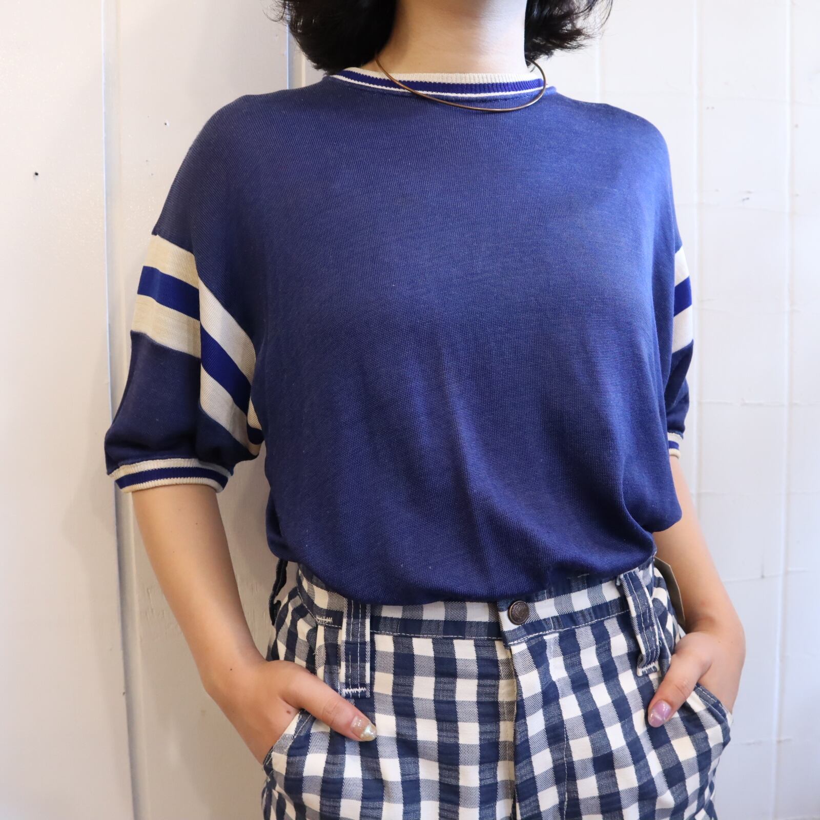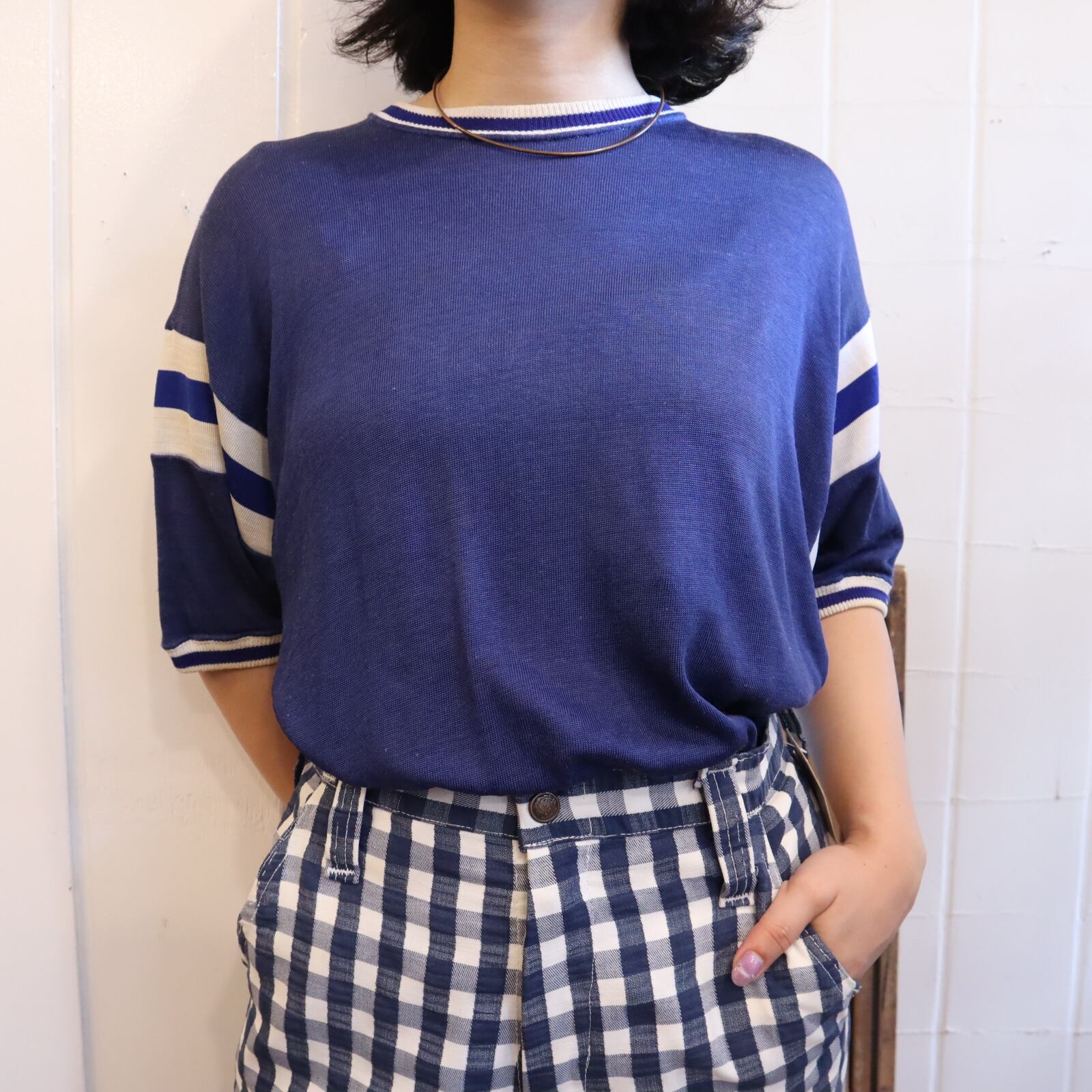 60s navy×white plain football T-shirt [k-3674]