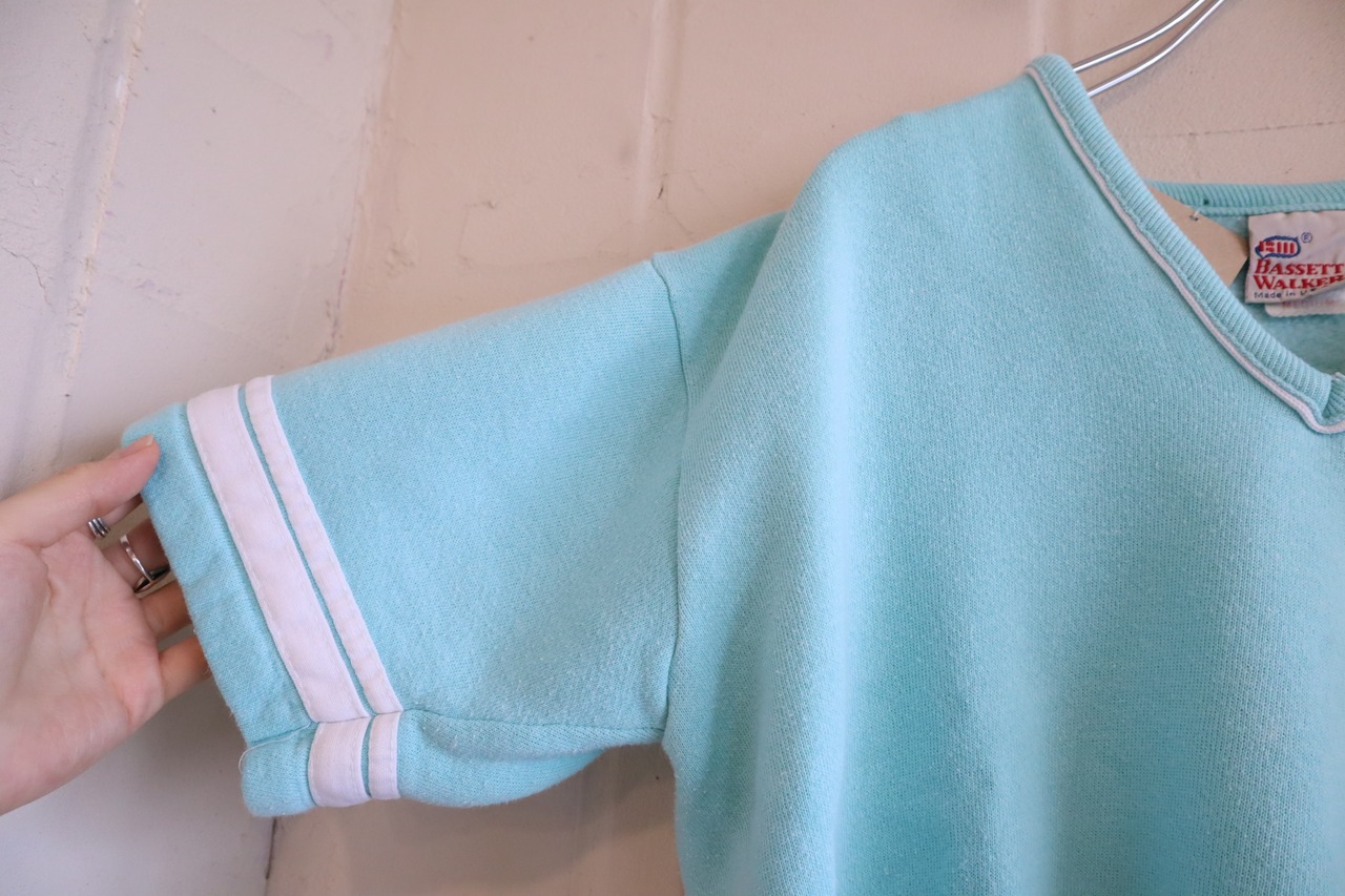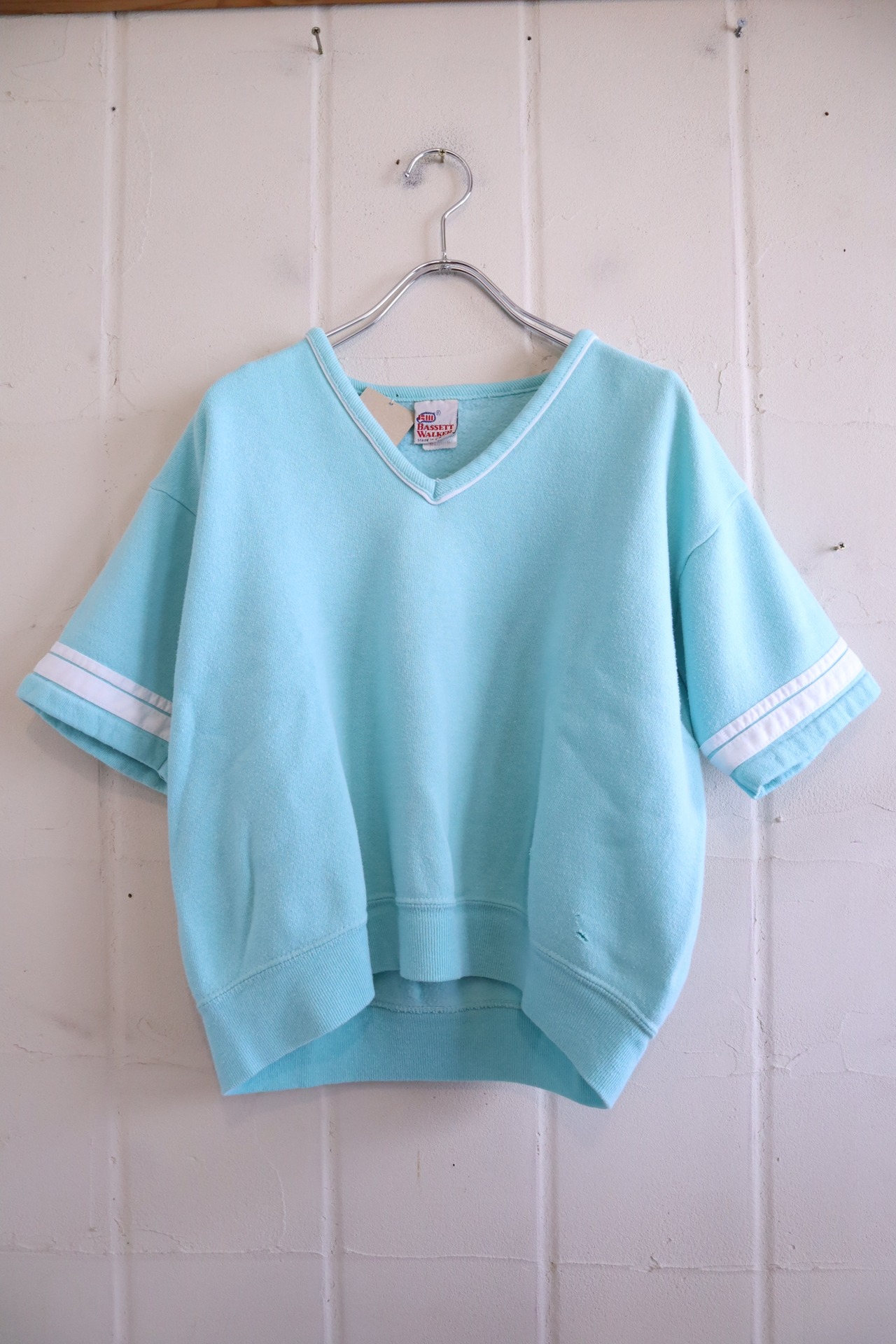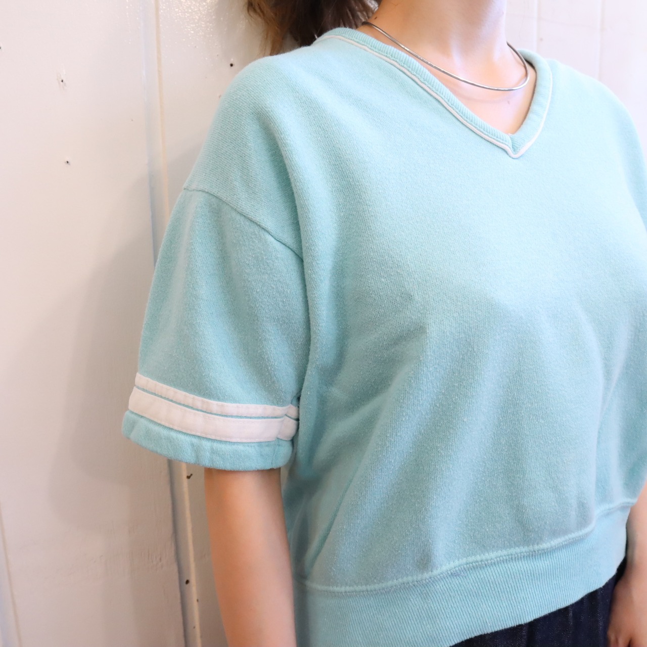 made in USA mintblue×white V-neck short sleeve sweat [l-3678]