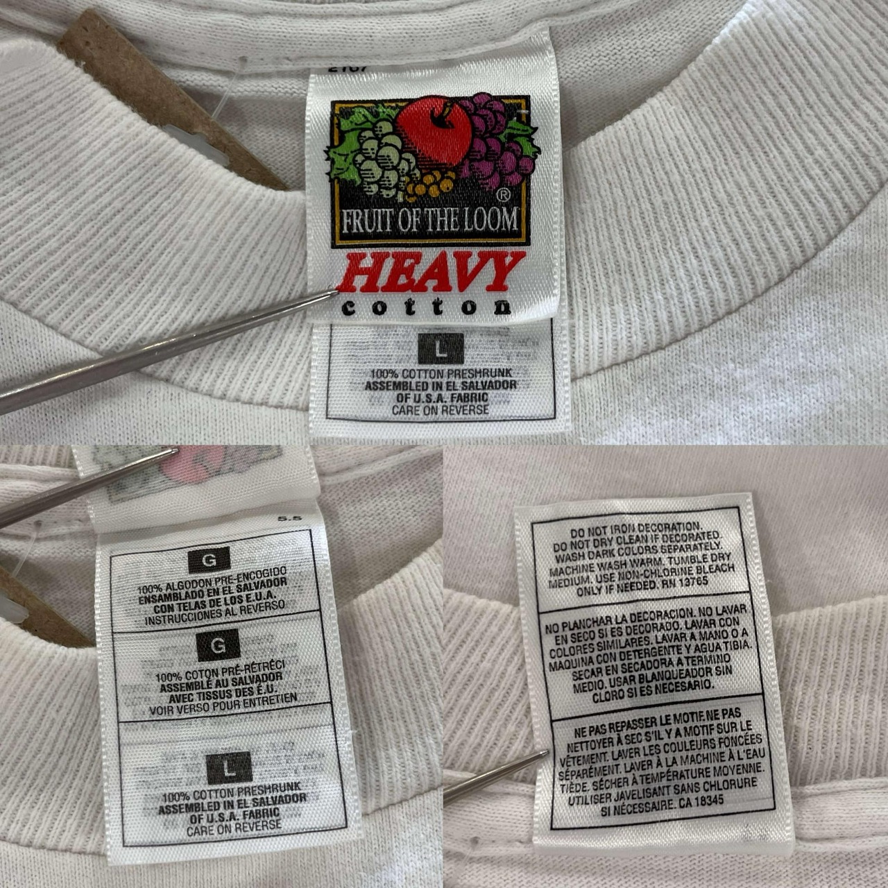 90s FRUIT OF THE LOOM white×blue cat face T-shirt [l-3688]