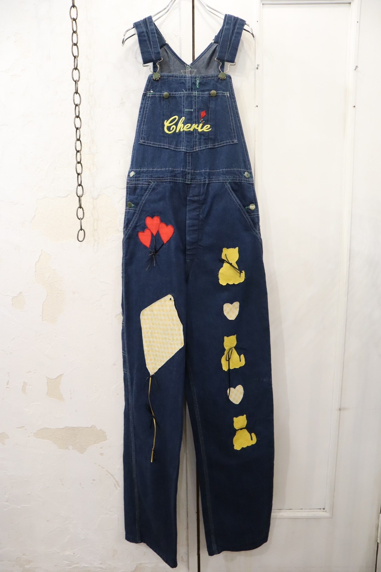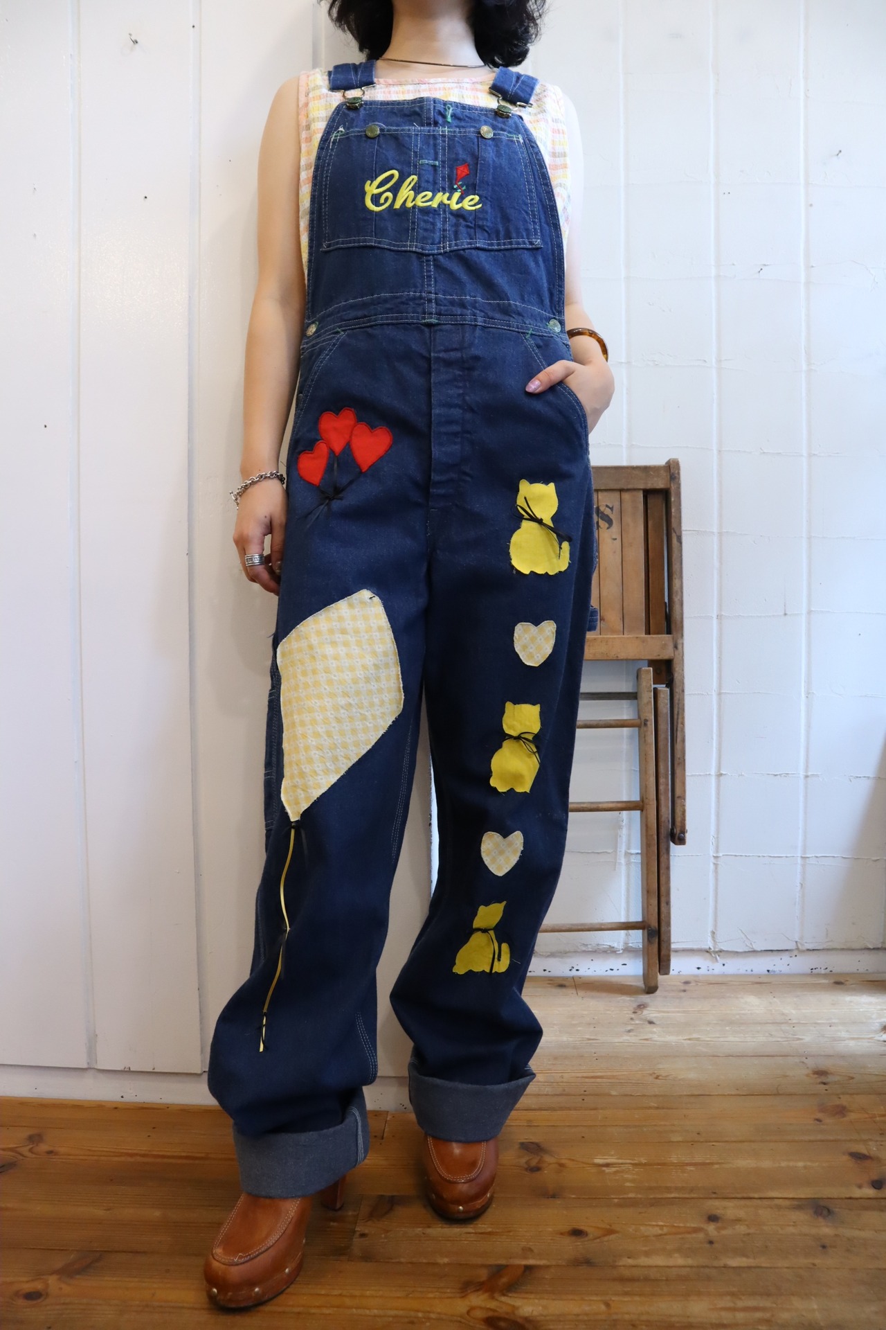 60-70s OSHKOSH indigoblue×colorful patch&emboridery overall [l-3692]
