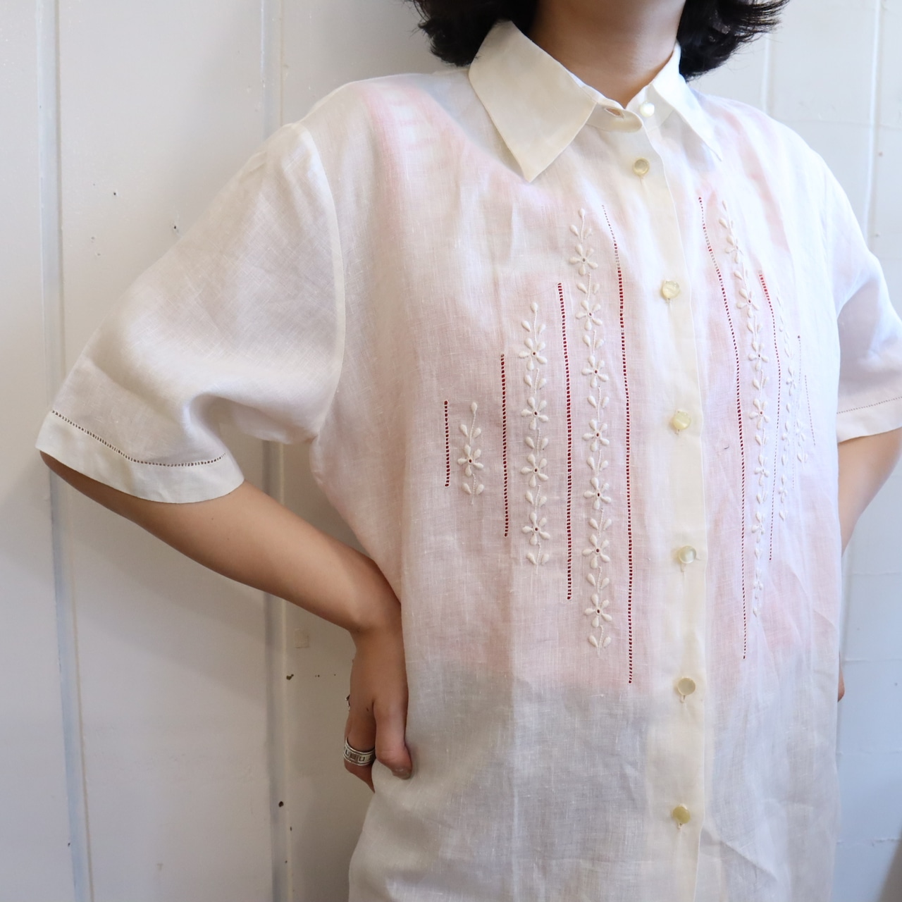 ぽこぽことしたお花の刺繍が可愛いシャツ*