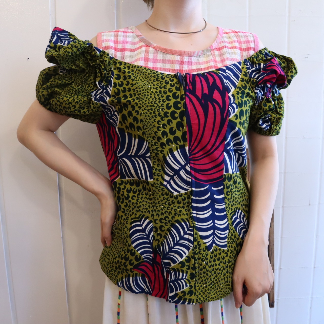 葉っぱの様な虫のようなバティックらしい総柄が素敵なアフリカントップス。