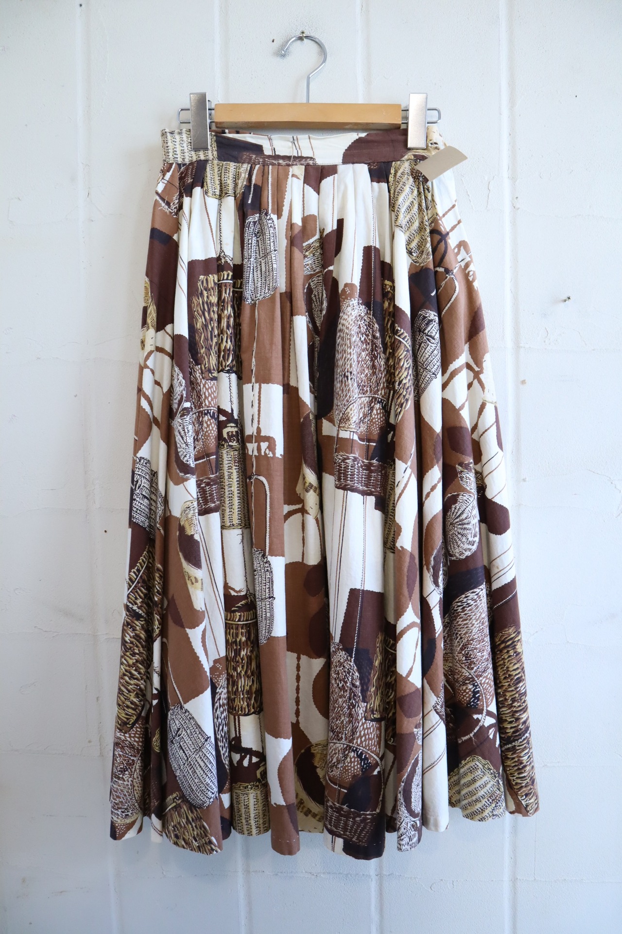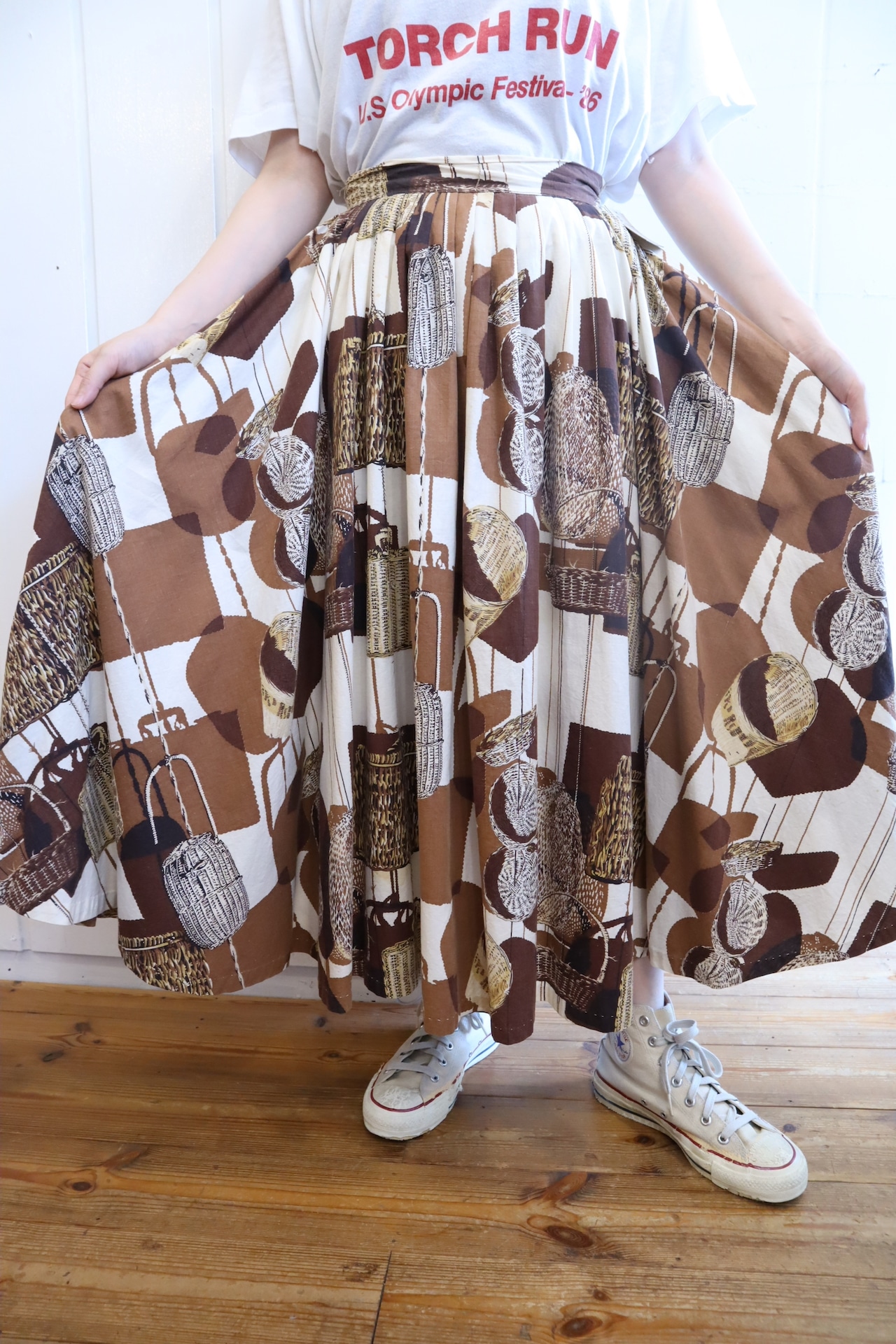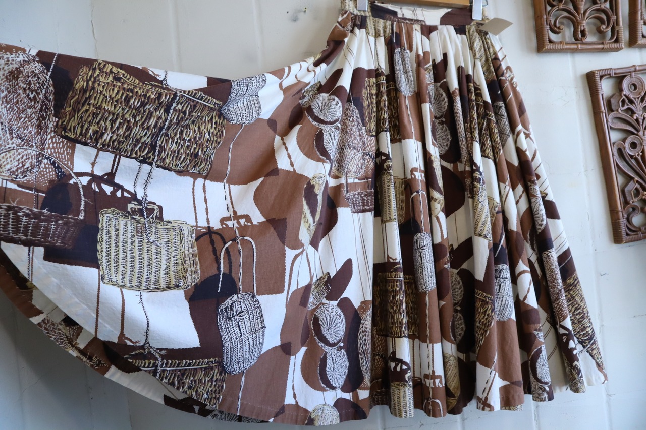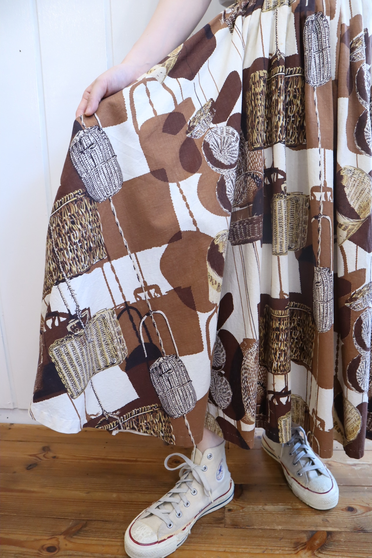 50s-60s offwhite×brown bag pattern circular skirt [l-3708]