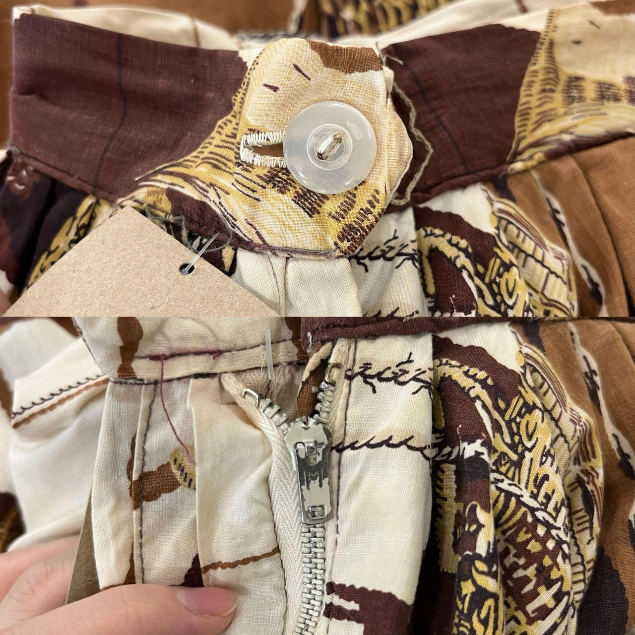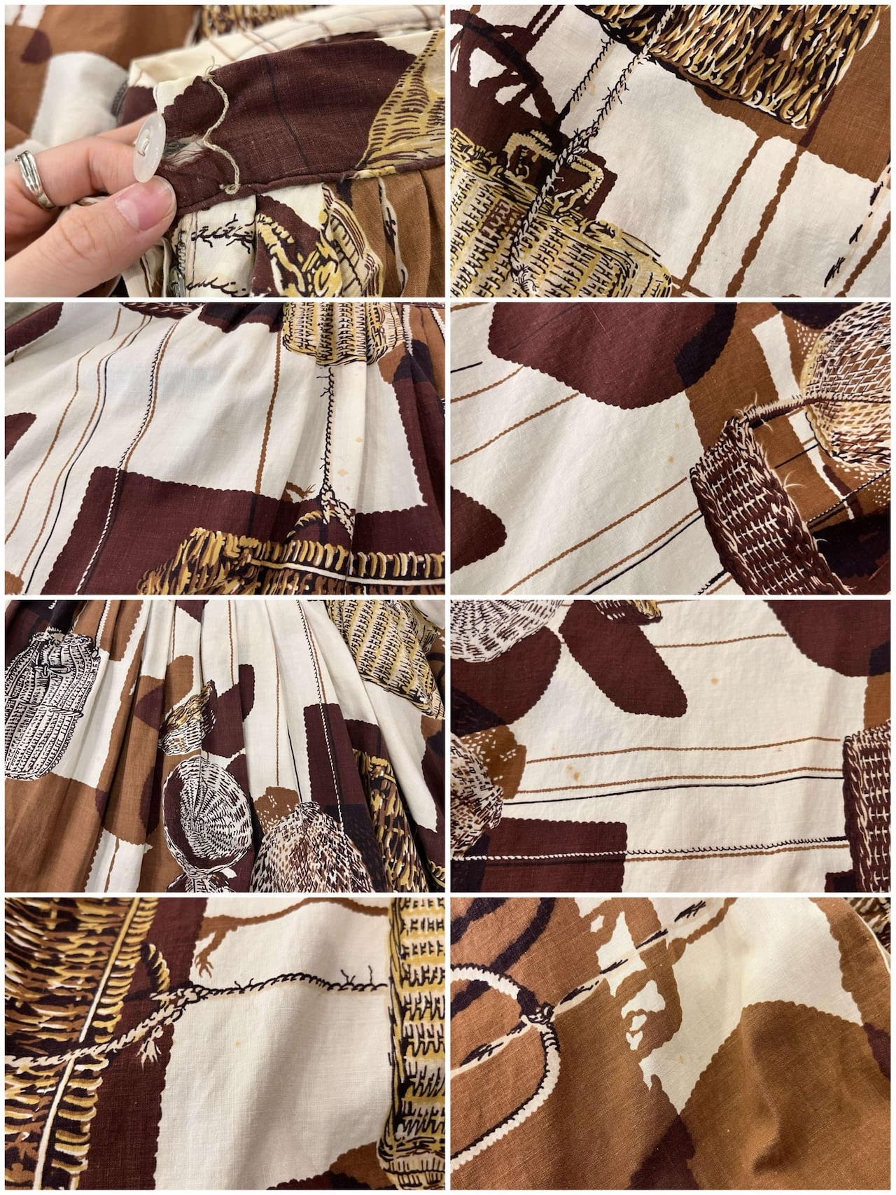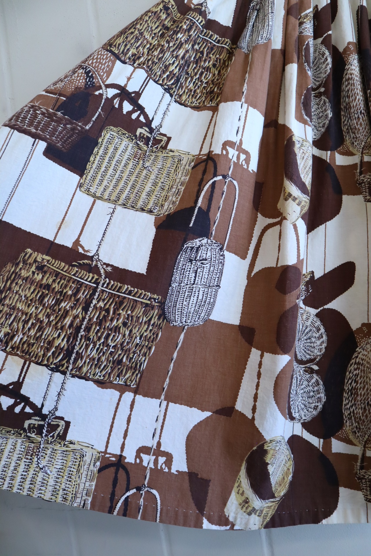 50s-60s offwhite×brown bag pattern circular skirt [l-3708]
