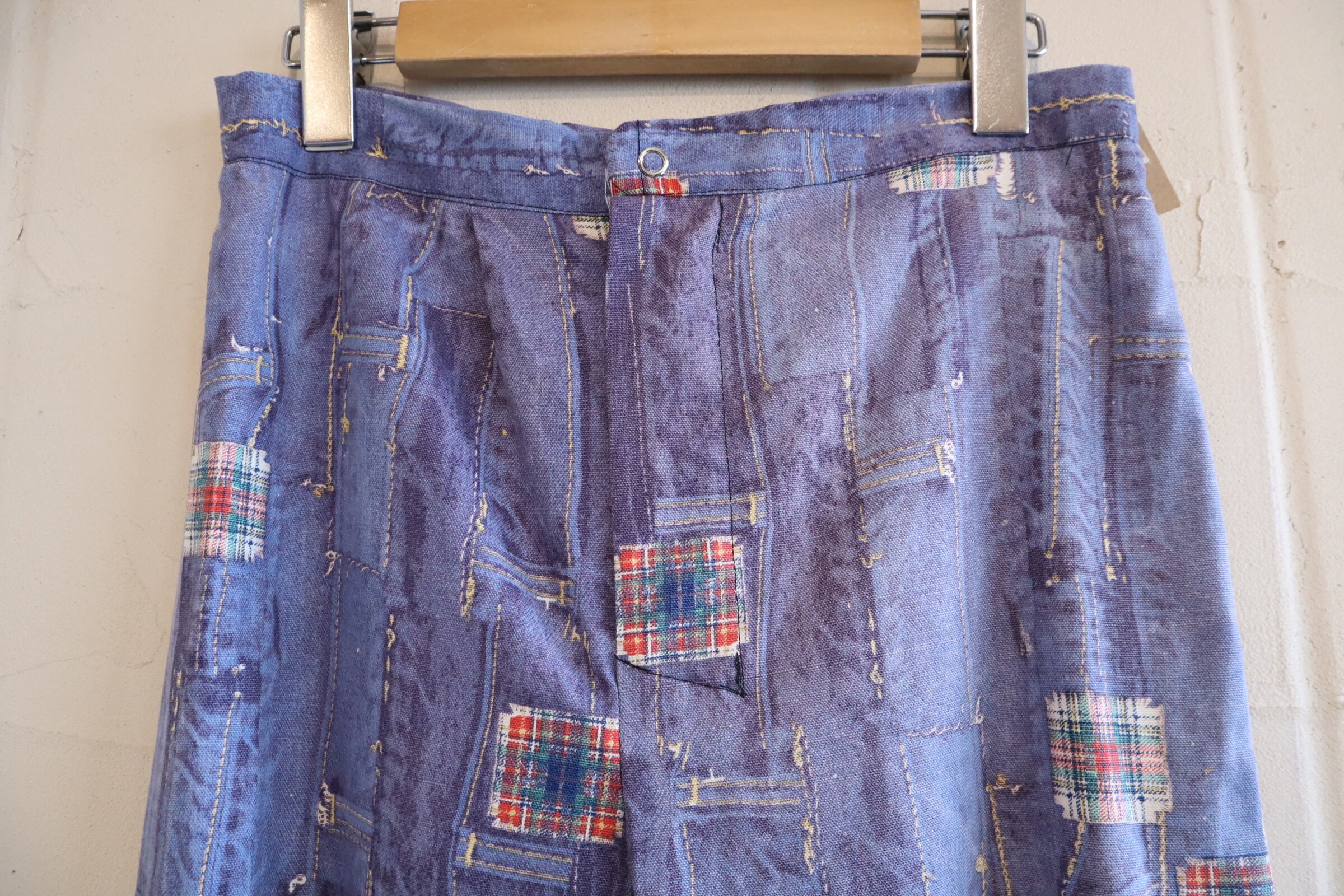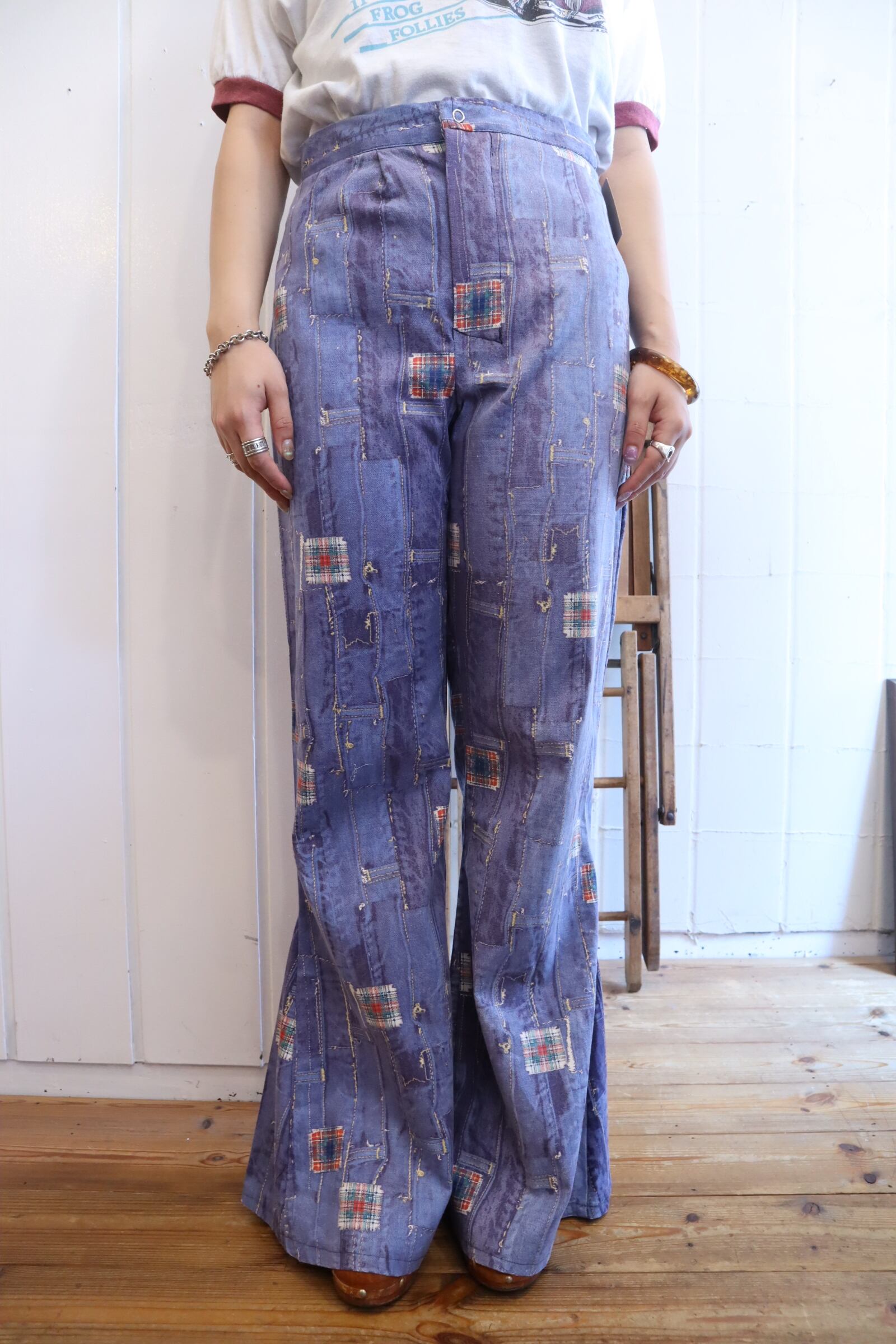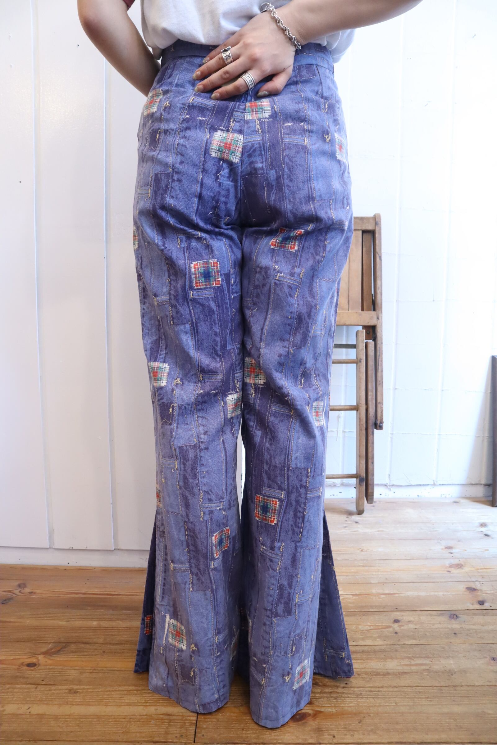 70sらしいパッチワーク柄のプリントが可愛いベルボトム。