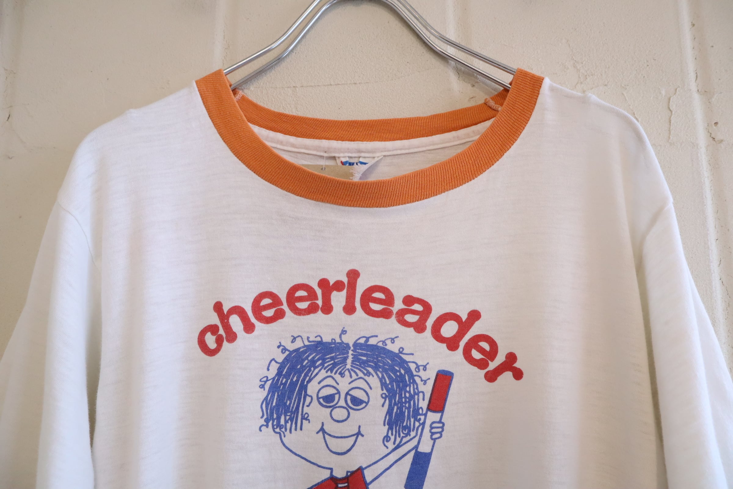 チアリーダーの女の子のゆるいプリントがとても可愛い80sリンガーTシャツ♡