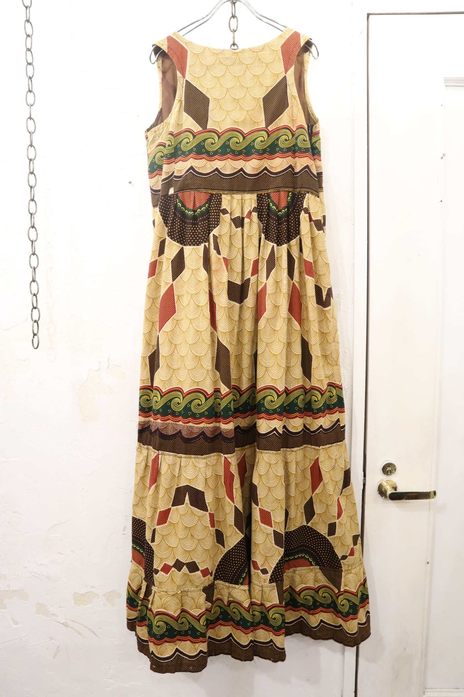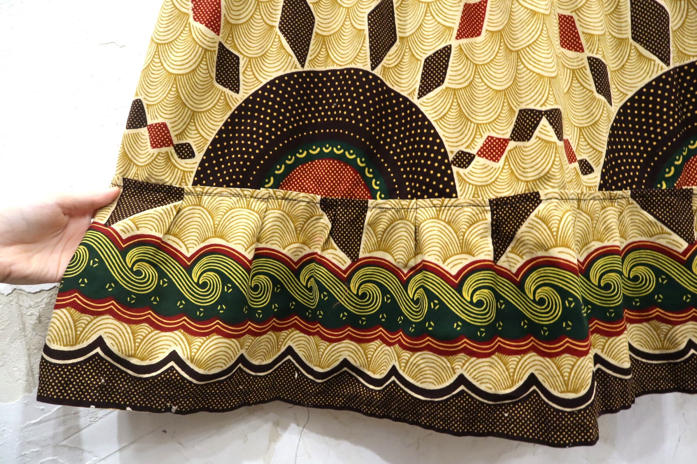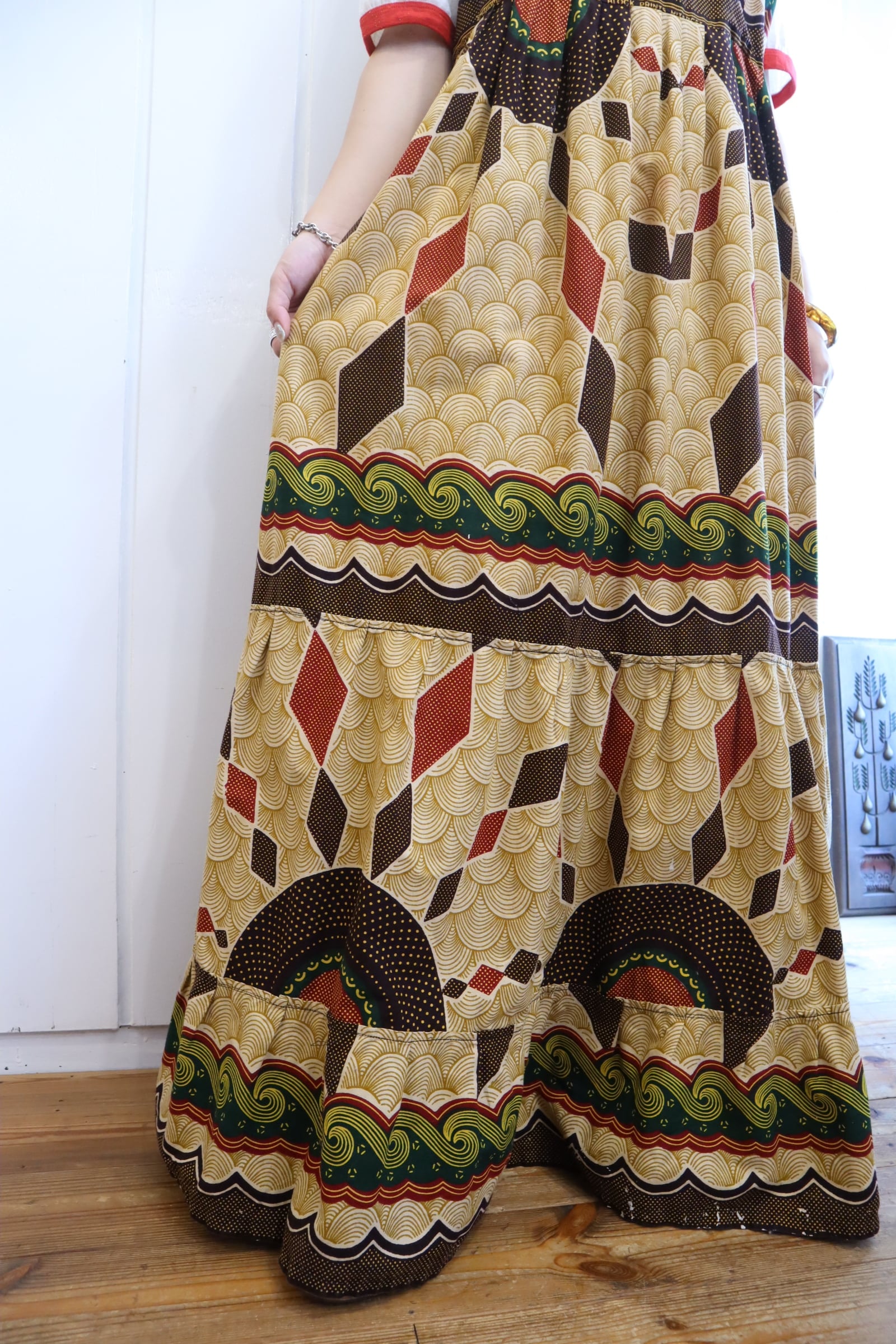 大人な落ち着いた配色が素敵なアフリカンバティックドレスです。
