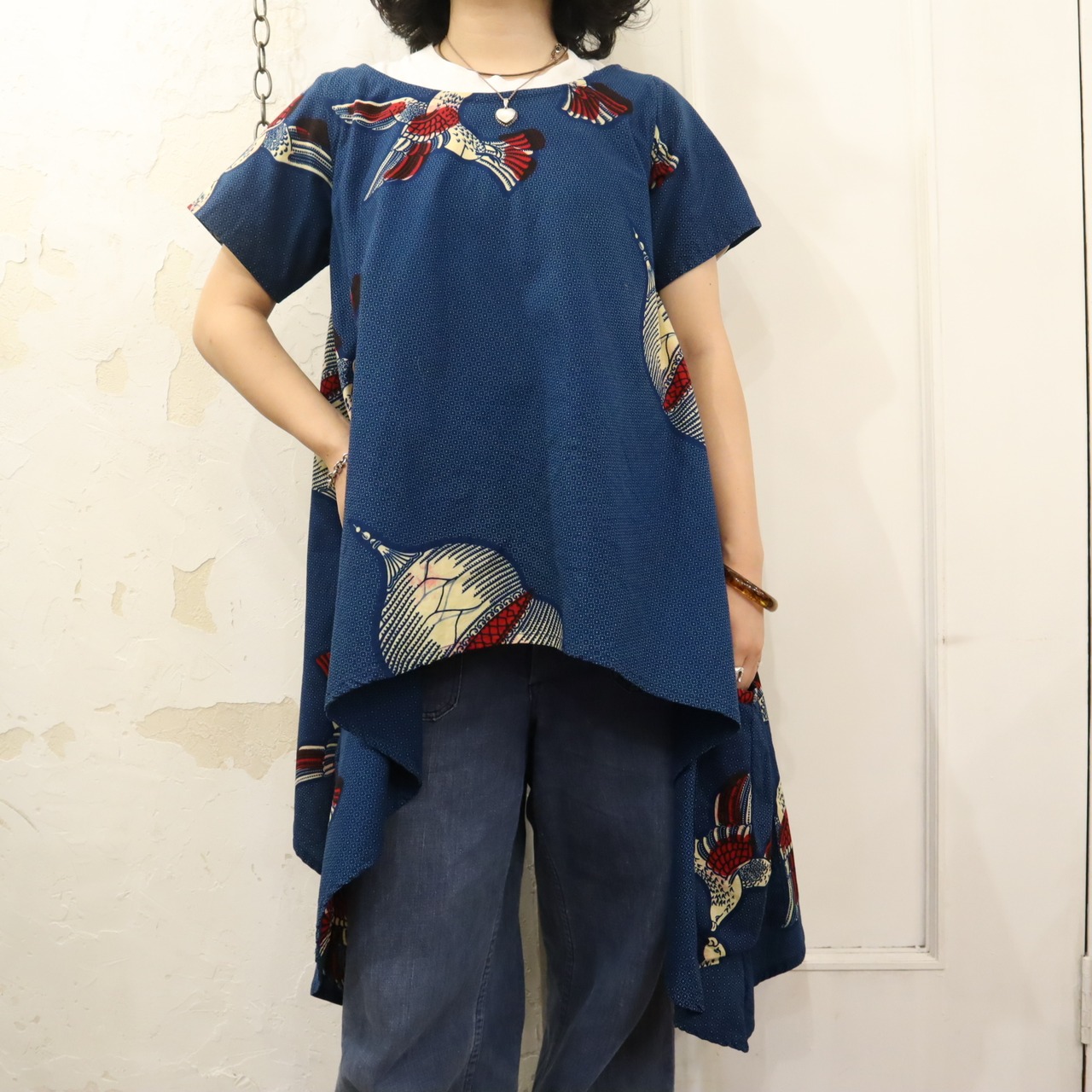 不思議なデザイン、シルエットのアフリカンバティックアイテムです。