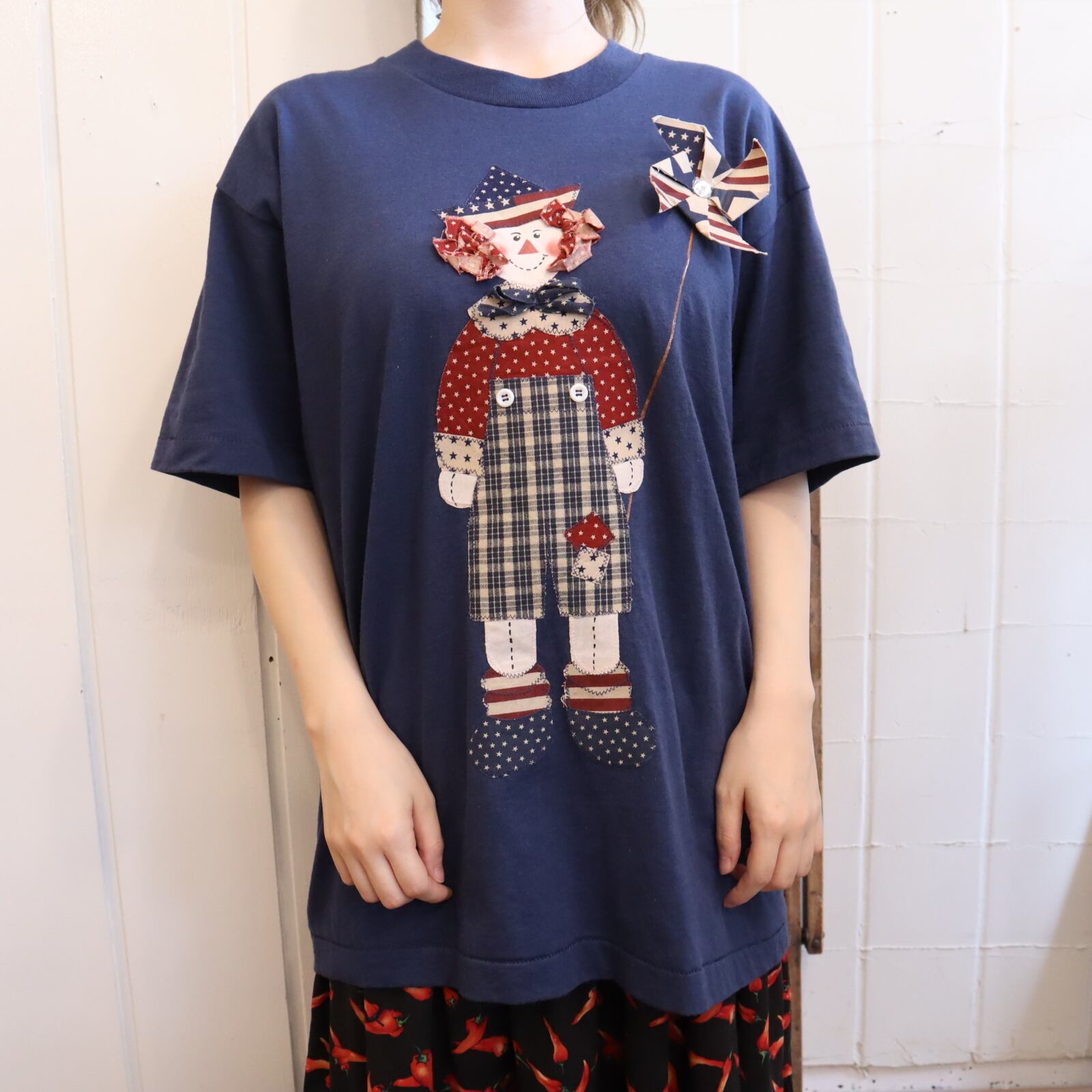 ラガディ・アン&アンディのようなアップリケがとっても可愛いTシャツです。