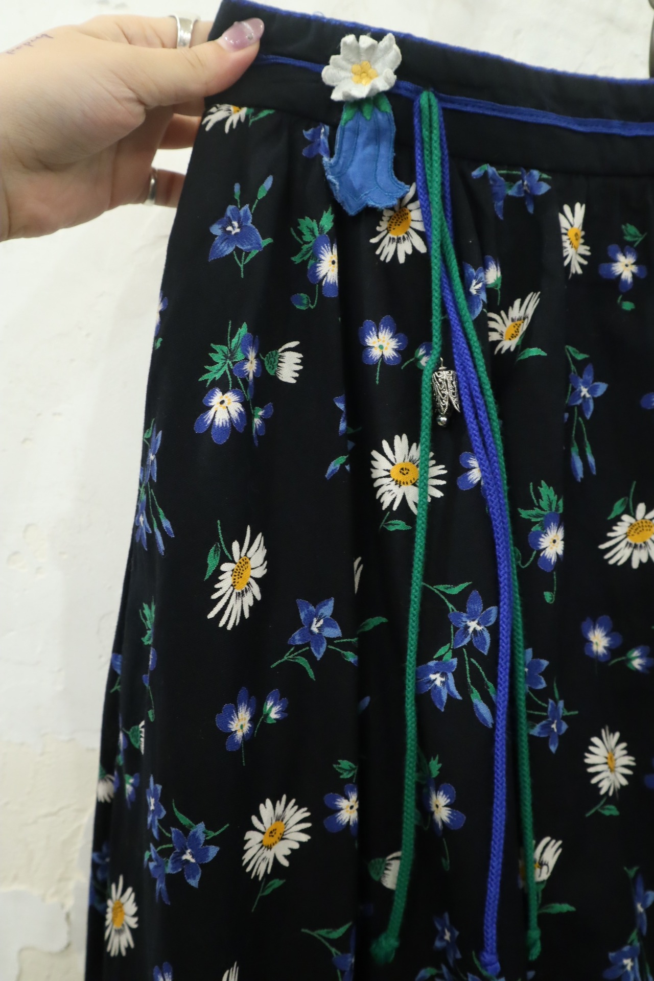 black×blue×green flower pattern tyrol skirt [l-3736]